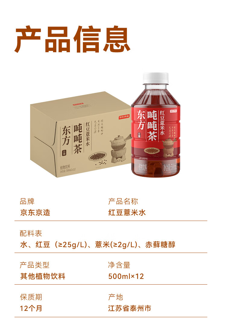 京东京造红豆薏米水500ml*12天然草本慢火烘焙整箱装