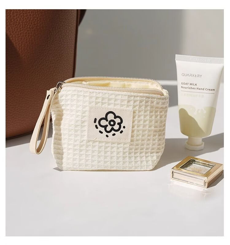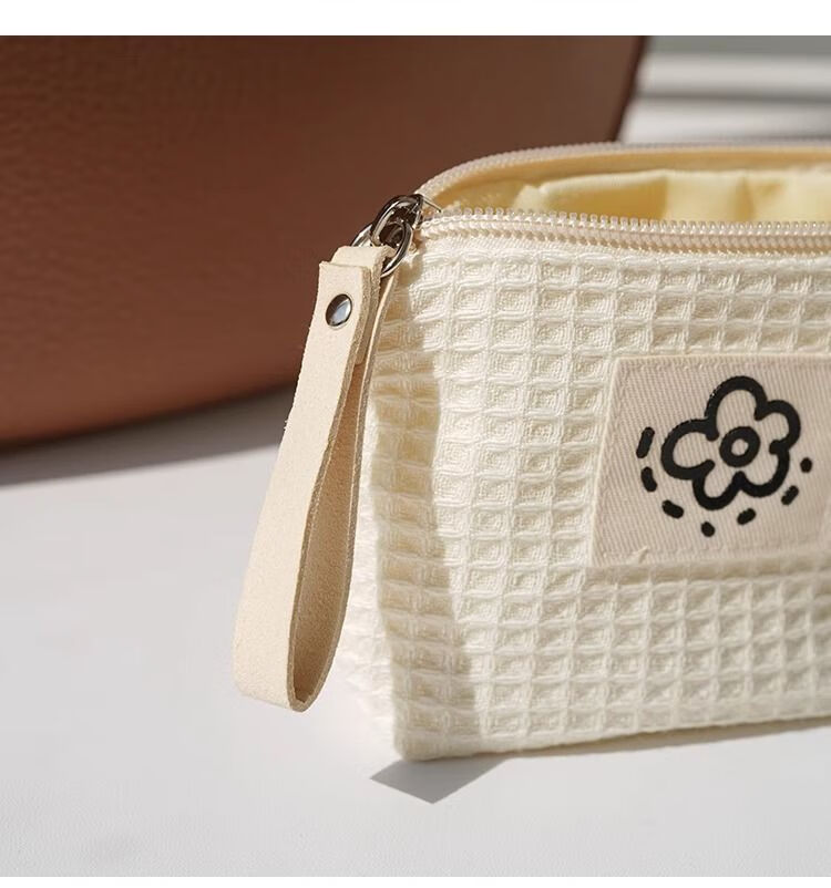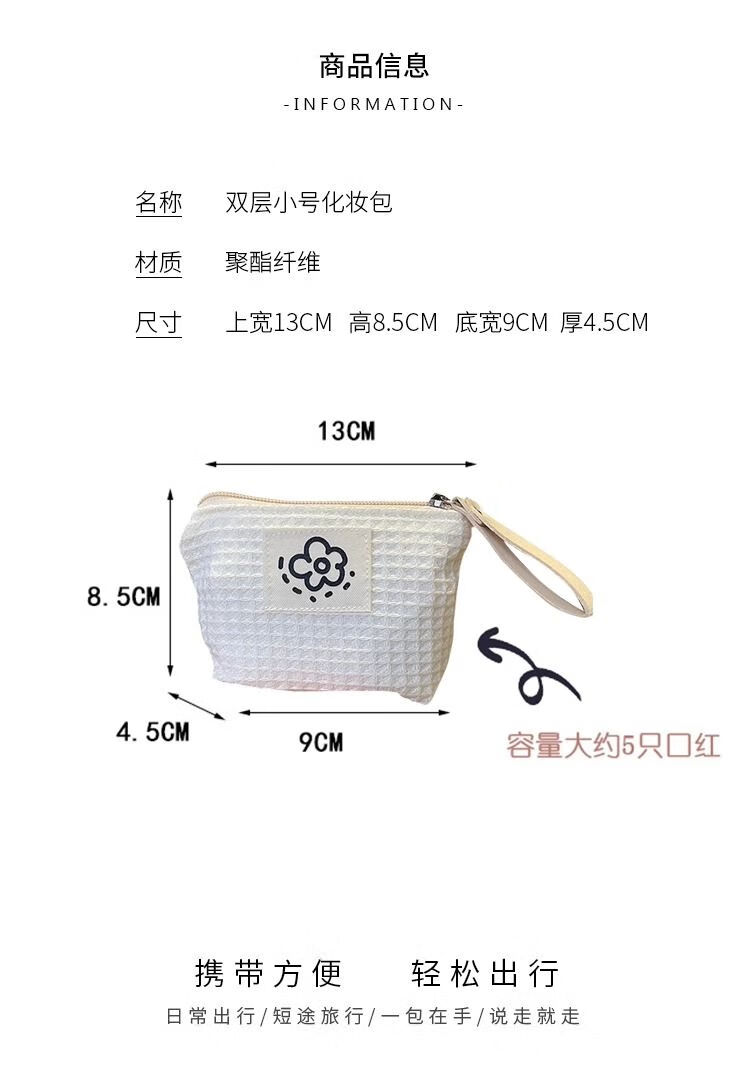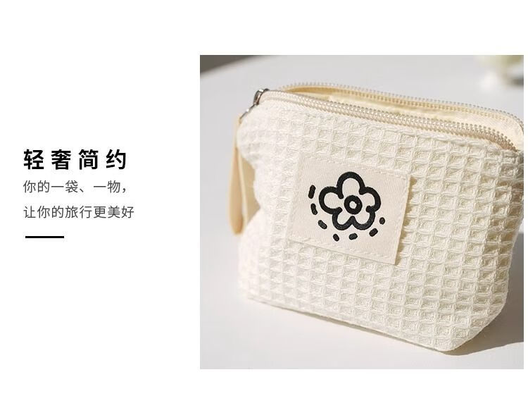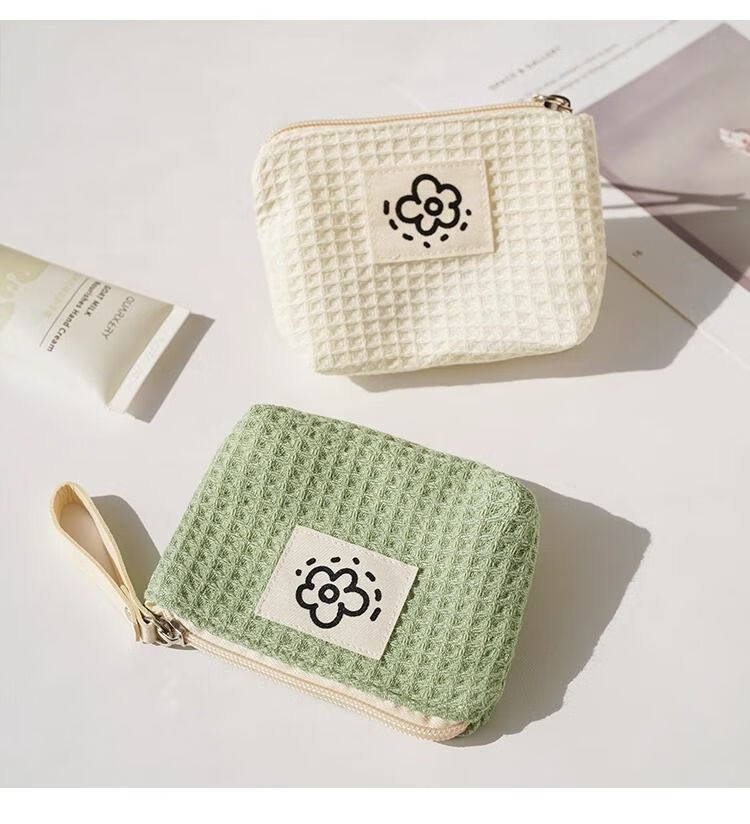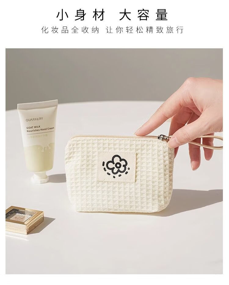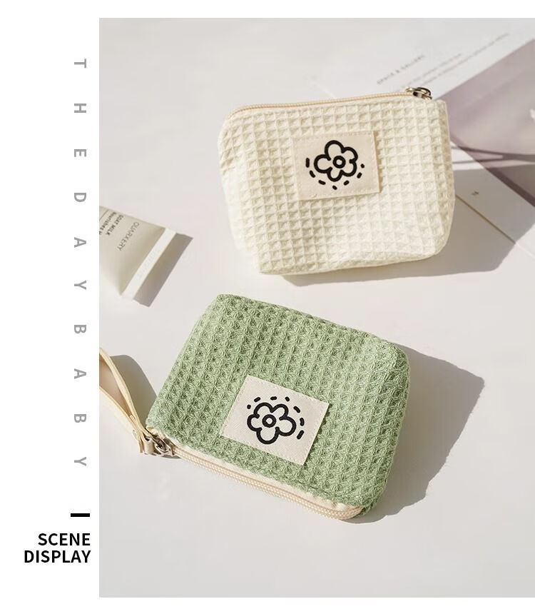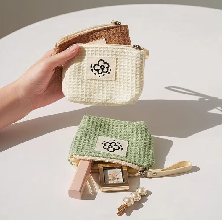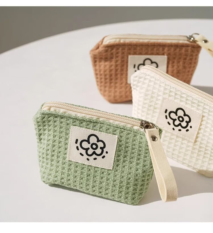 胖东来同款化妆包收纳包迷你华夫格口红零钱包化妆品便携ins风学 咖啡色+抹茶绿【两件装】