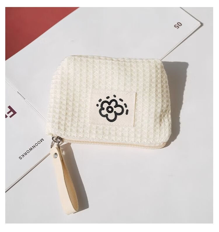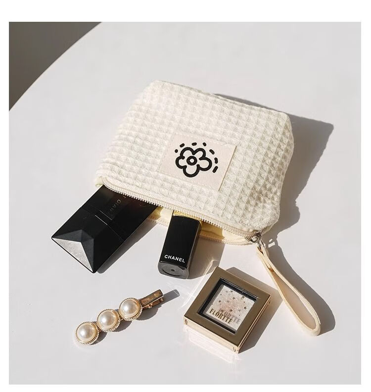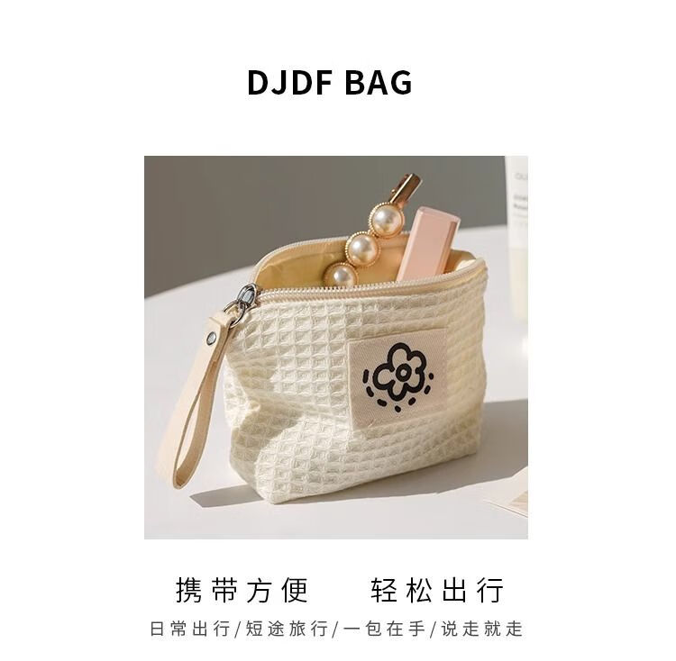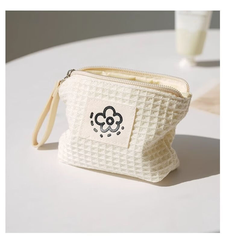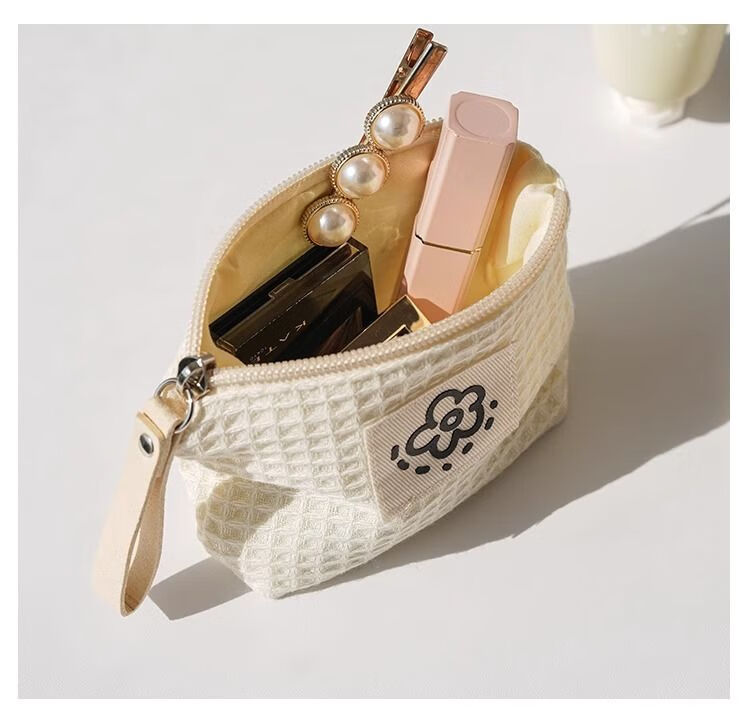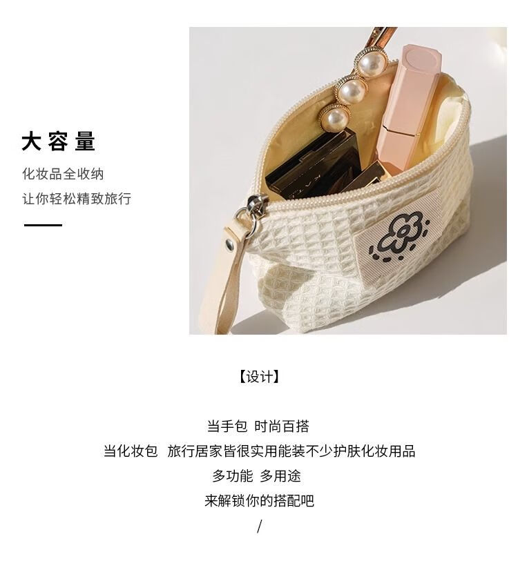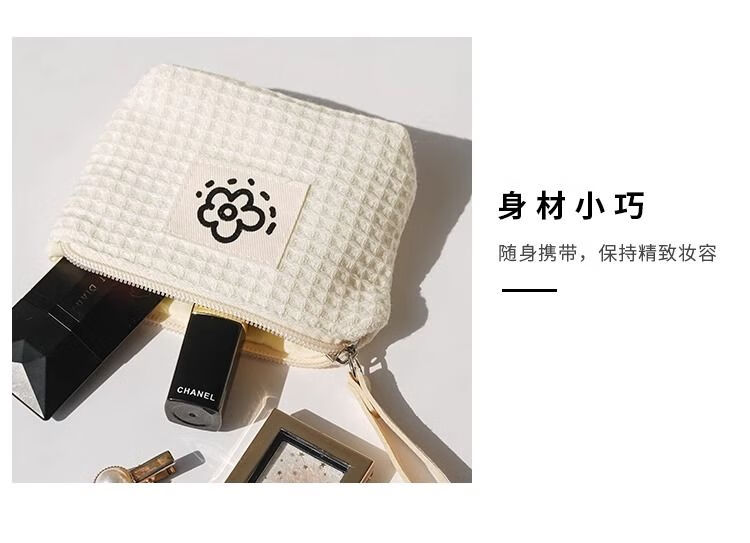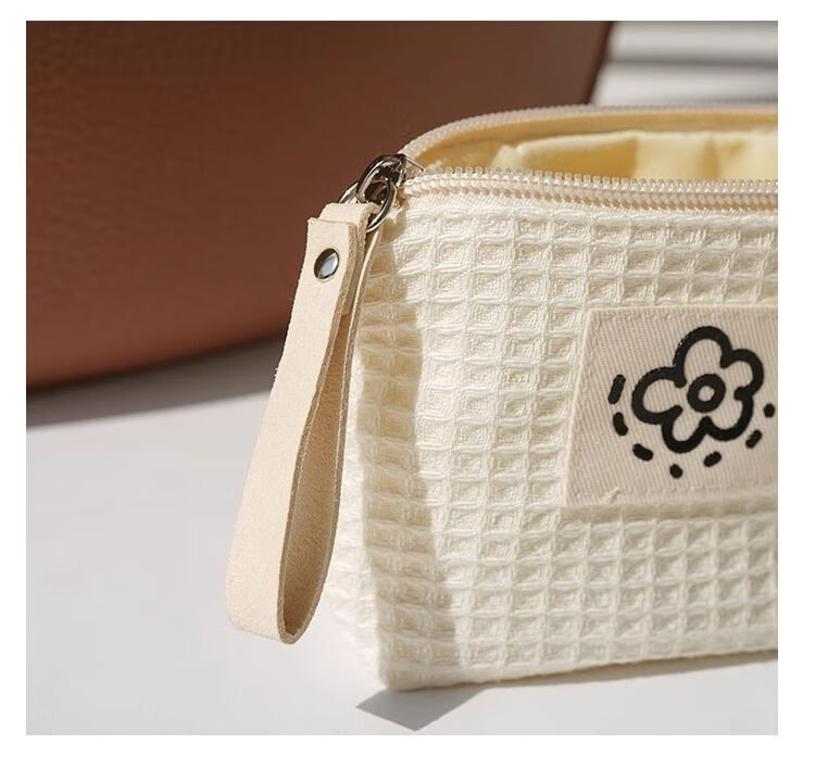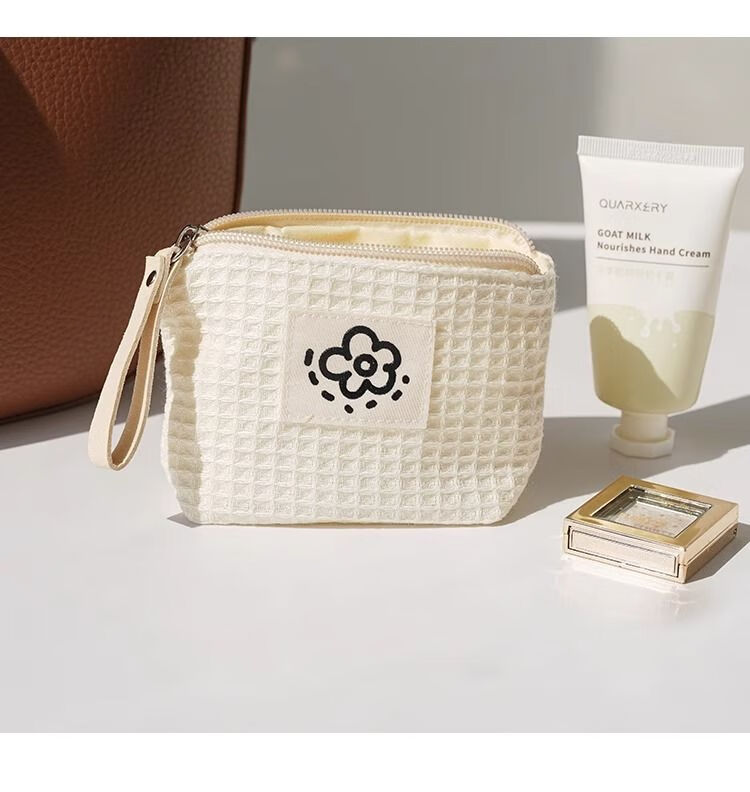 胖东来同款化妆包收纳包迷你华夫格口红零钱包化妆品便携ins风学 咖啡色+抹茶绿【两件装】