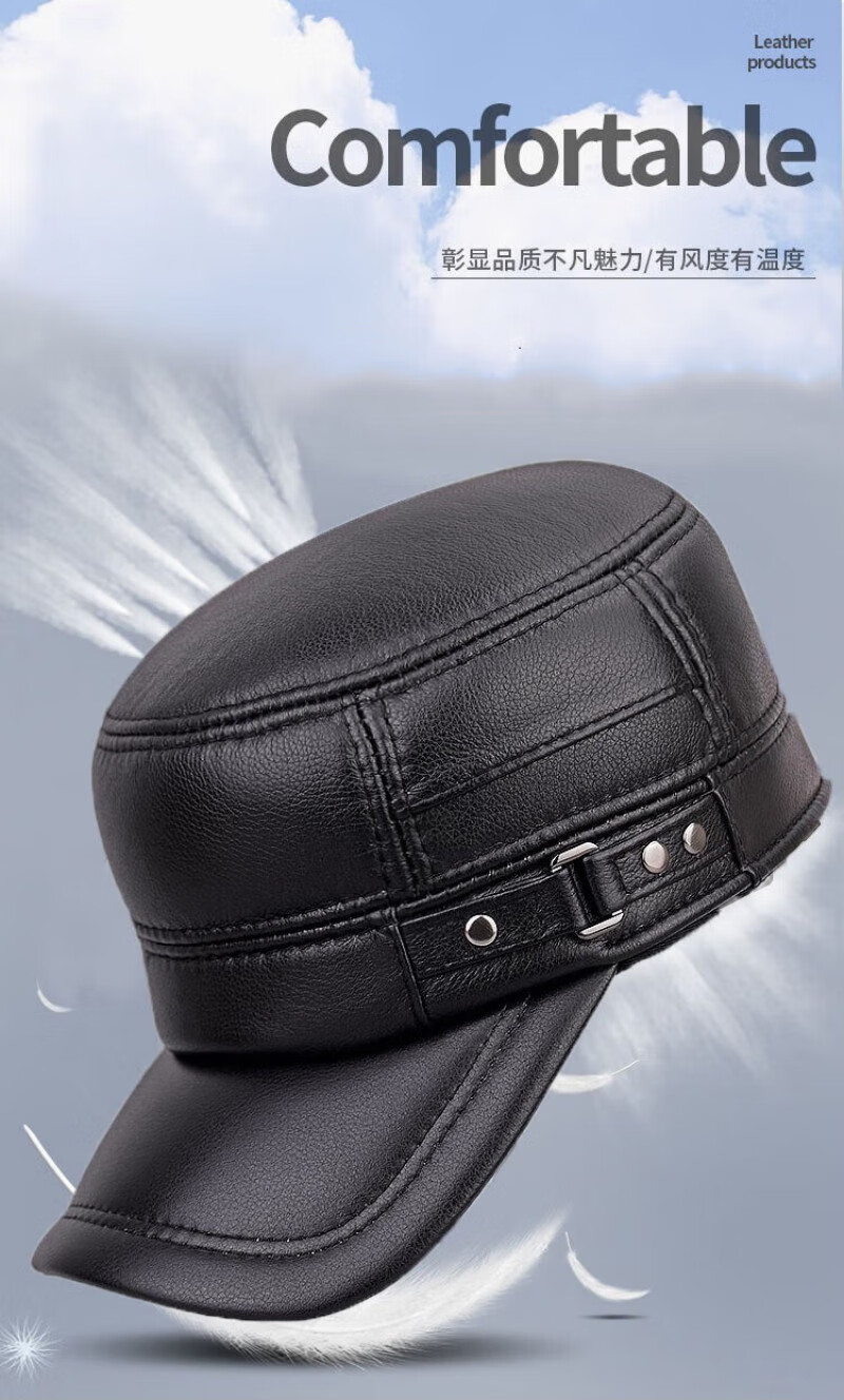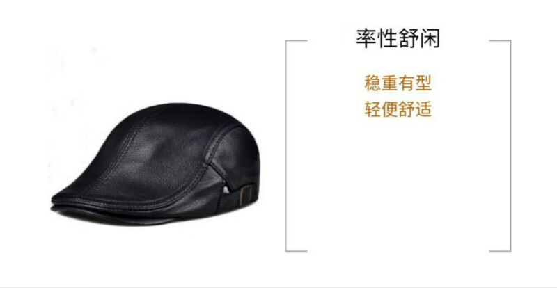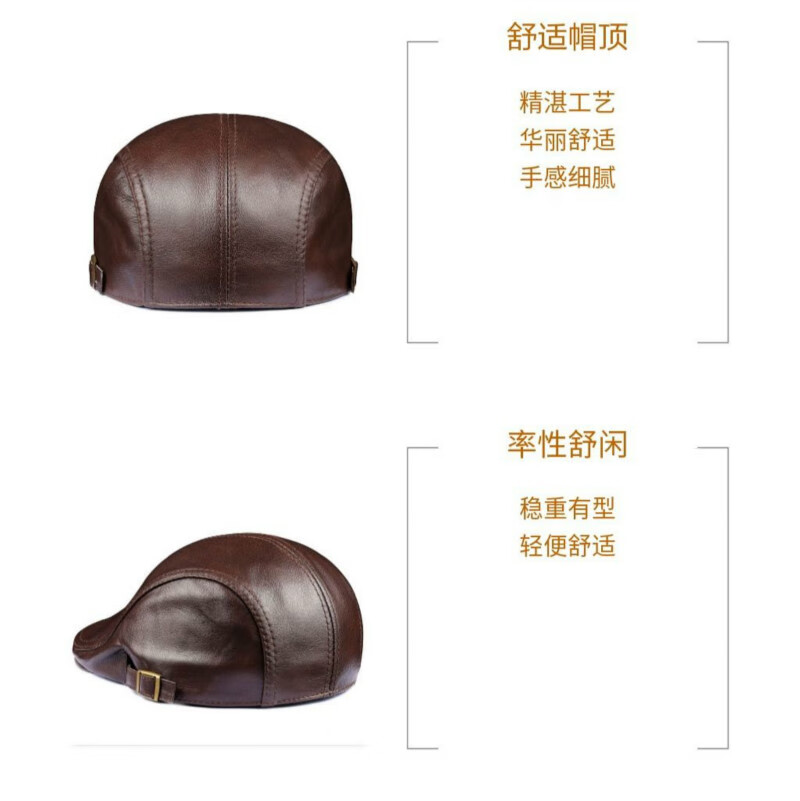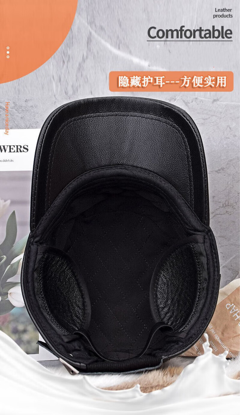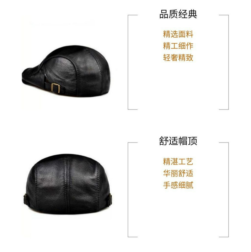 圣咯坷男士皮帽牛皮皮质帽子春秋冬季休闲贝雷帽中老年人时尚老头鸭舌帽 鸭舌帽 黑色 (不带护耳) M 尺码可调节(56-58c)