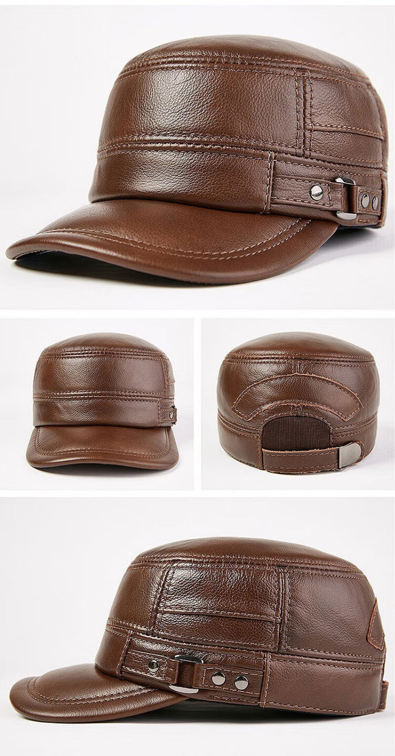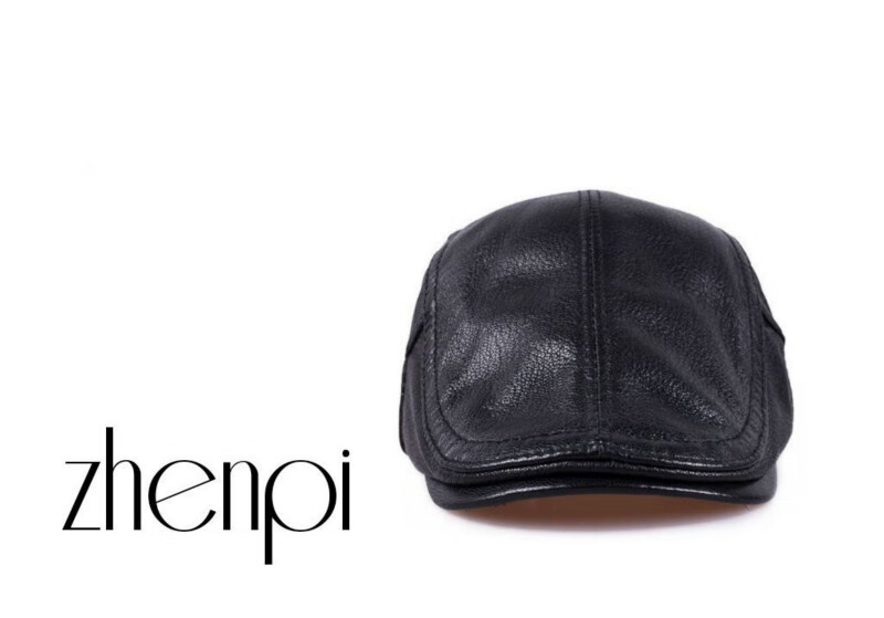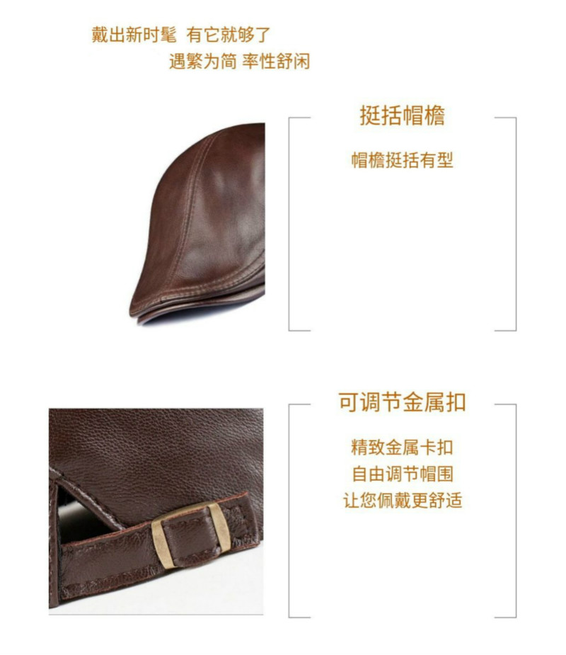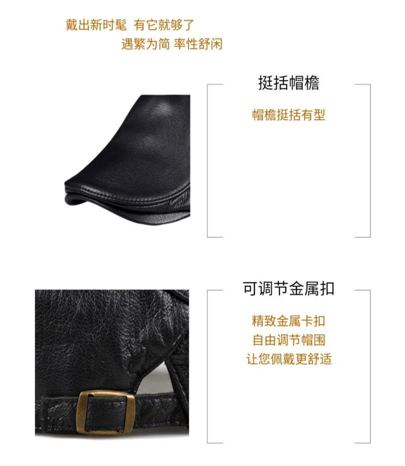 圣咯坷男士皮帽牛皮皮质帽子春秋冬季休闲贝雷帽中老年人时尚老头鸭舌帽 鸭舌帽 黑色 (不带护耳) M 尺码可调节(56-58c)