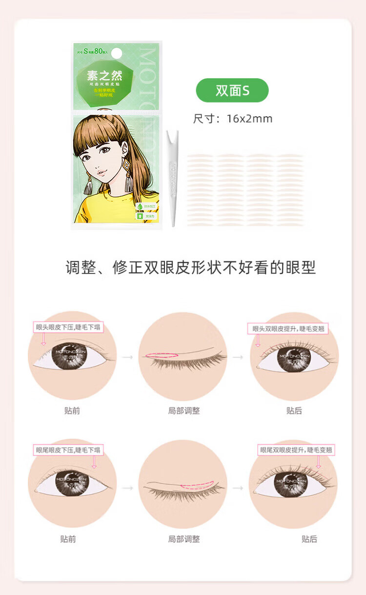素之然(MOTONOZEN)双眼皮贴隐形自然不翘边肤色肉色透明蕾丝轻薄无痕男女学生新年礼