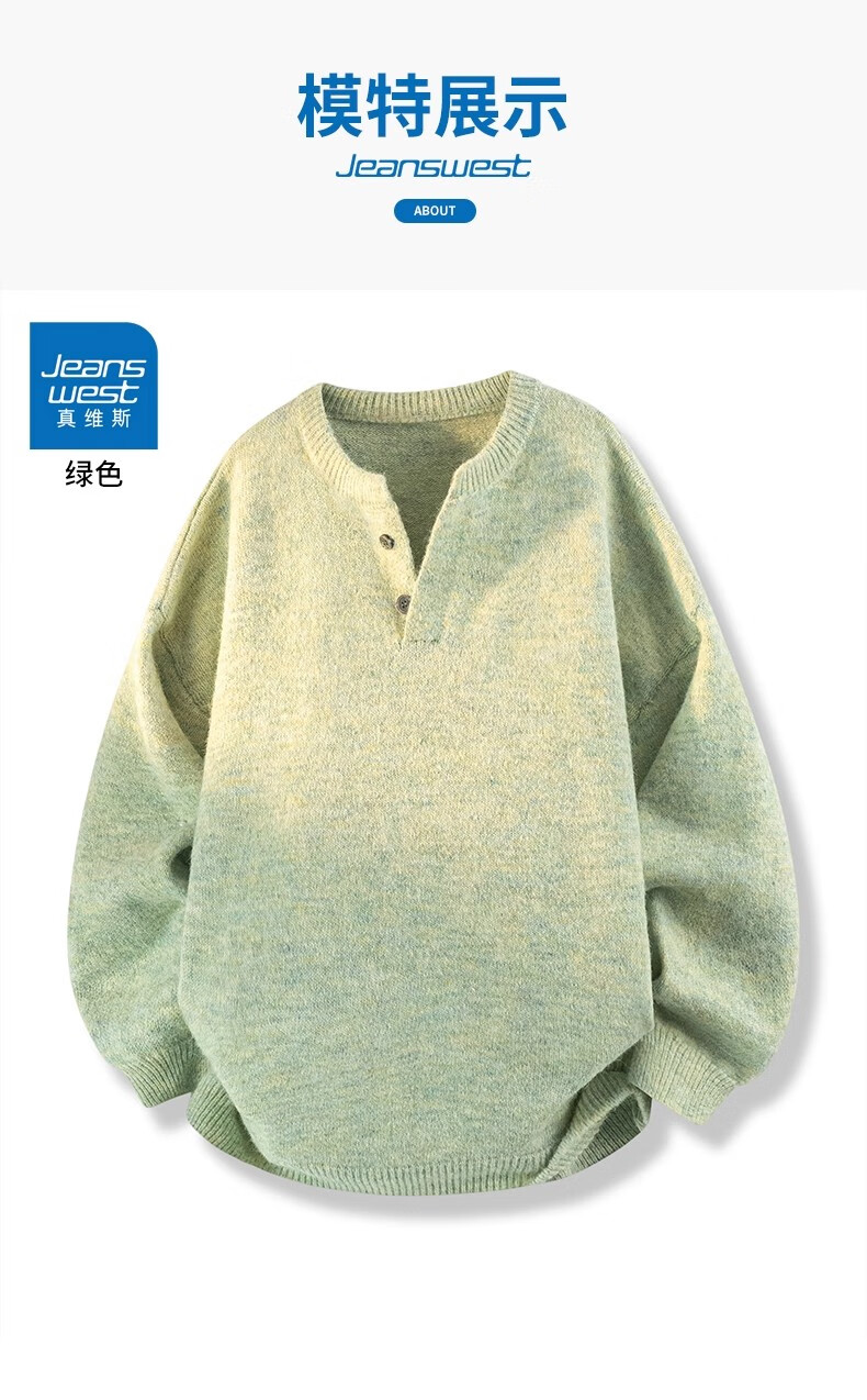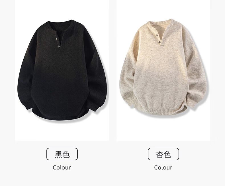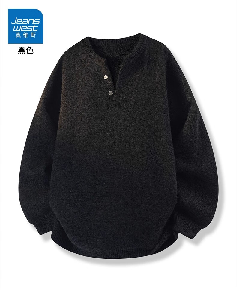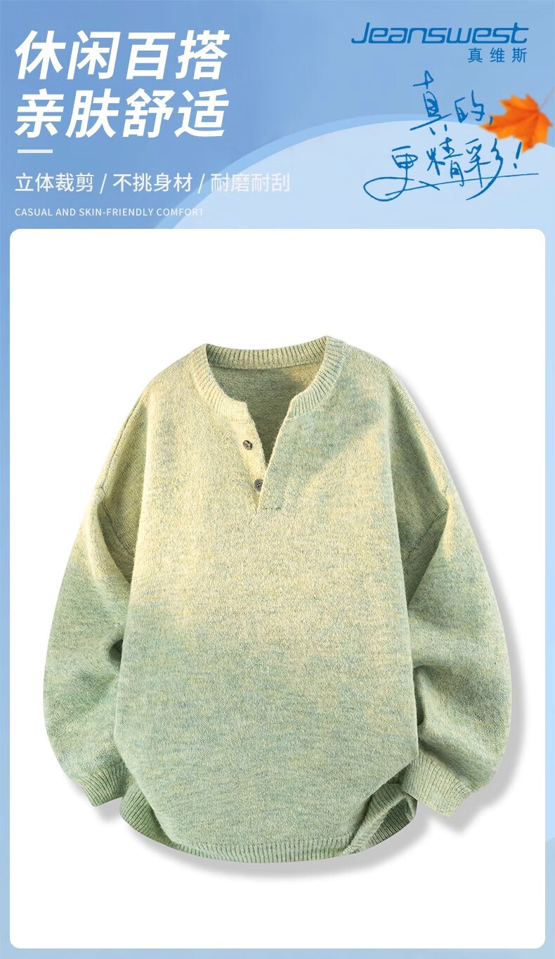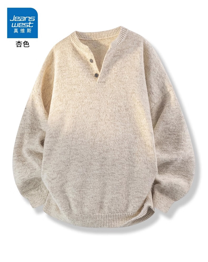 真维斯(Jeanswest)美式潮流亨利领毛衣男士秋冬季新款宽松百搭休闲绵羊毛针织衫 杏色 【柔软舒适】 XL 【建议140-160斤】