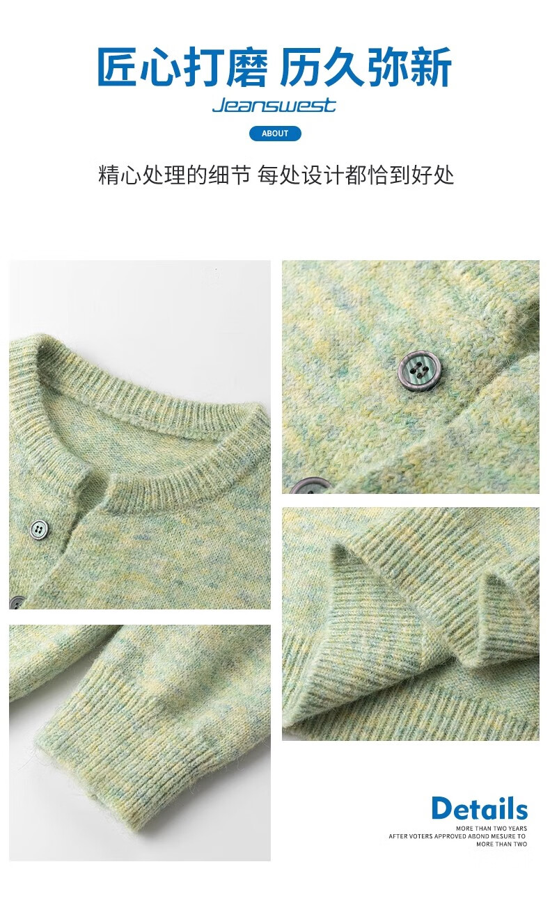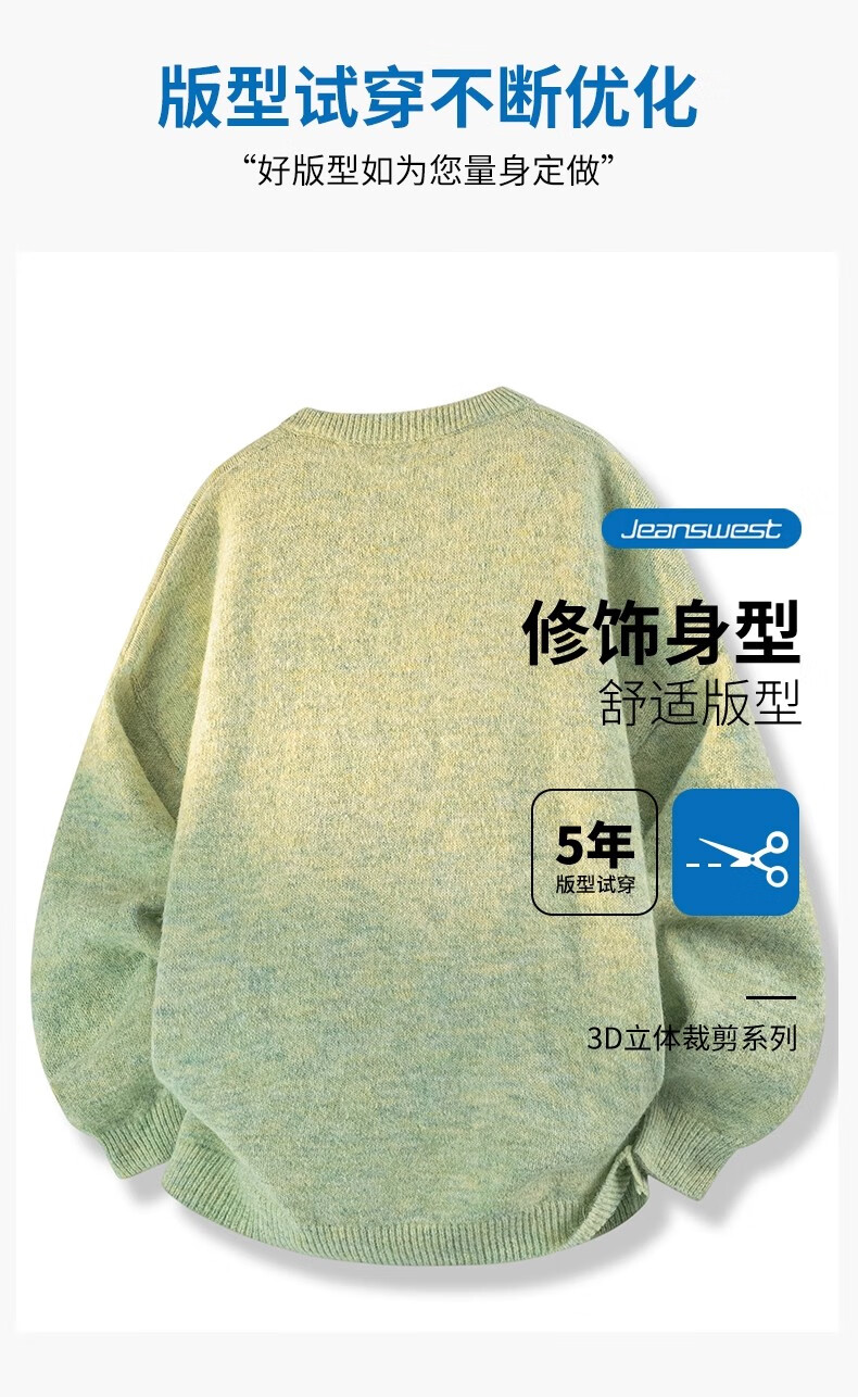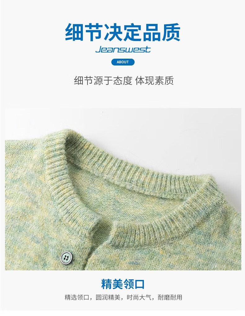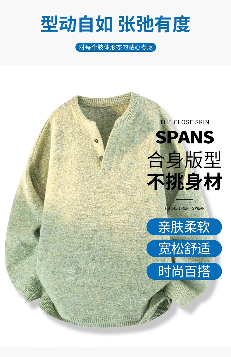 真维斯(Jeanswest)美式潮流亨利领毛衣男士秋冬季新款宽松百搭休闲绵羊毛针织衫 杏色 【柔软舒适】 XL 【建议140-160斤】
