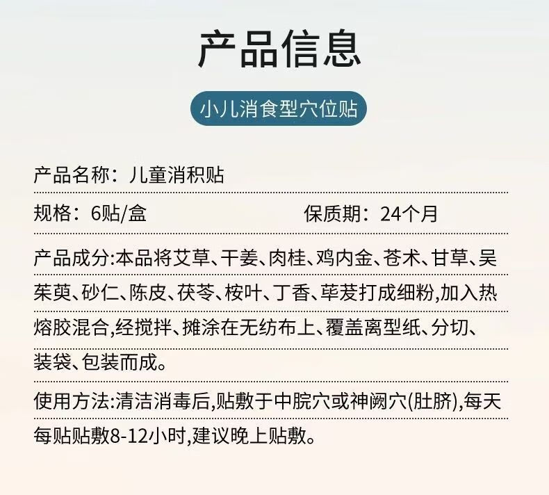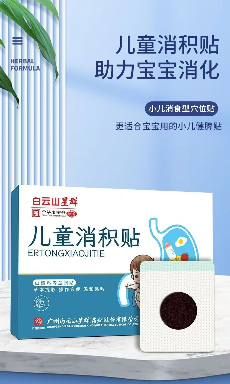 白云山儿童积食贴婴幼儿消食胀气贴调理内热消食化积健脾养胃山楂鸡内金 单盒【6贴/盒】