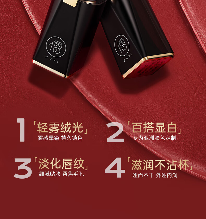儒意(RUYI)樱花粉3.8g丝绒雾面口红不掉色不沾杯不脱妆防水正品大牌唇釉礼物