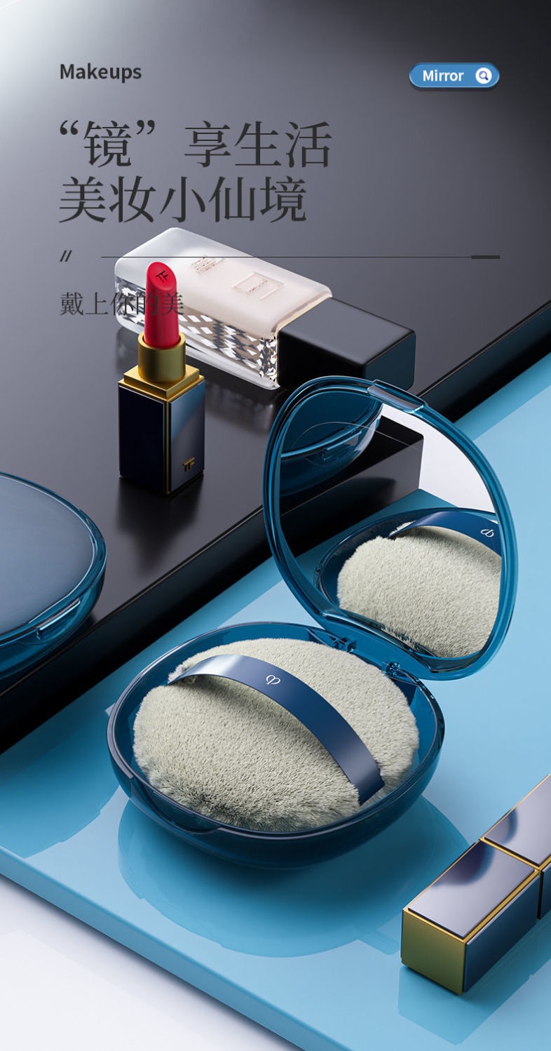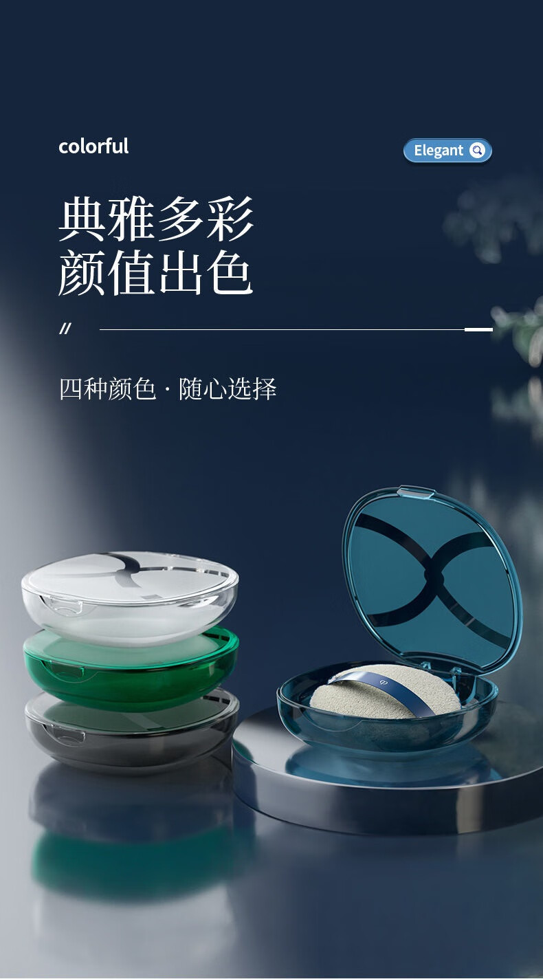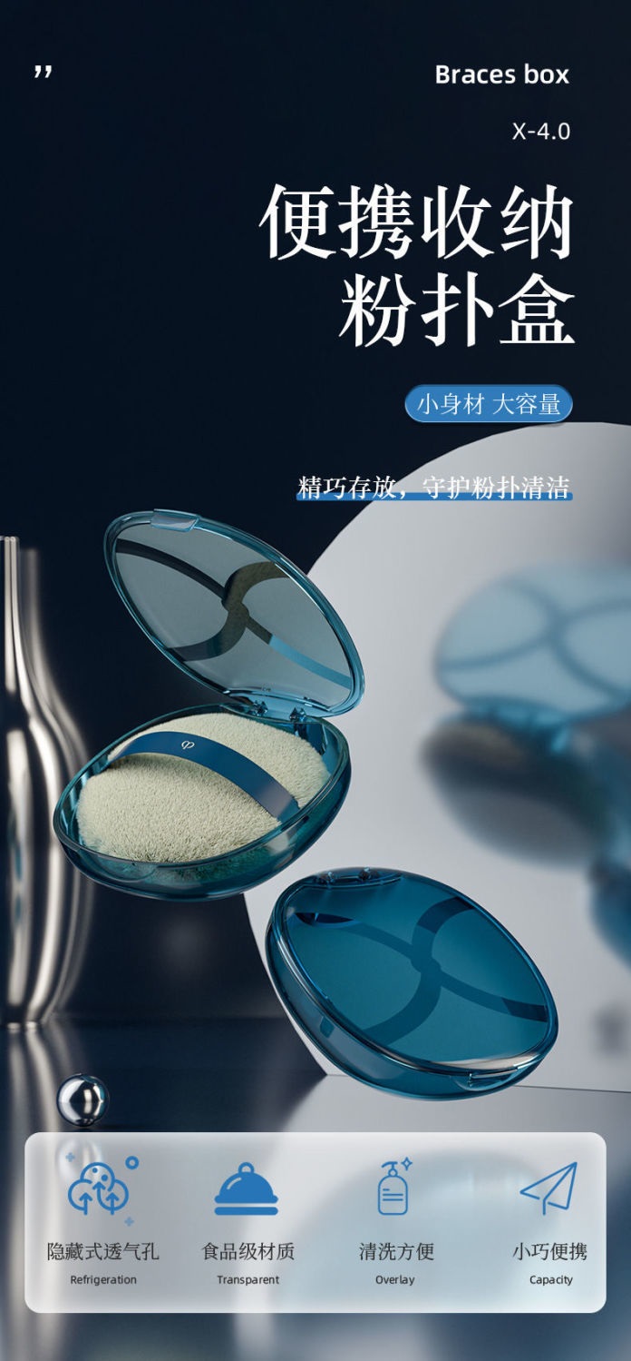 粉扑盒子空盒气垫散粉扑分装盒透气翻盖防尘蜜粉扑收纳盒大号便携 曜影黑【带镜子】