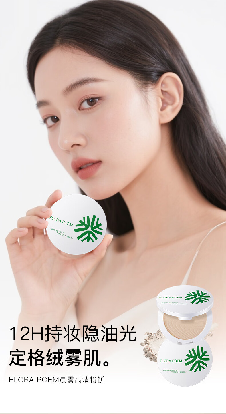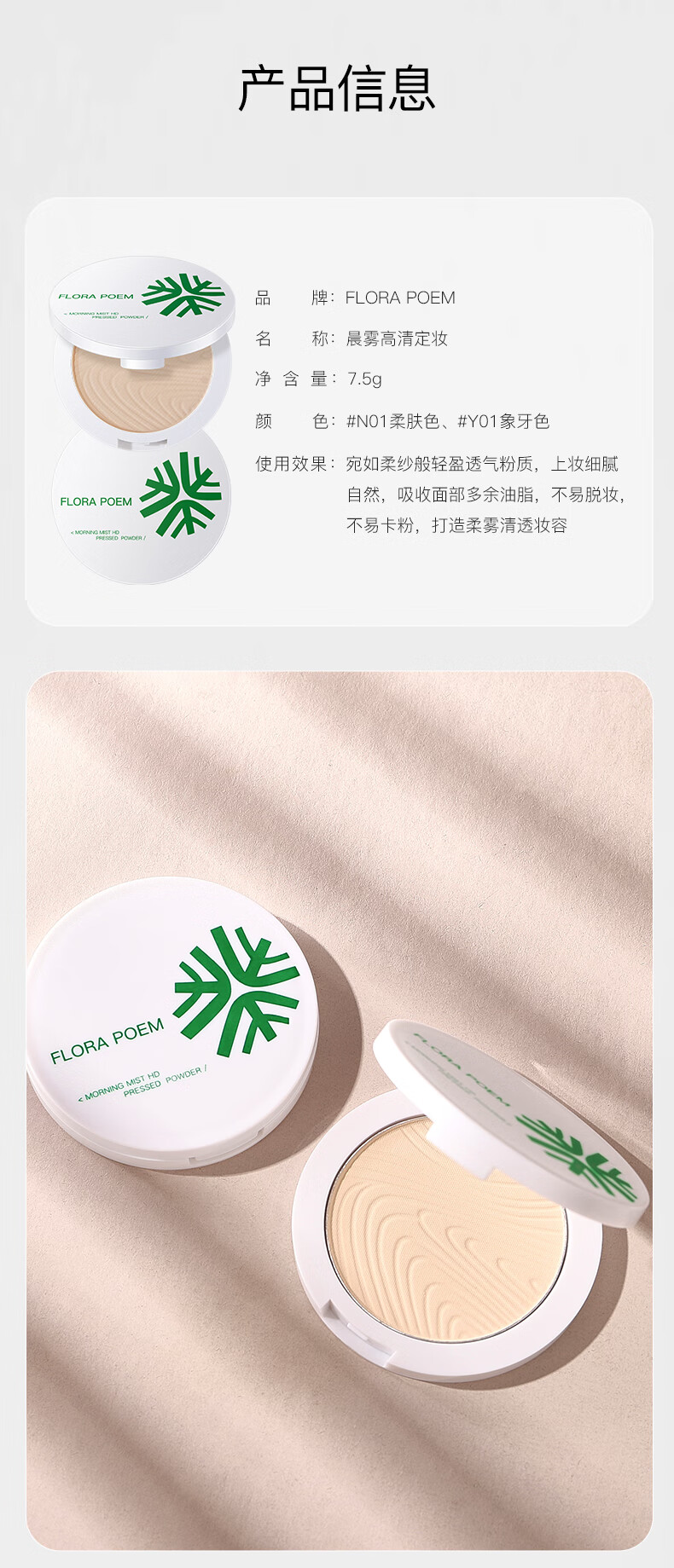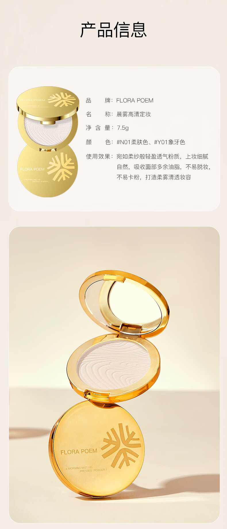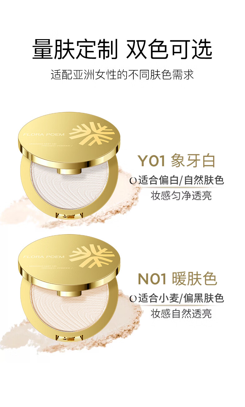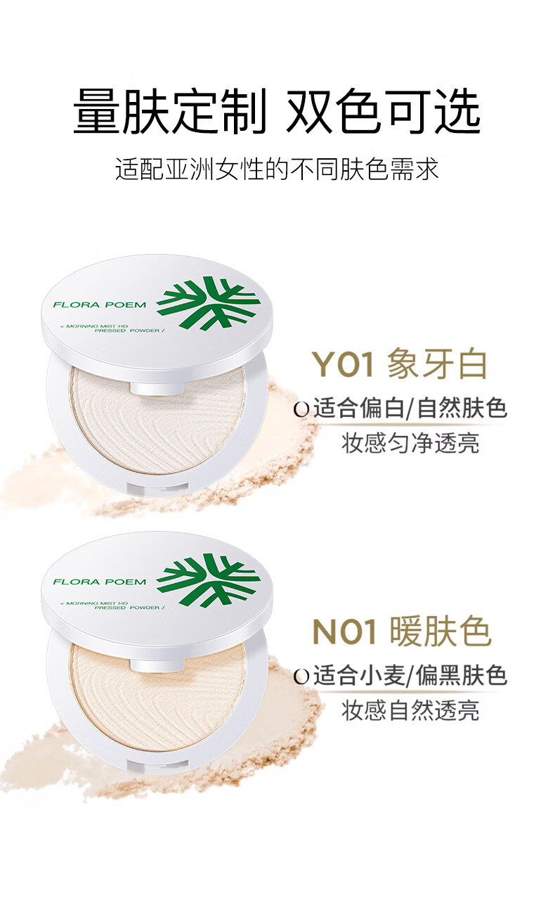 【经典粉饼】花间花颂晨雾粉饼盘控油定妆不卡粉持久不脱妆不暗沉 白壳Y01#象牙白1盒+粉扑1个