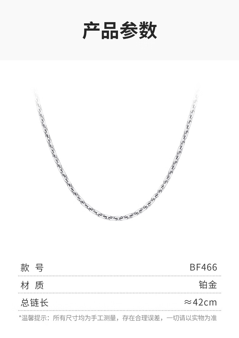 谢瑞麟(TSL)新年礼物铂金项链简约Pt铂金O字链素链女士锁骨链BF466 铂金项链(约3.30g)