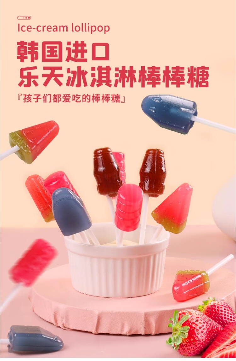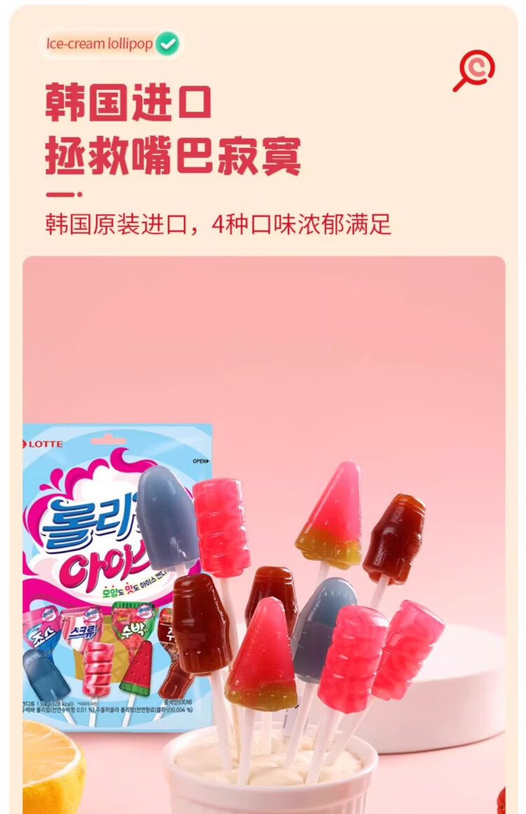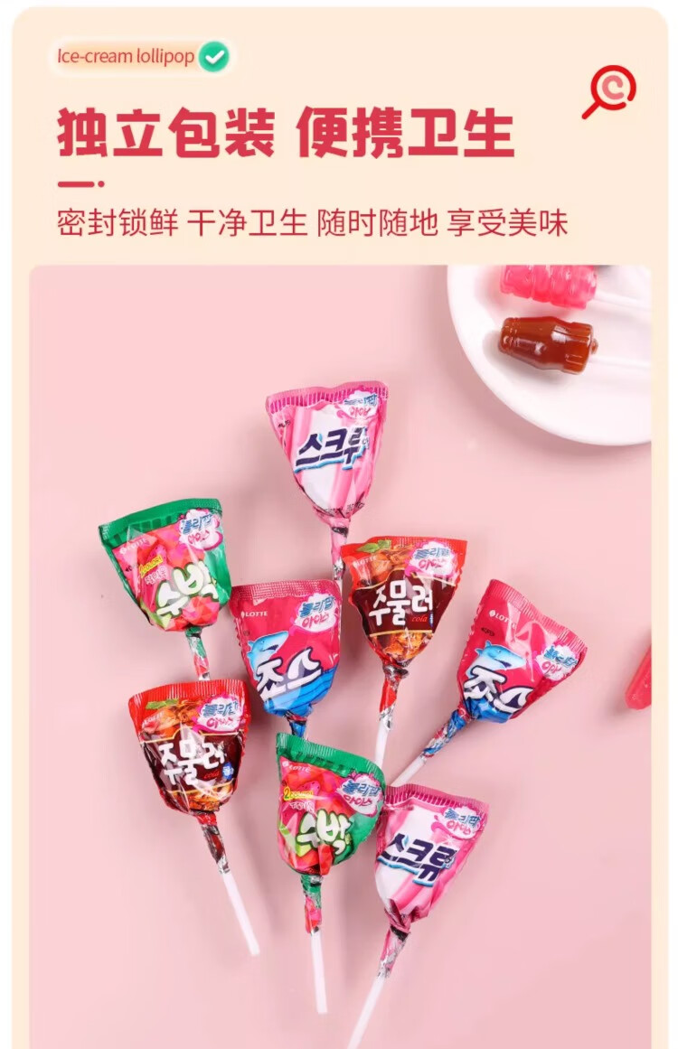 乐天进口乐天冰淇淋棒棒糖132g儿童可乐西瓜冰激凌糖果水果糖网红爆款
