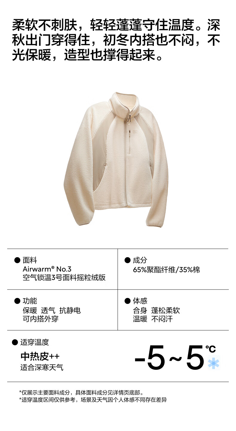 蕉内【刘浩存同款】热皮302++女士摇粒绒短外套秋冬保暖锁温防风内搭