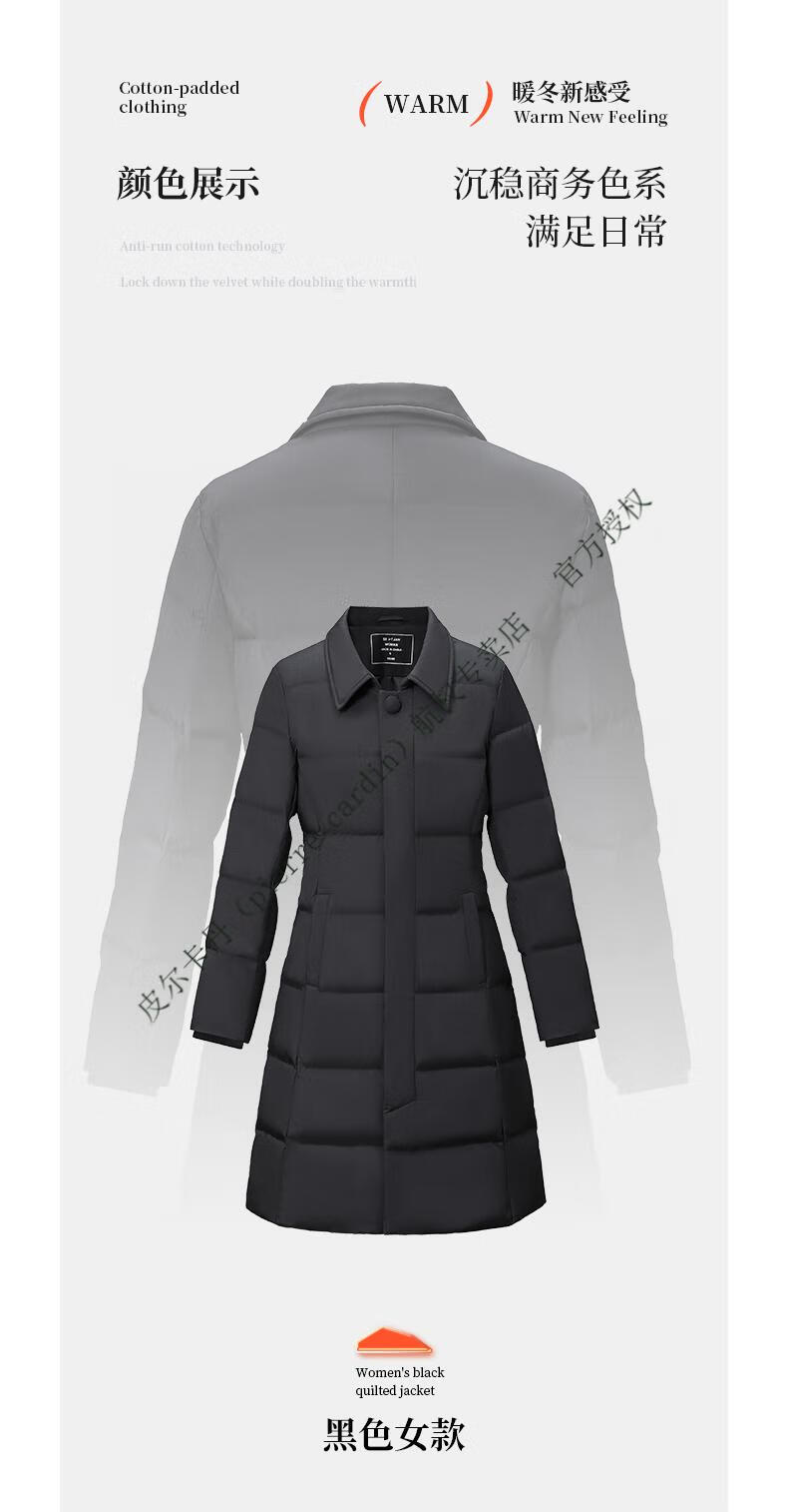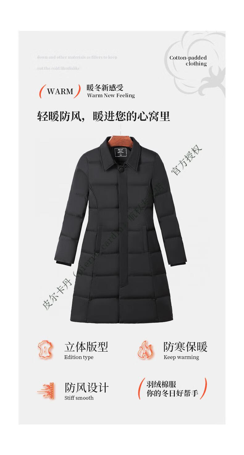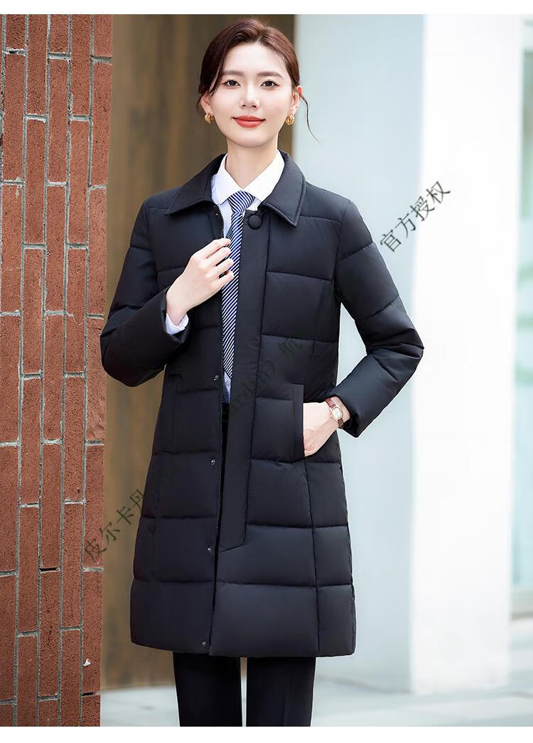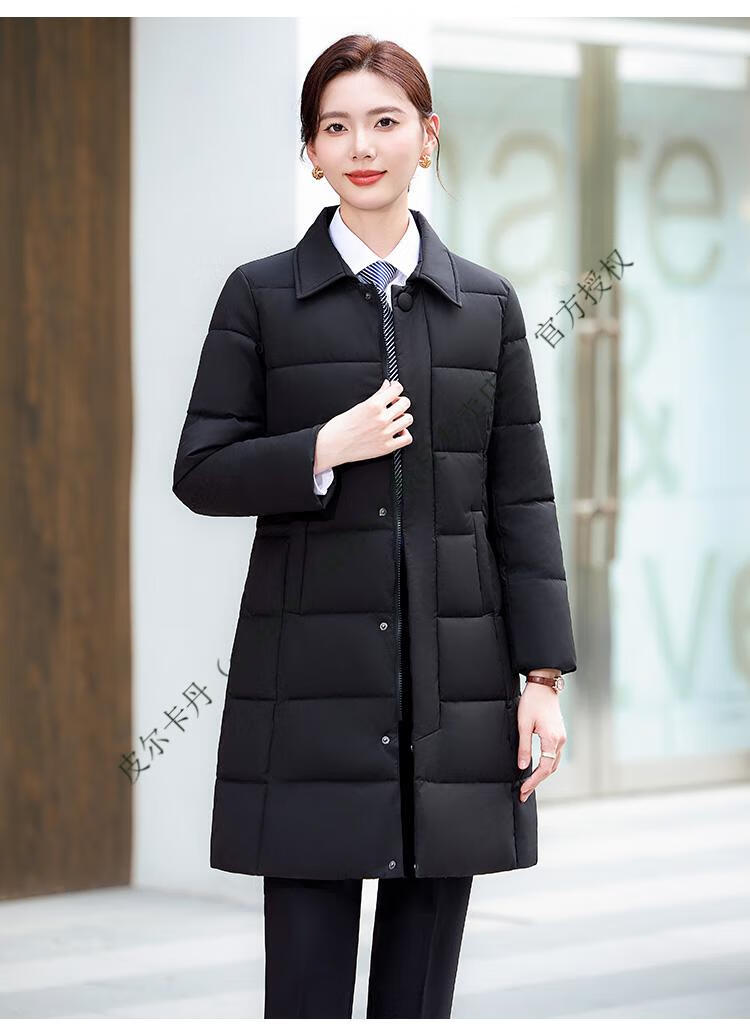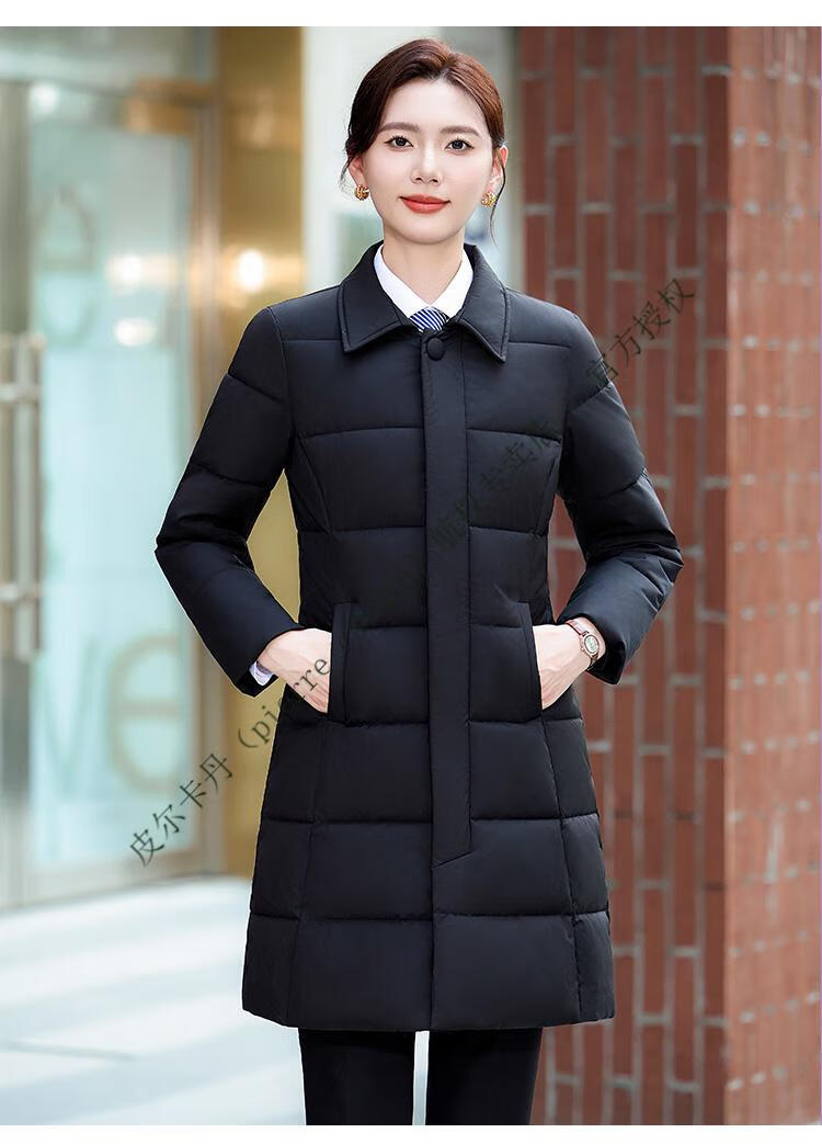 皮尔卡丹(pierre cardin)中长款羽绒服女冬季加厚珠宝店销售工作服通勤职业装黑色羽绒外套 【女款】黑色羽绒服2158(白鸭绒填充) 「升级版 S