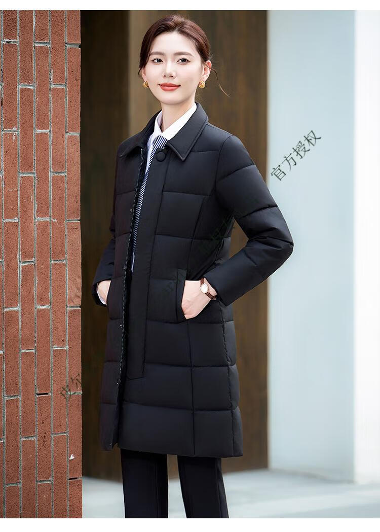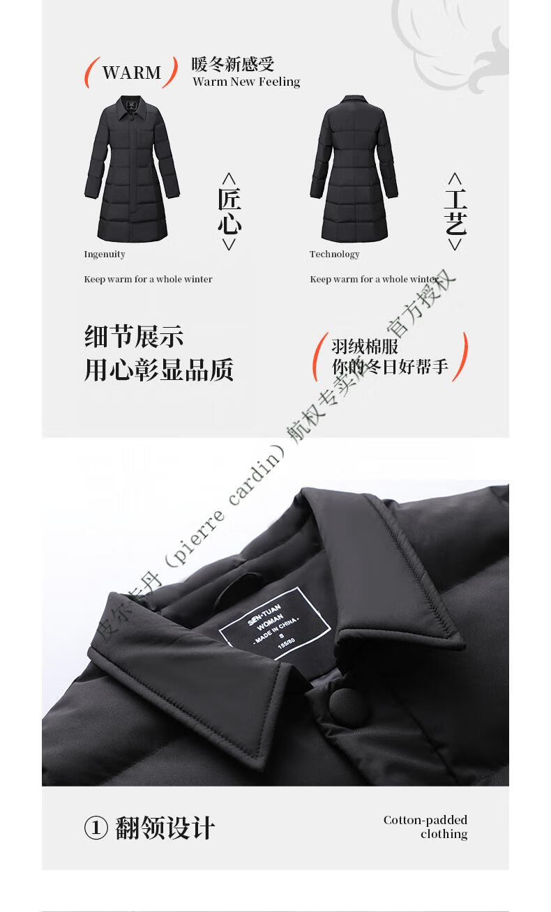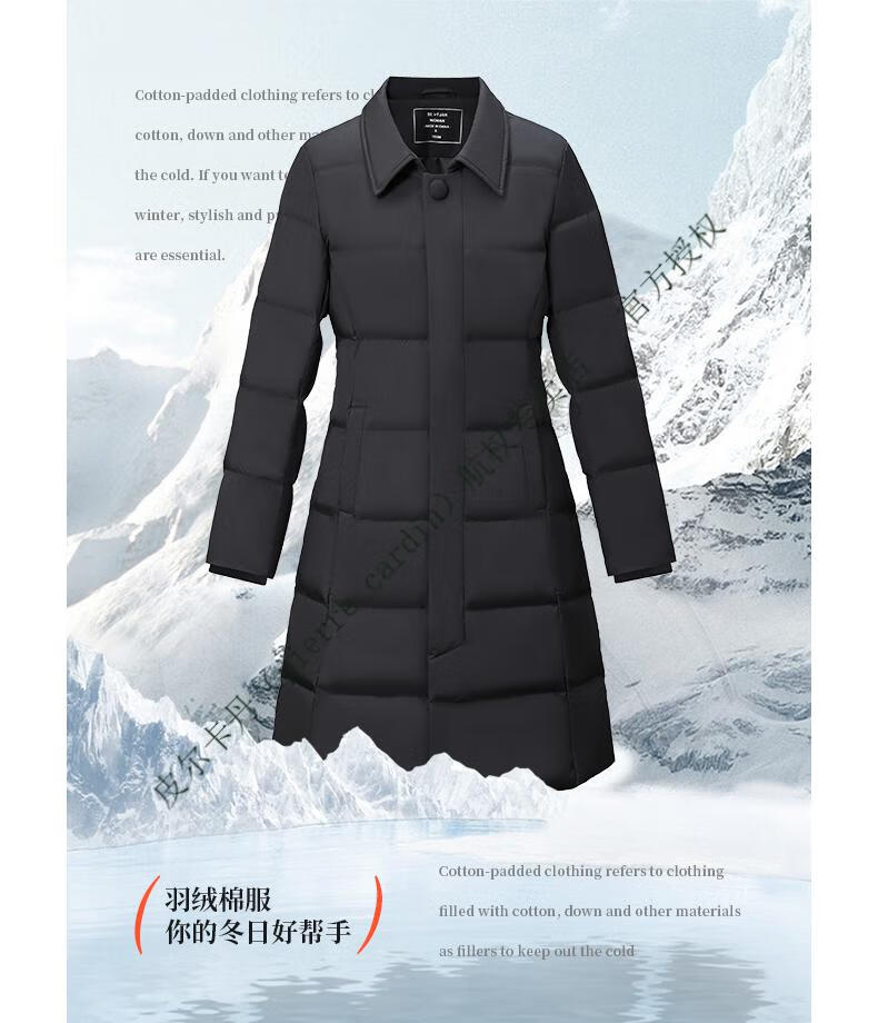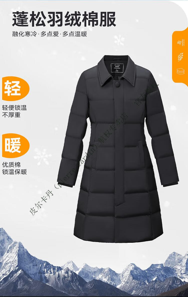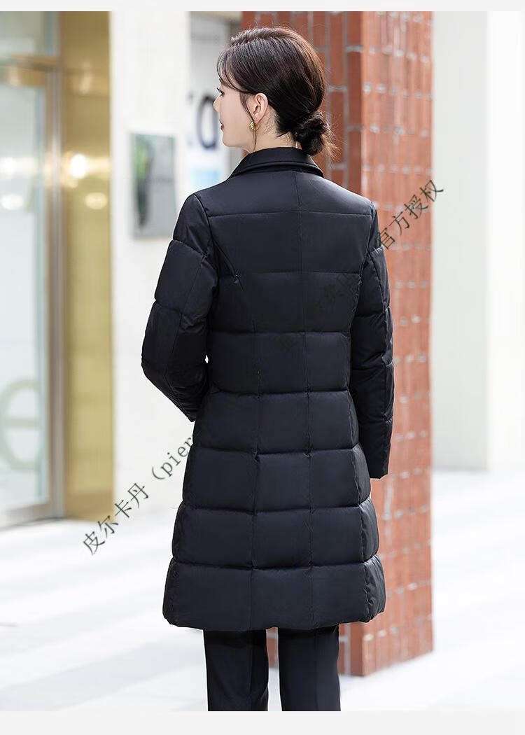 皮尔卡丹(pierre cardin)中长款羽绒服女冬季加厚珠宝店销售工作服通勤职业装黑色羽绒外套 【女款】黑色羽绒服2158(白鸭绒填充) 「升级版 S