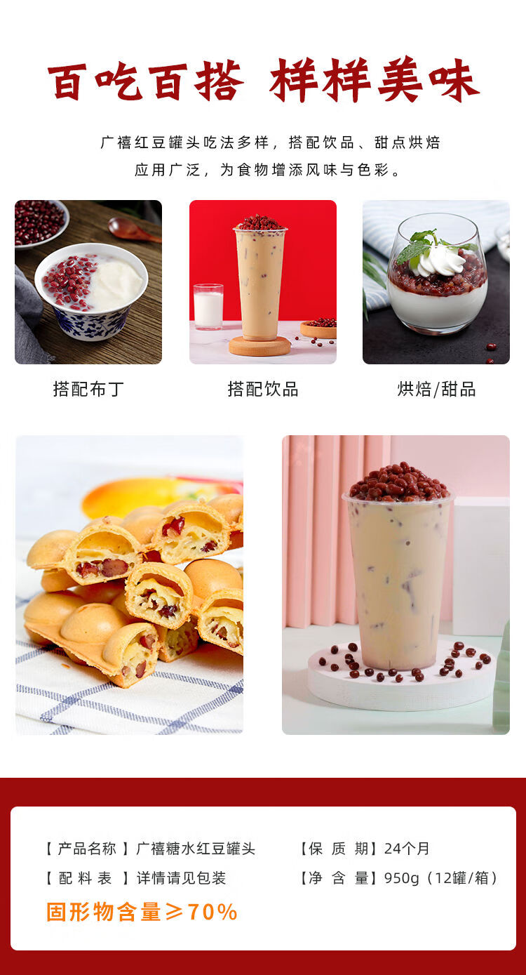 优品红豆罐头950g红小豆酱腰蜜熟糖纳蜜豆即焙奶茶店专用原料 红豆罐头950g买11送1
