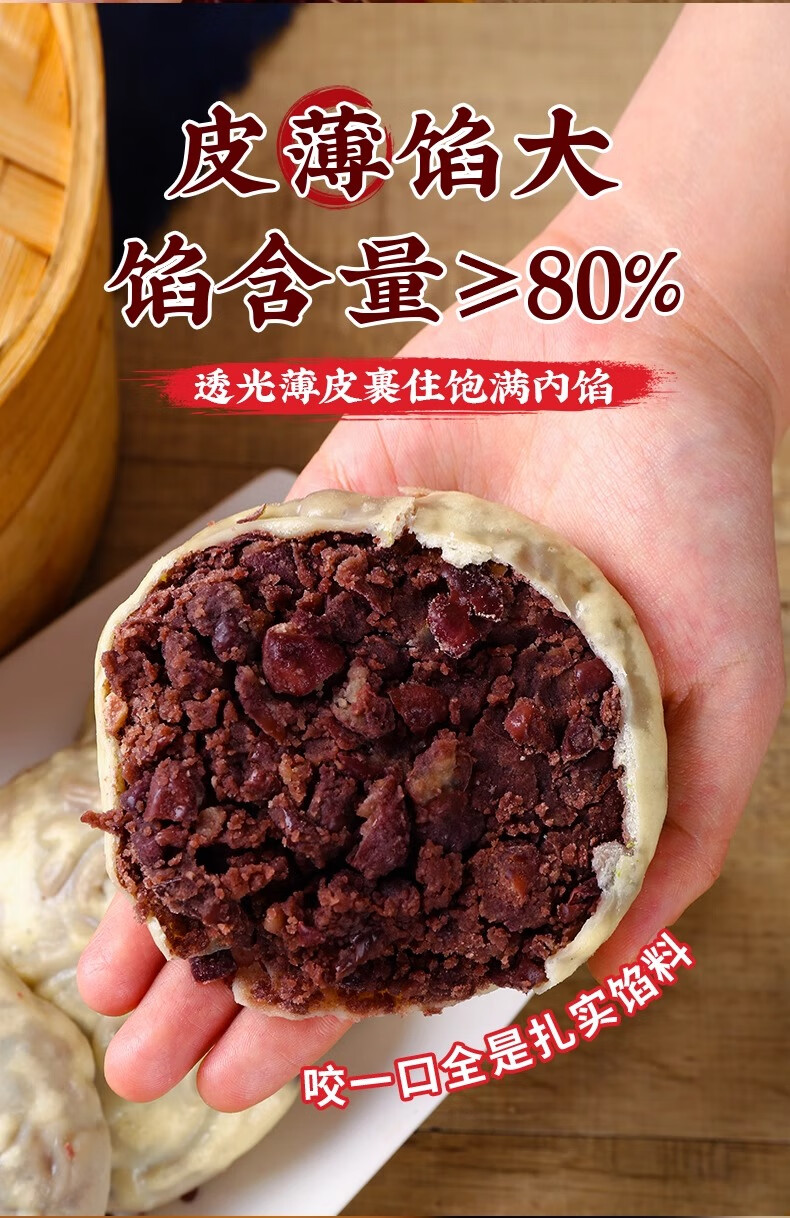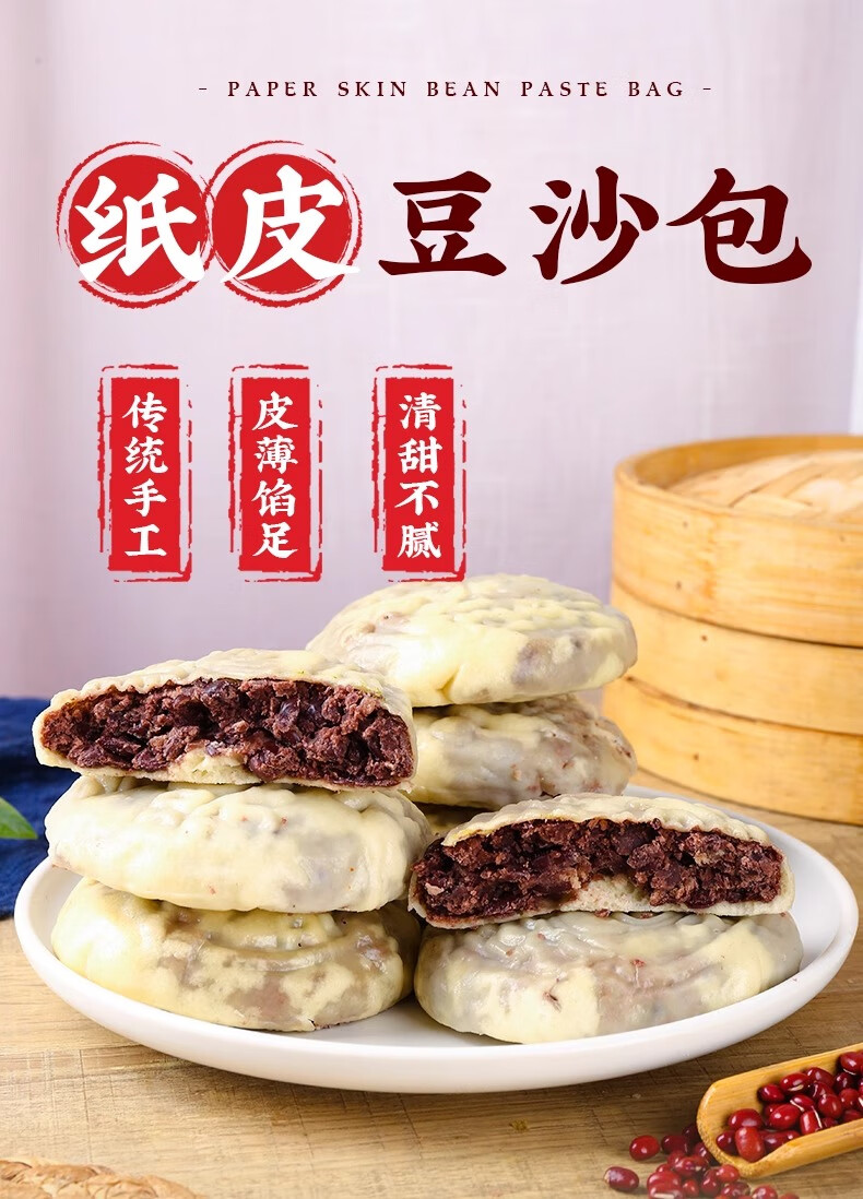 纯手工纸皮红豆饼豆沙包红豆包纸皮馒头窝窝头面点主食早餐半成品 【纸皮红豆包15个】3斤装