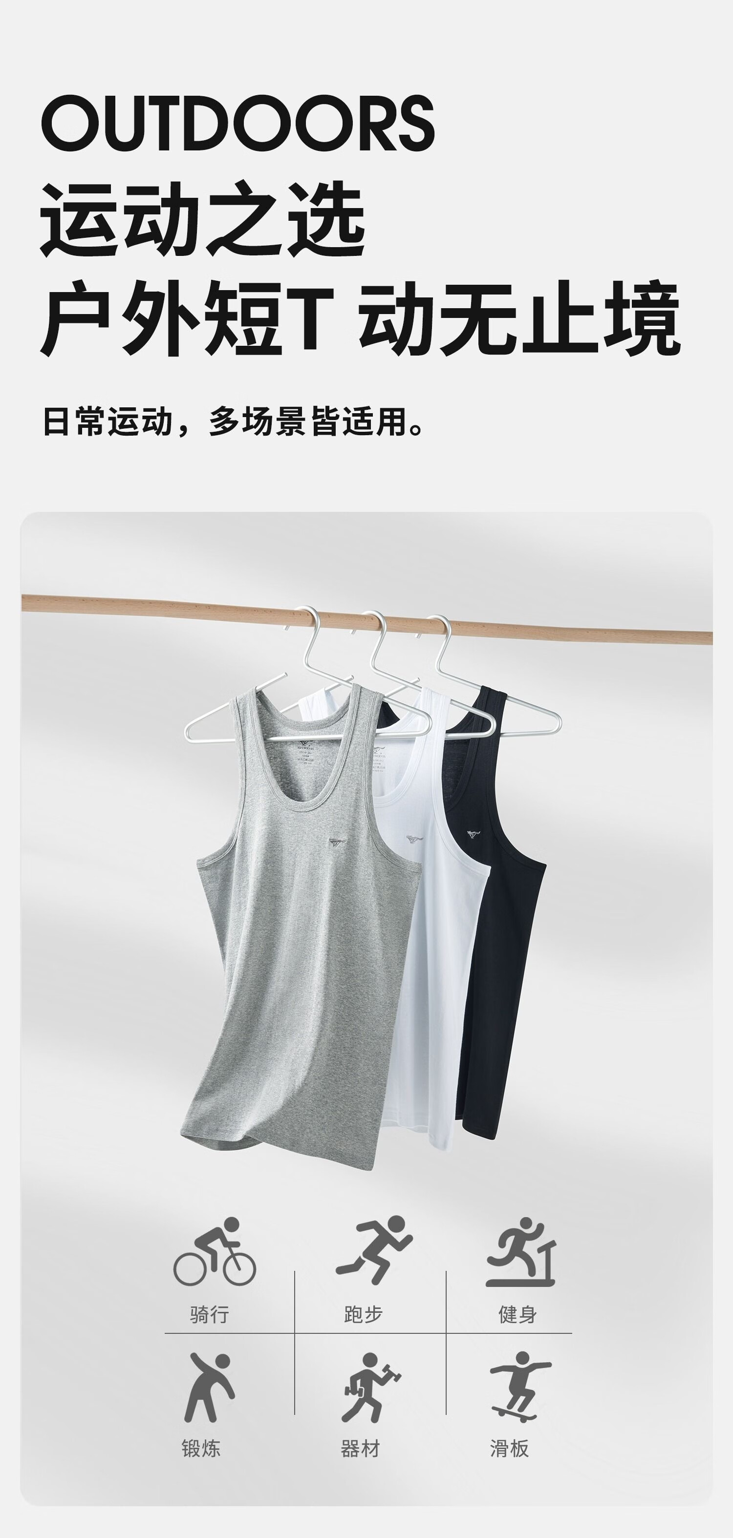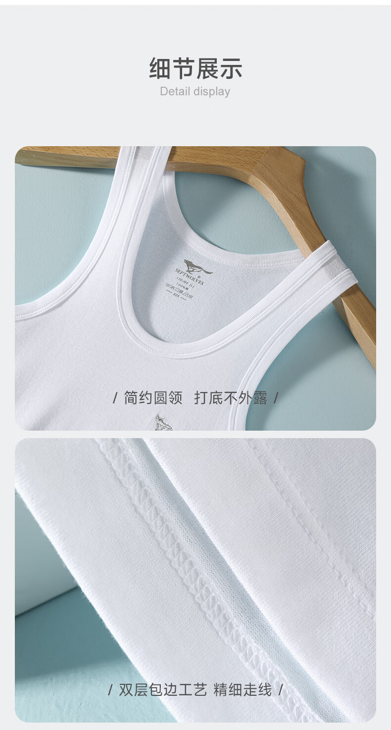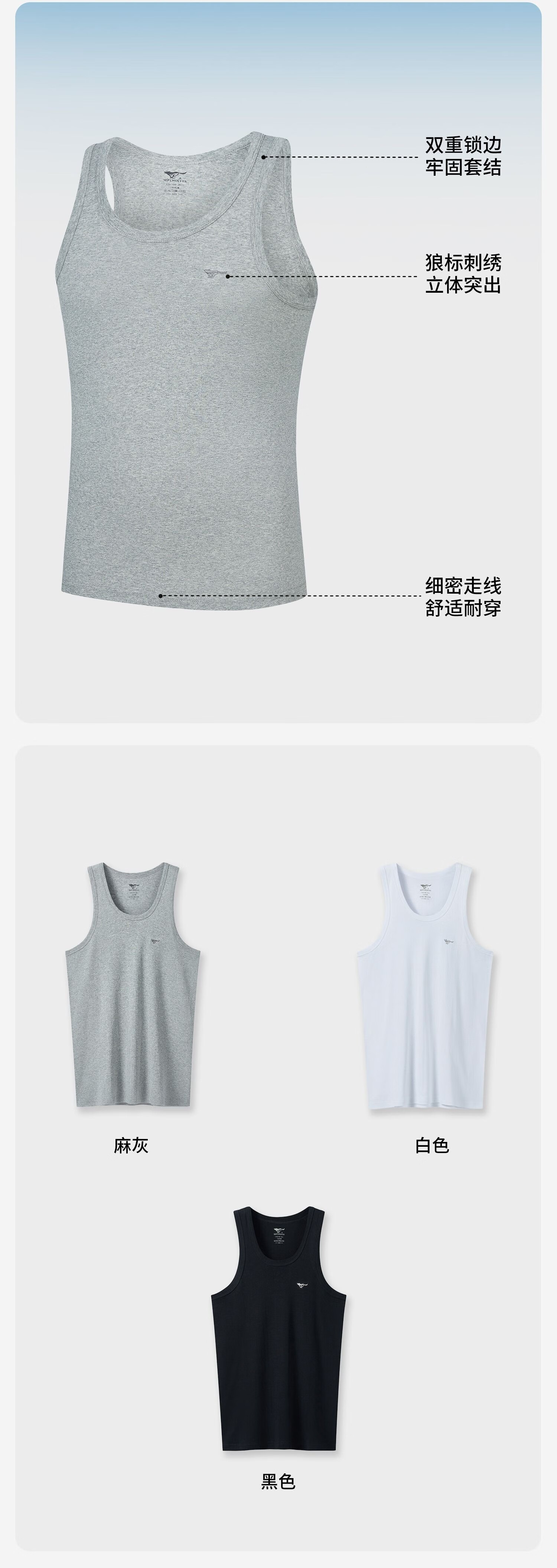 七匹狼(SEPTWOLVES)背心男纯棉高弹跨栏背心吸汗透气运动打底背心