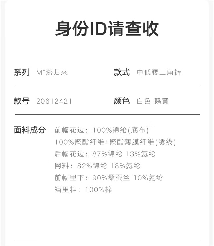 曼妮芬中低腰舒适内裤性感蕾丝刺绣女士三角裤底裤女士内裤 010 白色 M 160/90