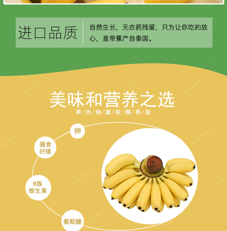 百橙恋泰国皇帝蕉小香蕉 新鲜送礼进口香焦帝皇蕉当季时令甜糯水果礼盒 精选8斤【无礼盒】