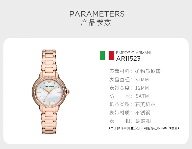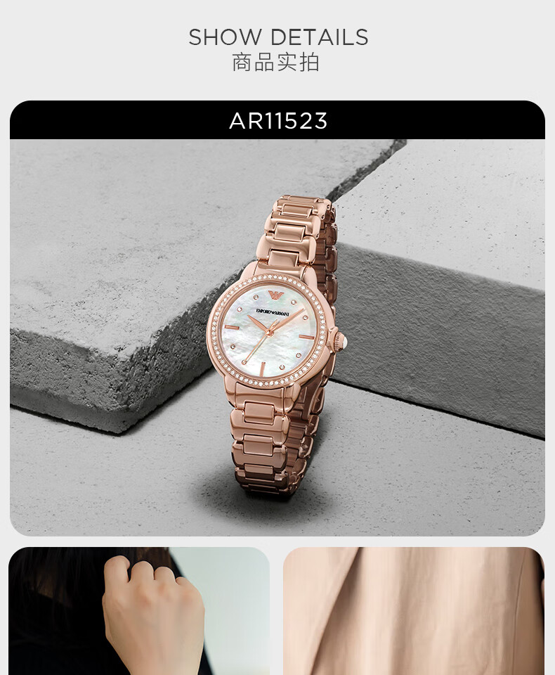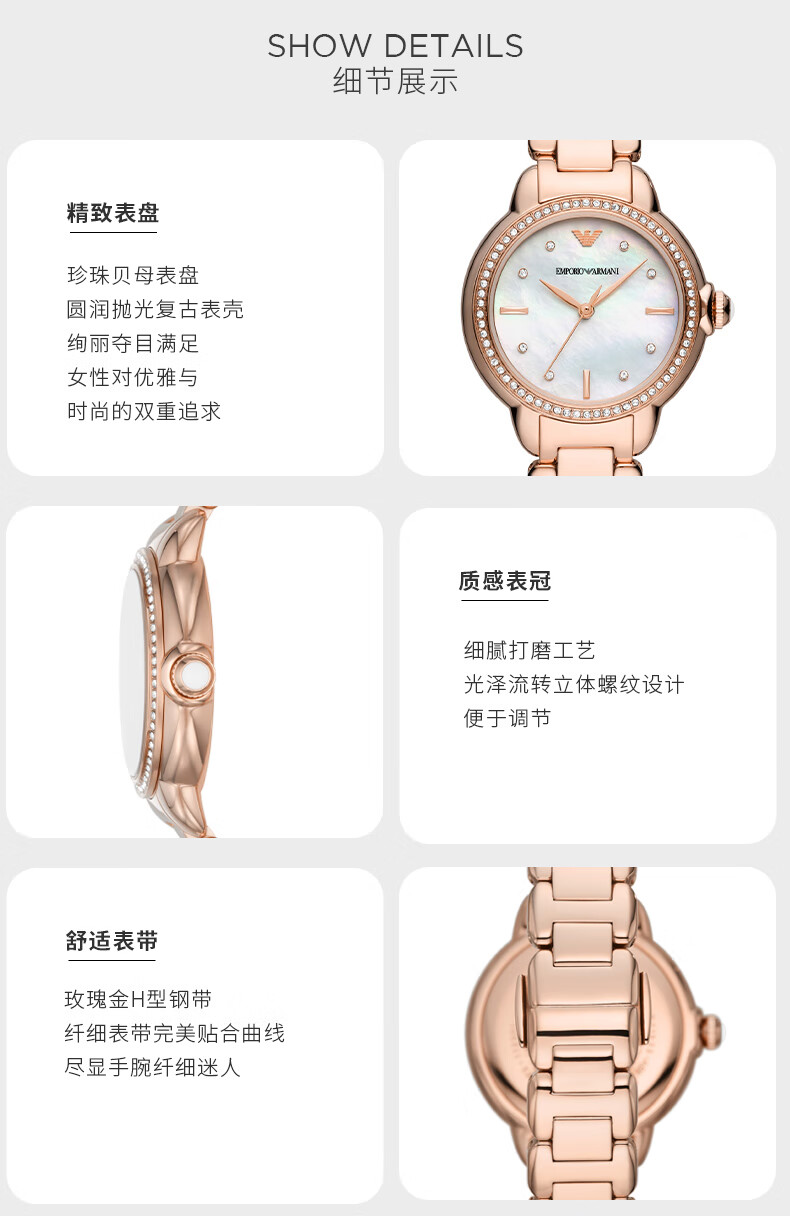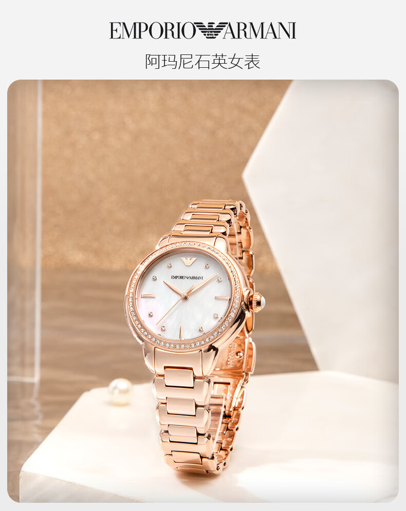 EMPORIO ARMANI手表女士欧美表满天星时尚石英钢带腕表情人节礼物送女友 AR11523