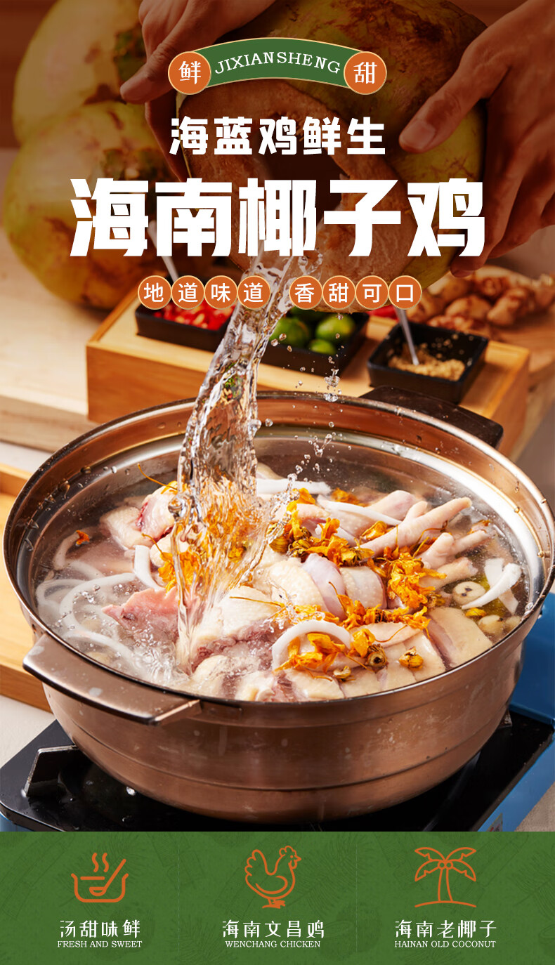 海蓝鸡鲜生海南文昌椰子鸡火锅4人套餐 散养140天土鸡无抗地标鸡肉源头直发