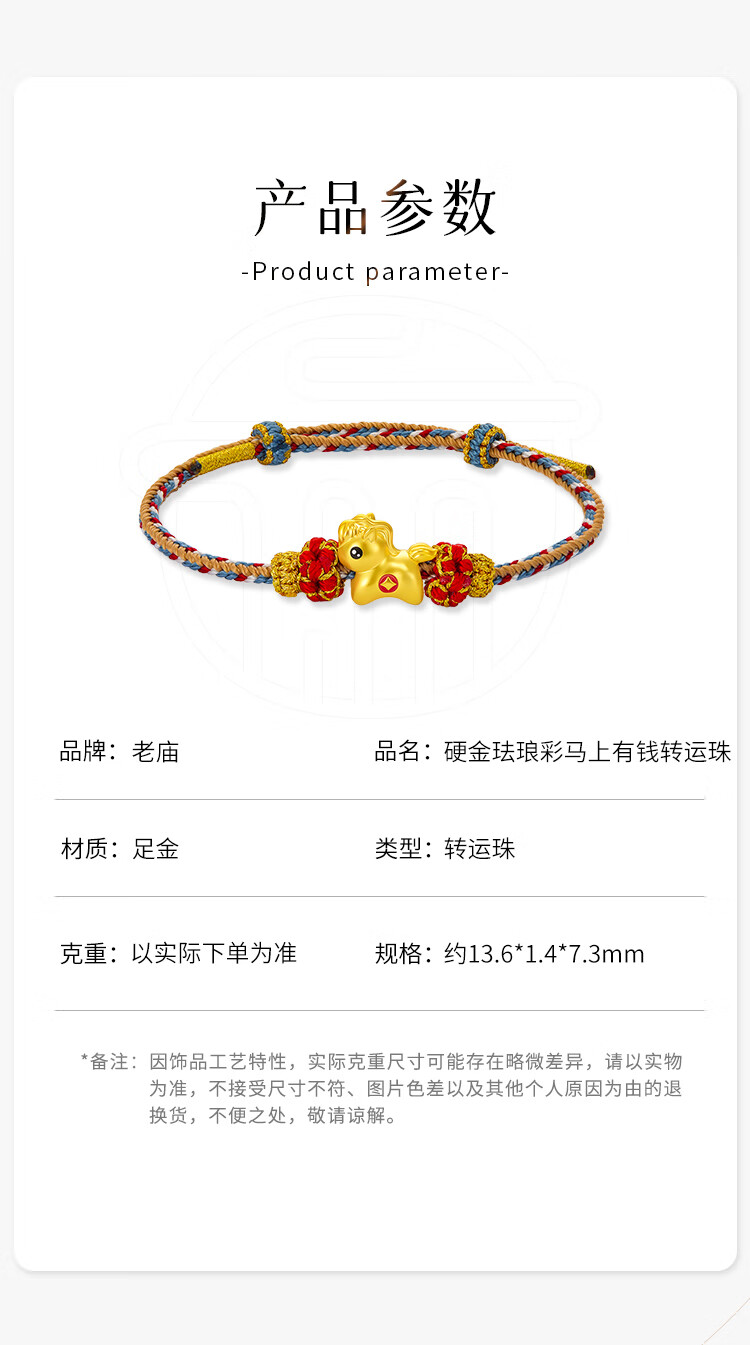 老庙黄金转运珠生肖马本命年珐琅彩马上有钱转运珠手串手链送妈妈礼物 转运珠/约0.7g