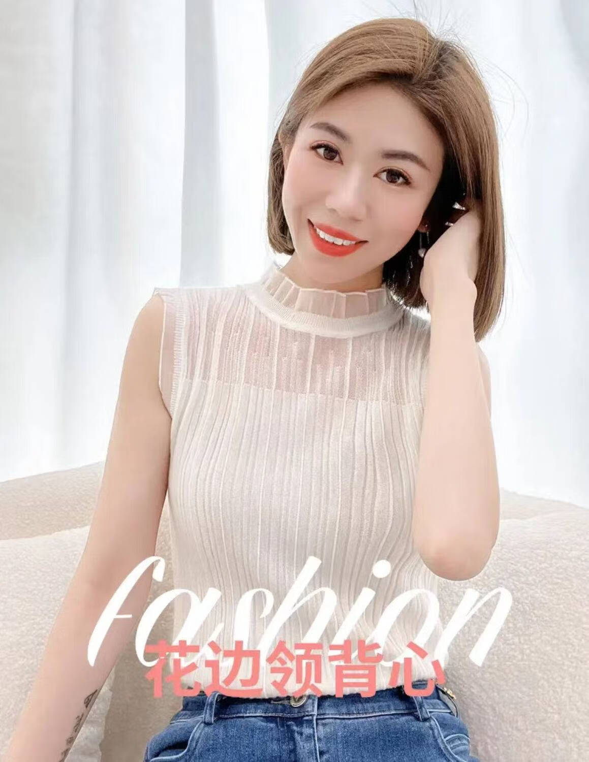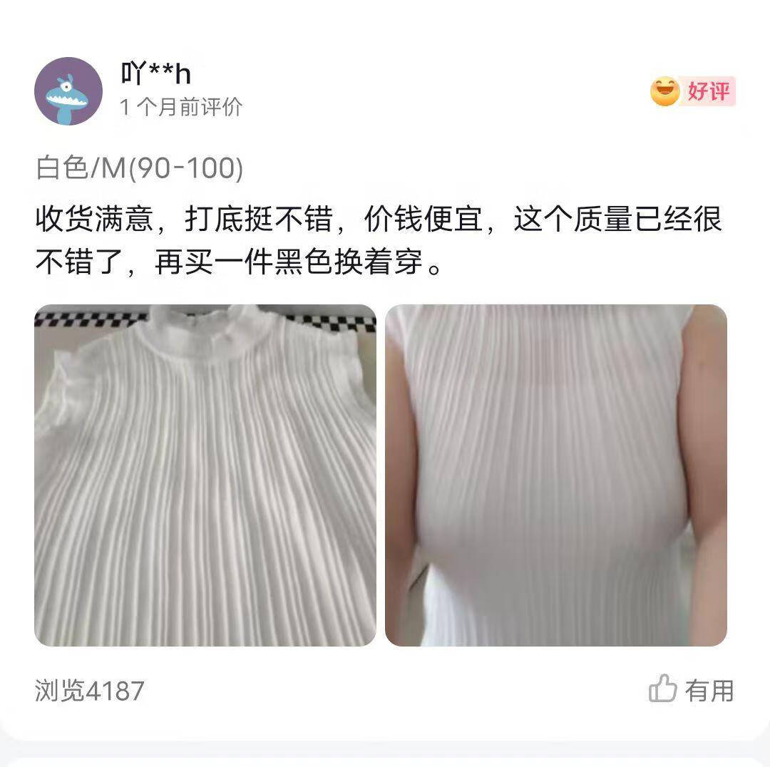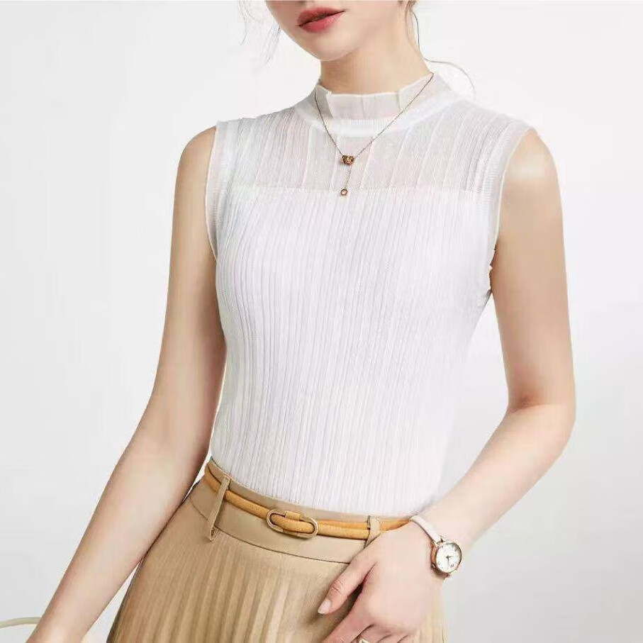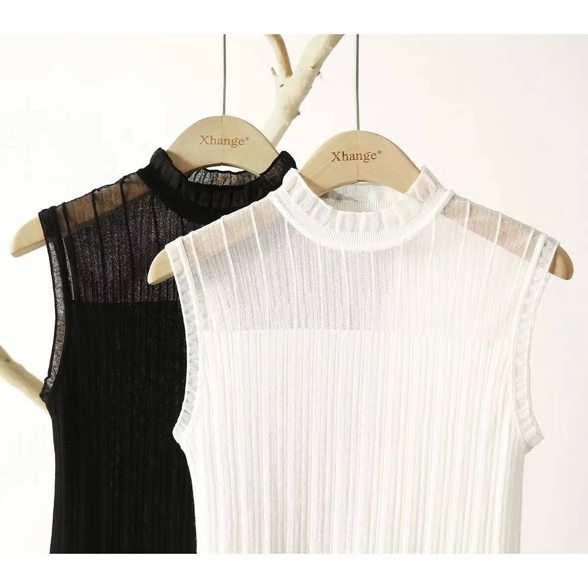 【法式时装】木耳边百搭打底衫女内搭外穿洋气无袖上衣 黑色+白色 M (建议80-100斤)