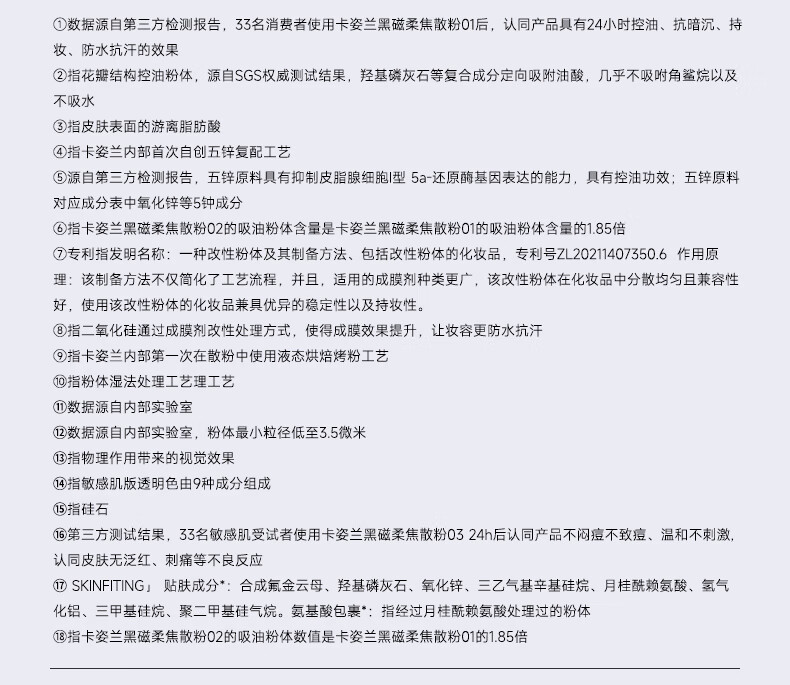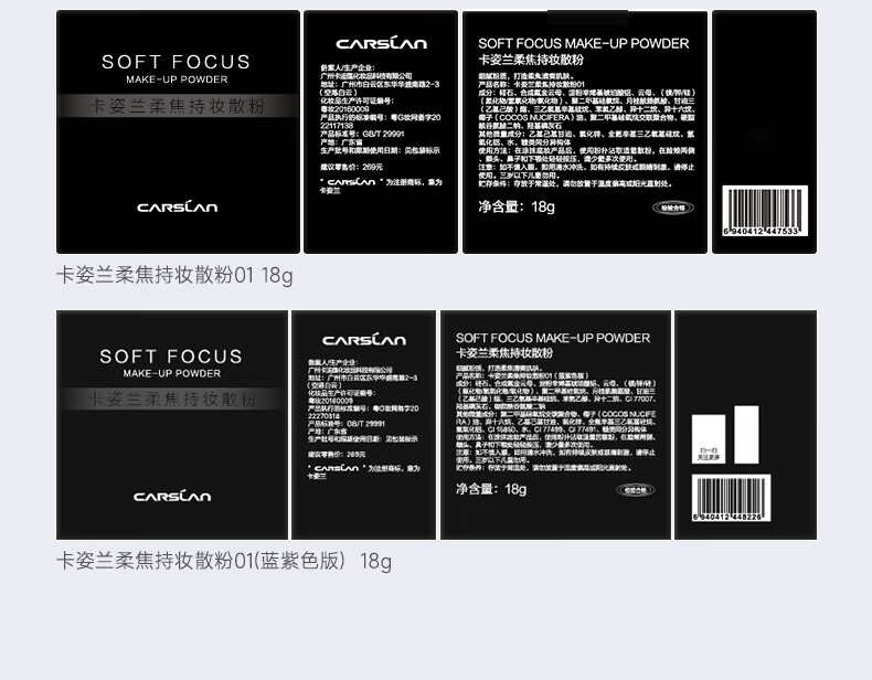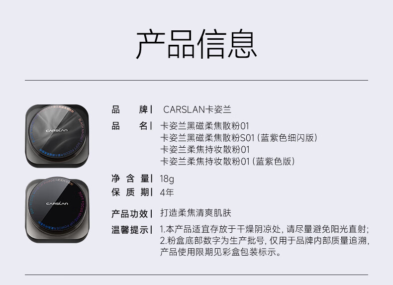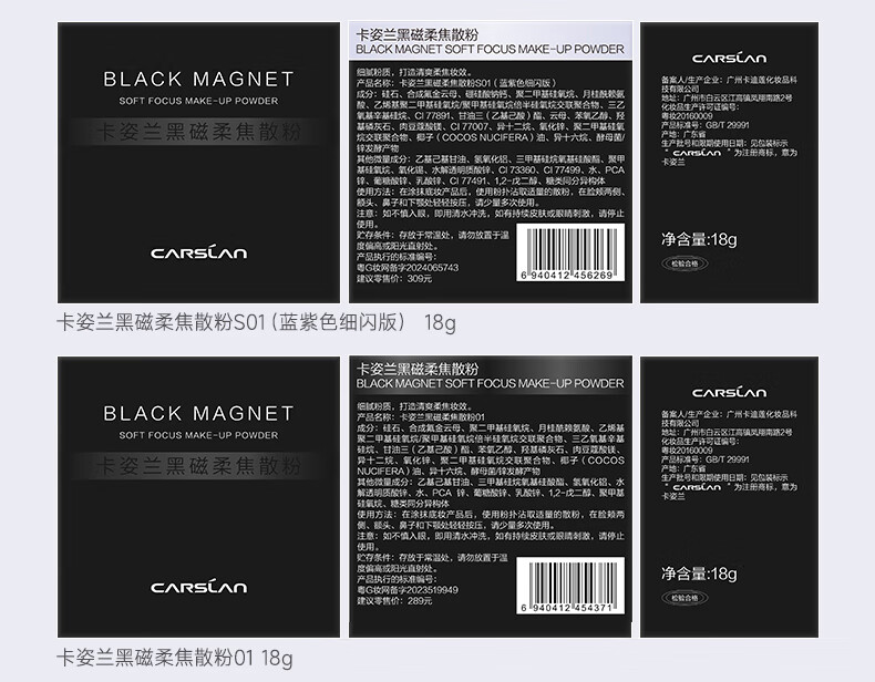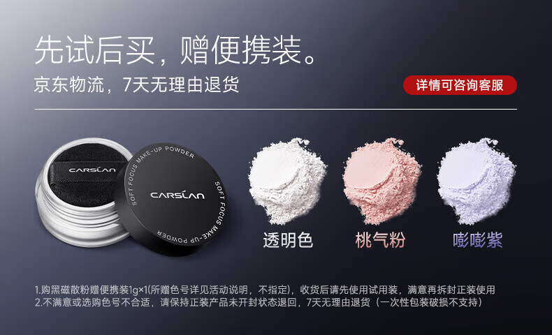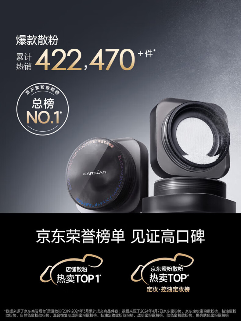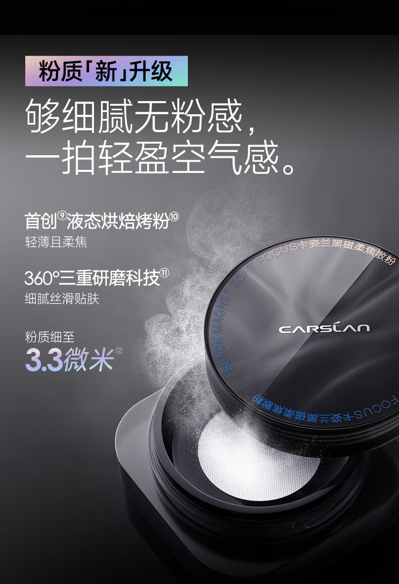 卡姿兰(Carslan)黑磁散粉定妆粉控油遮瑕防水防汗持久不易脱妆隐形毛孔干蜜粉小样 散粉-常规透明色1g