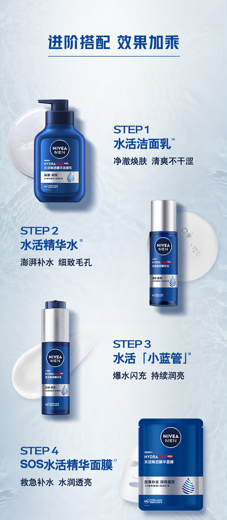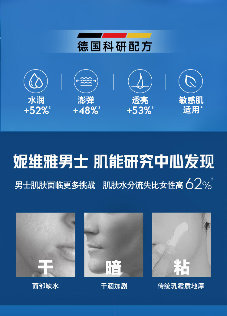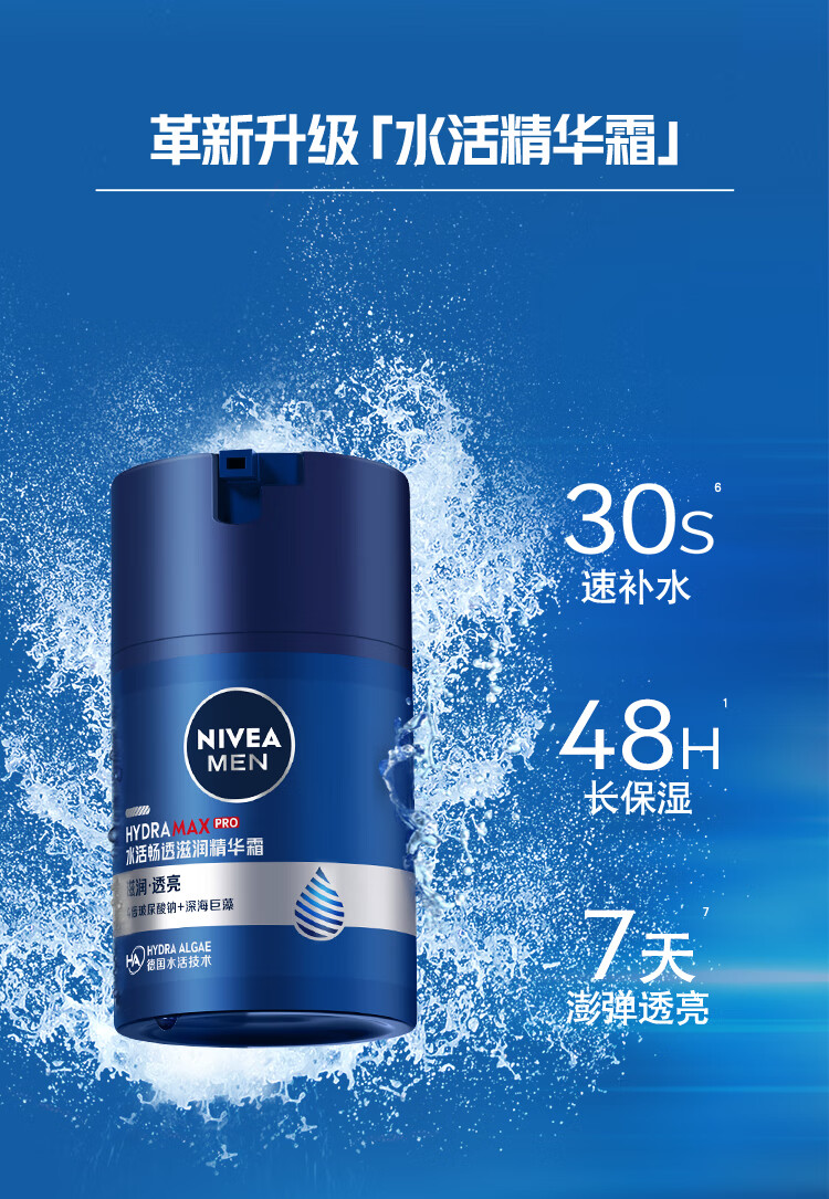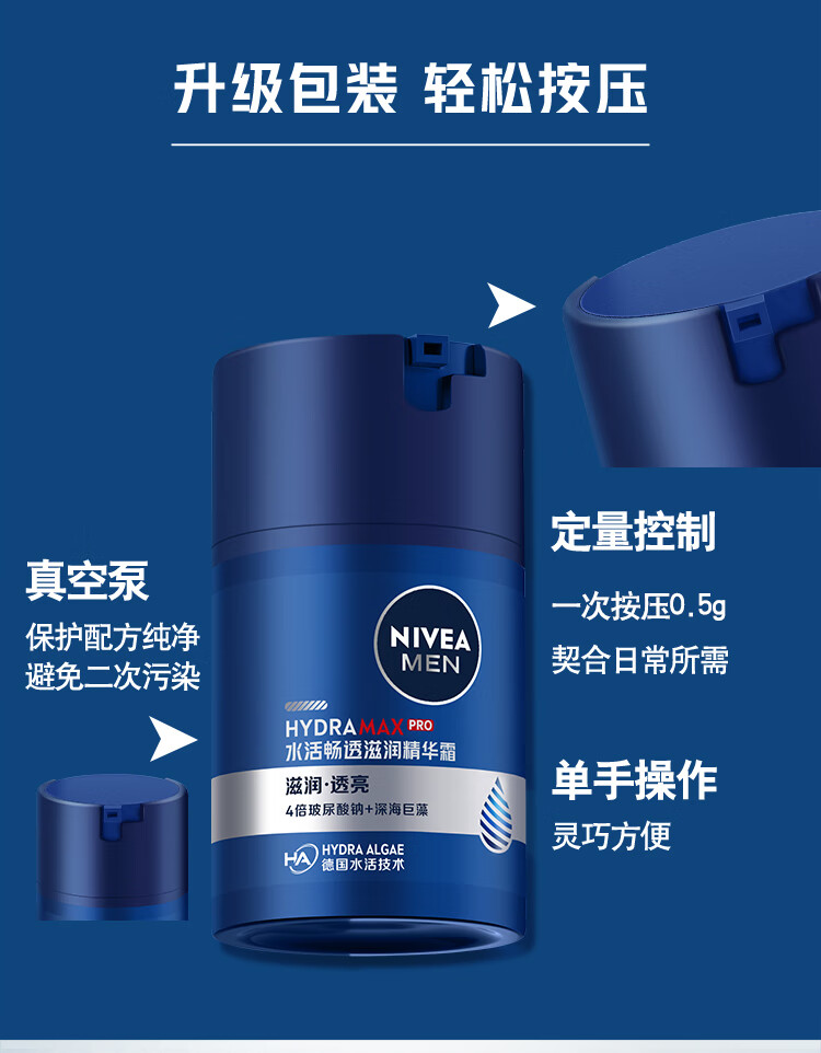 妮维雅(NIVEA)男士【长效保湿】补水保湿拒绝油感水活畅透精华霜50g干皮新年