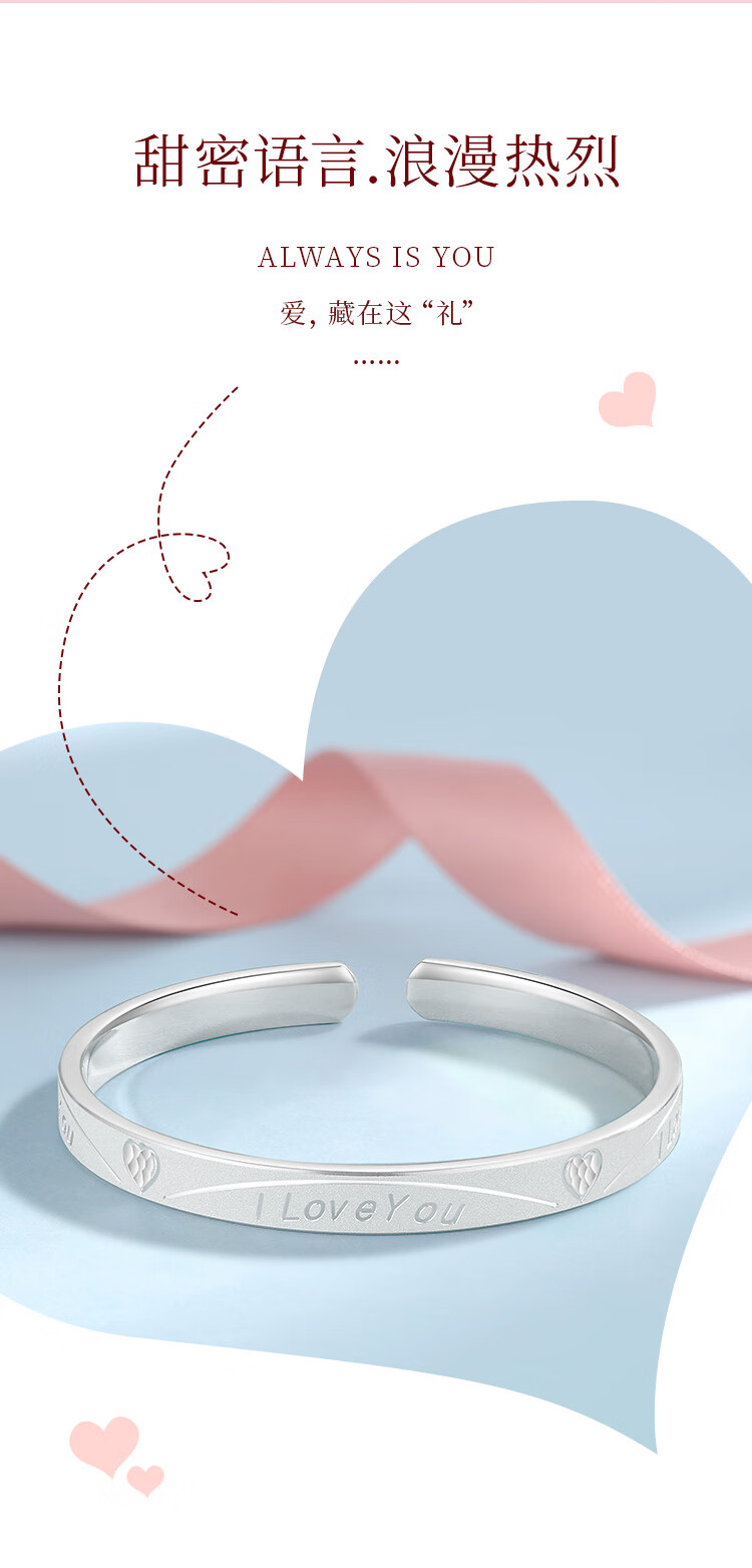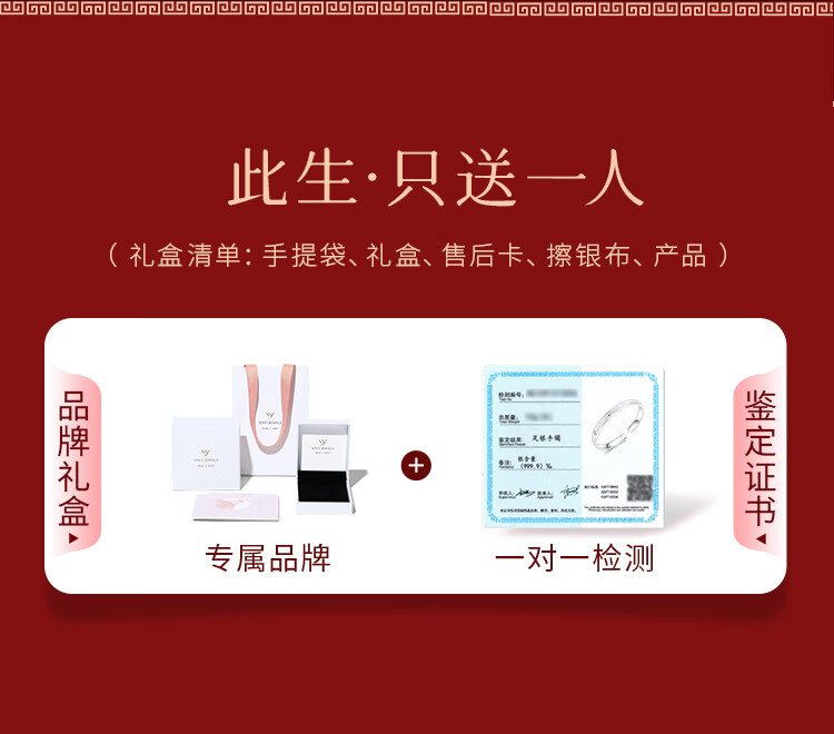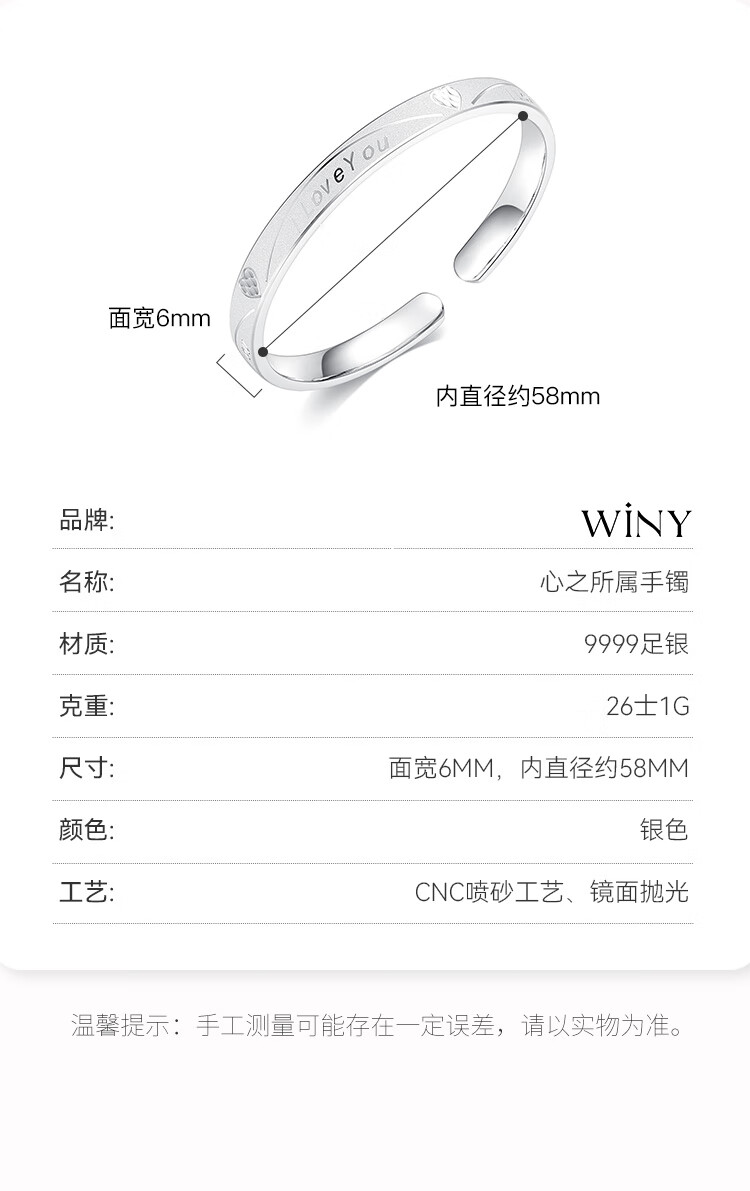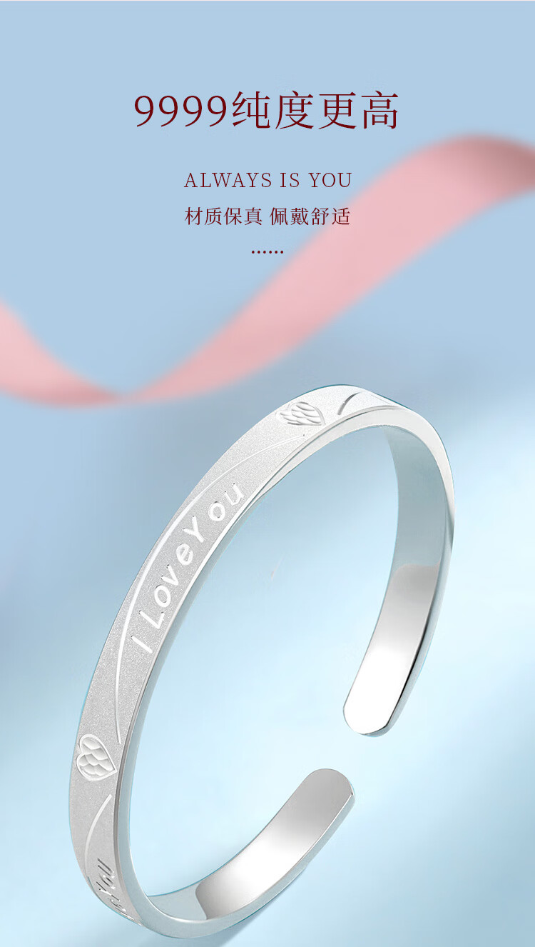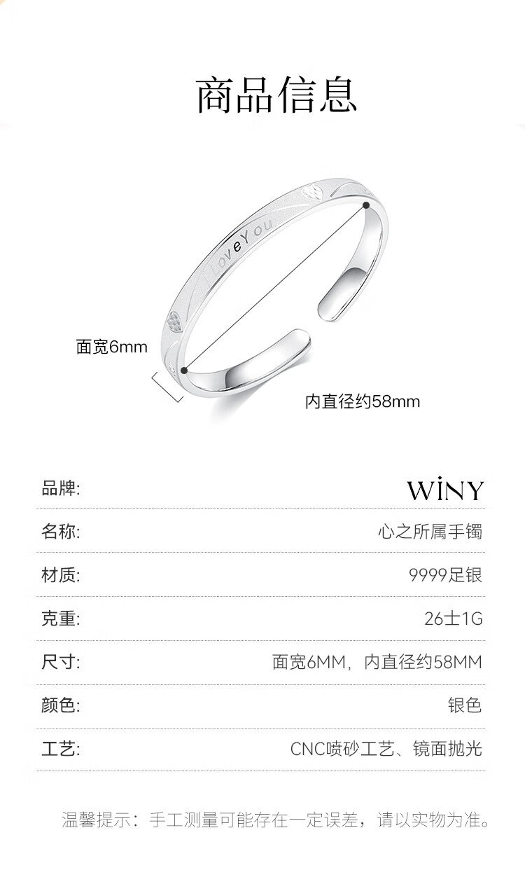 唯一(Winy)银手镯足银9999实心镯子生日新年礼物送女朋友老婆妈妈纯银饰品