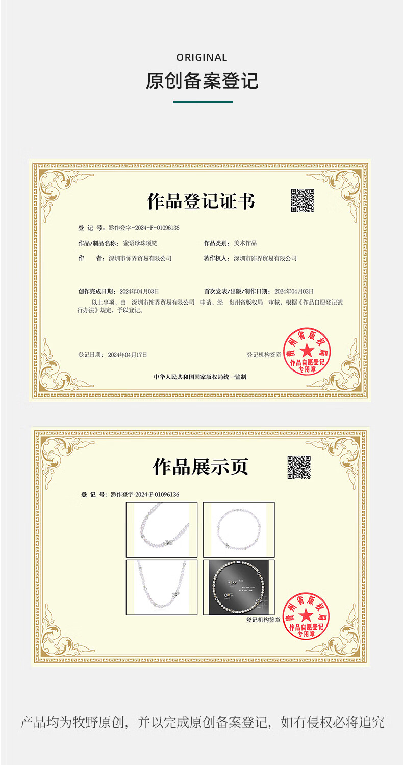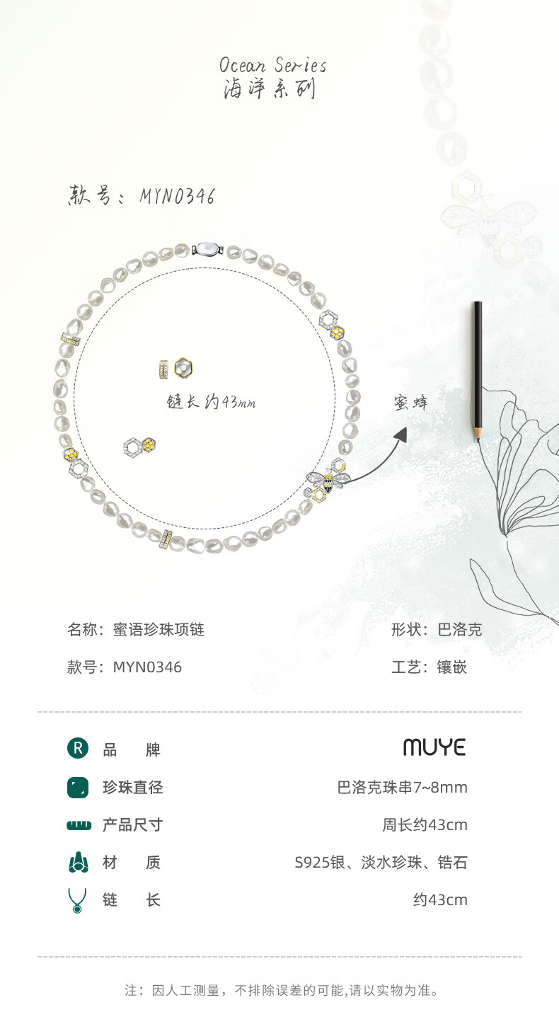 牧野(Muye)然淡水珍珠项链长款 蜜语珍珠项链 项链配饰女 2024新款爆款 蜜语珍珠项链