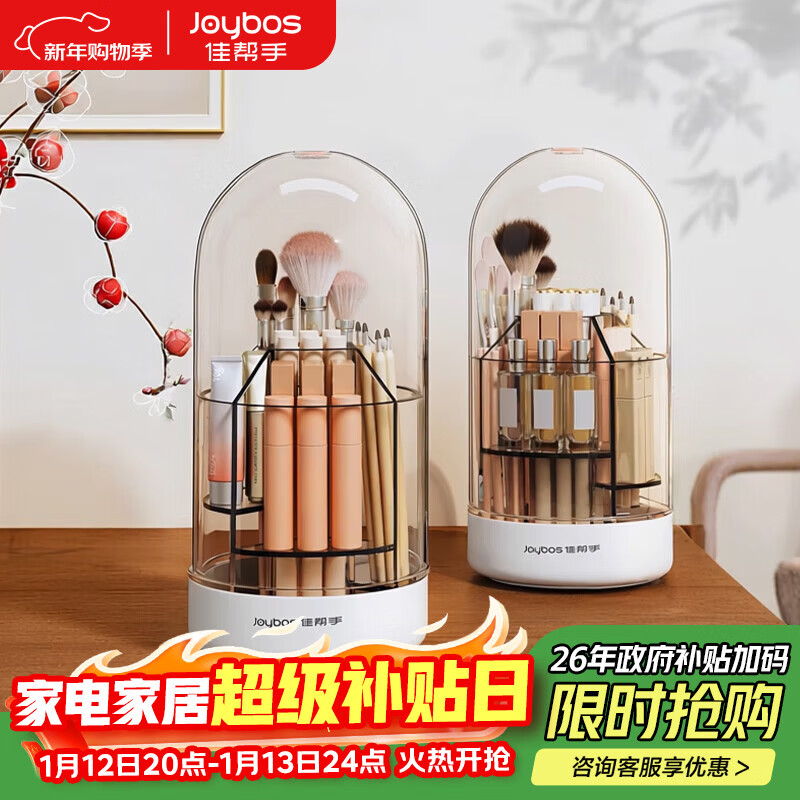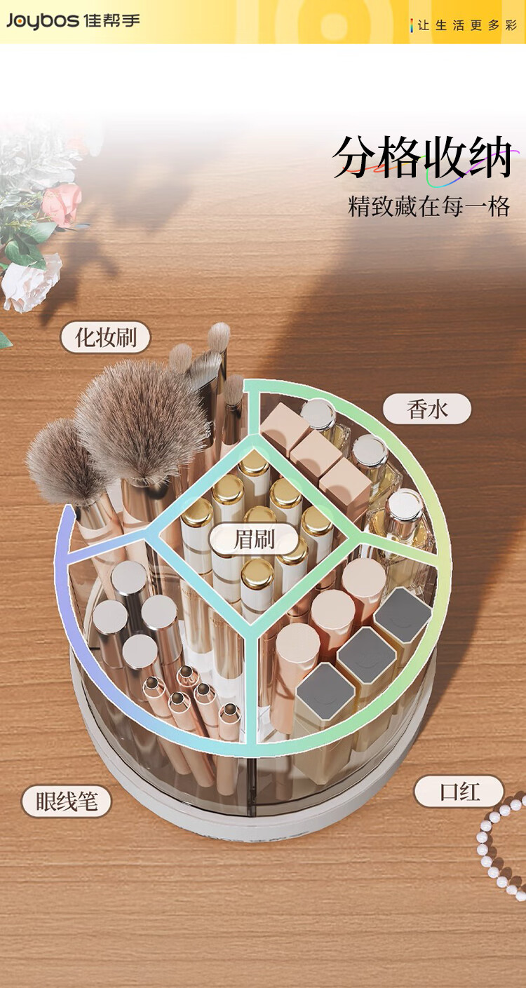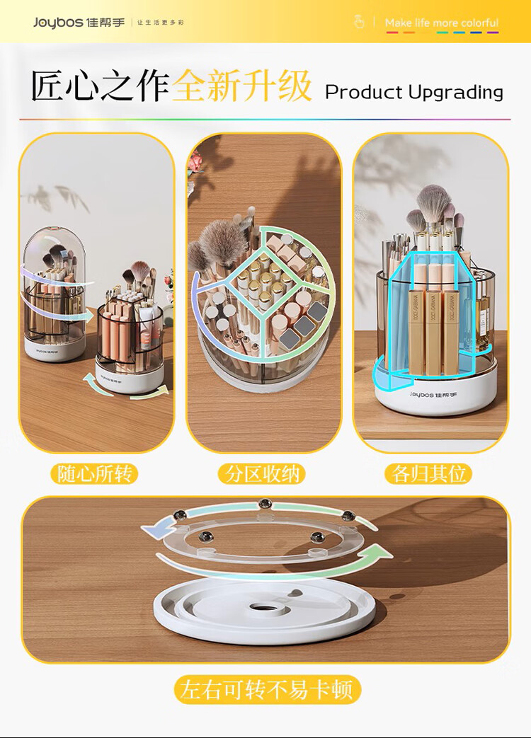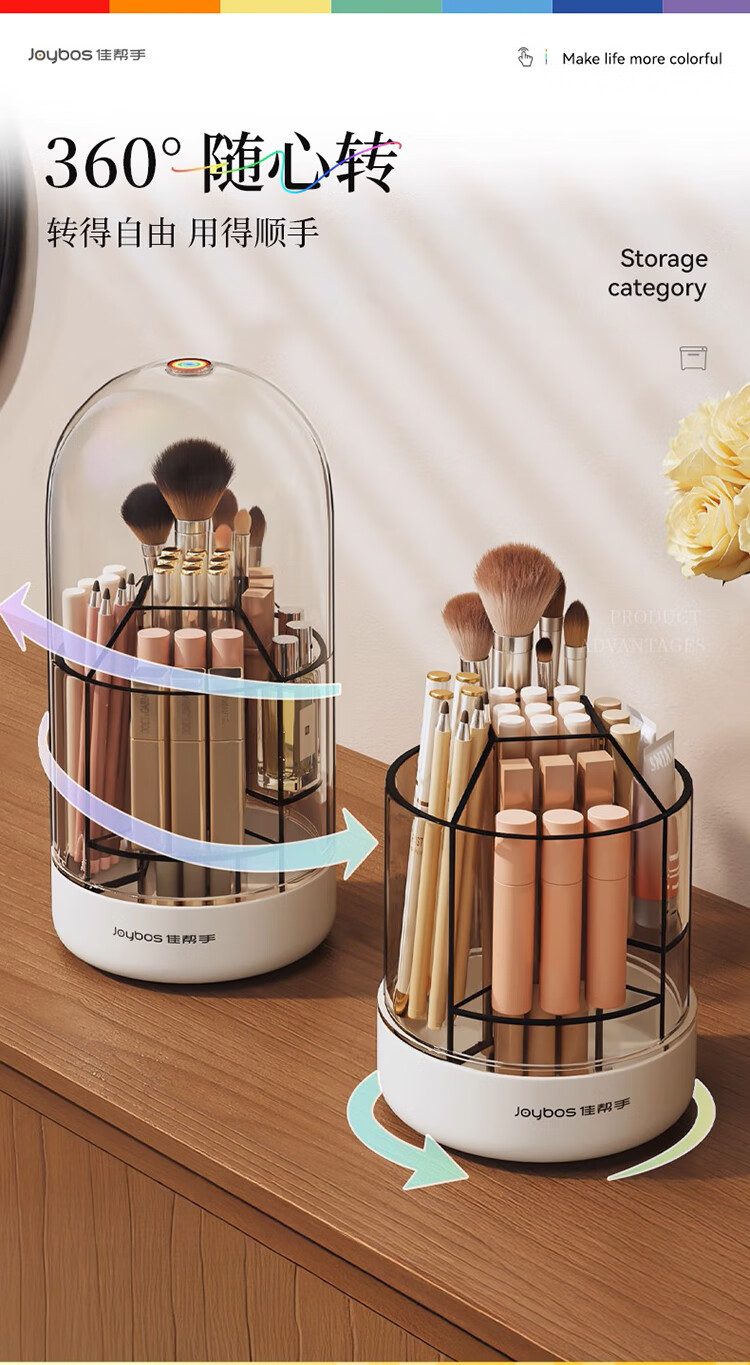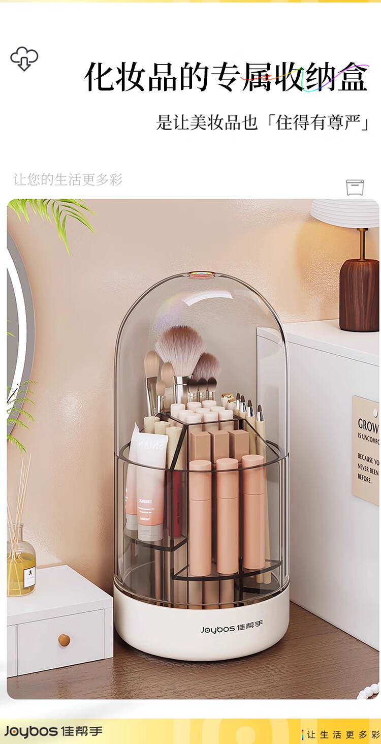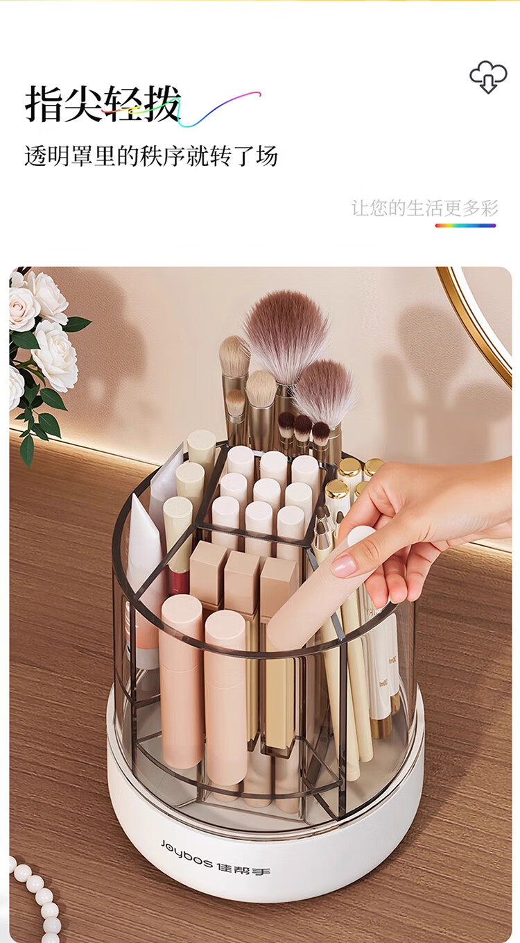 佳帮手化妆刷收纳盒旋转透明防尘首饰口红化妆品收纳盒桌面 带盖