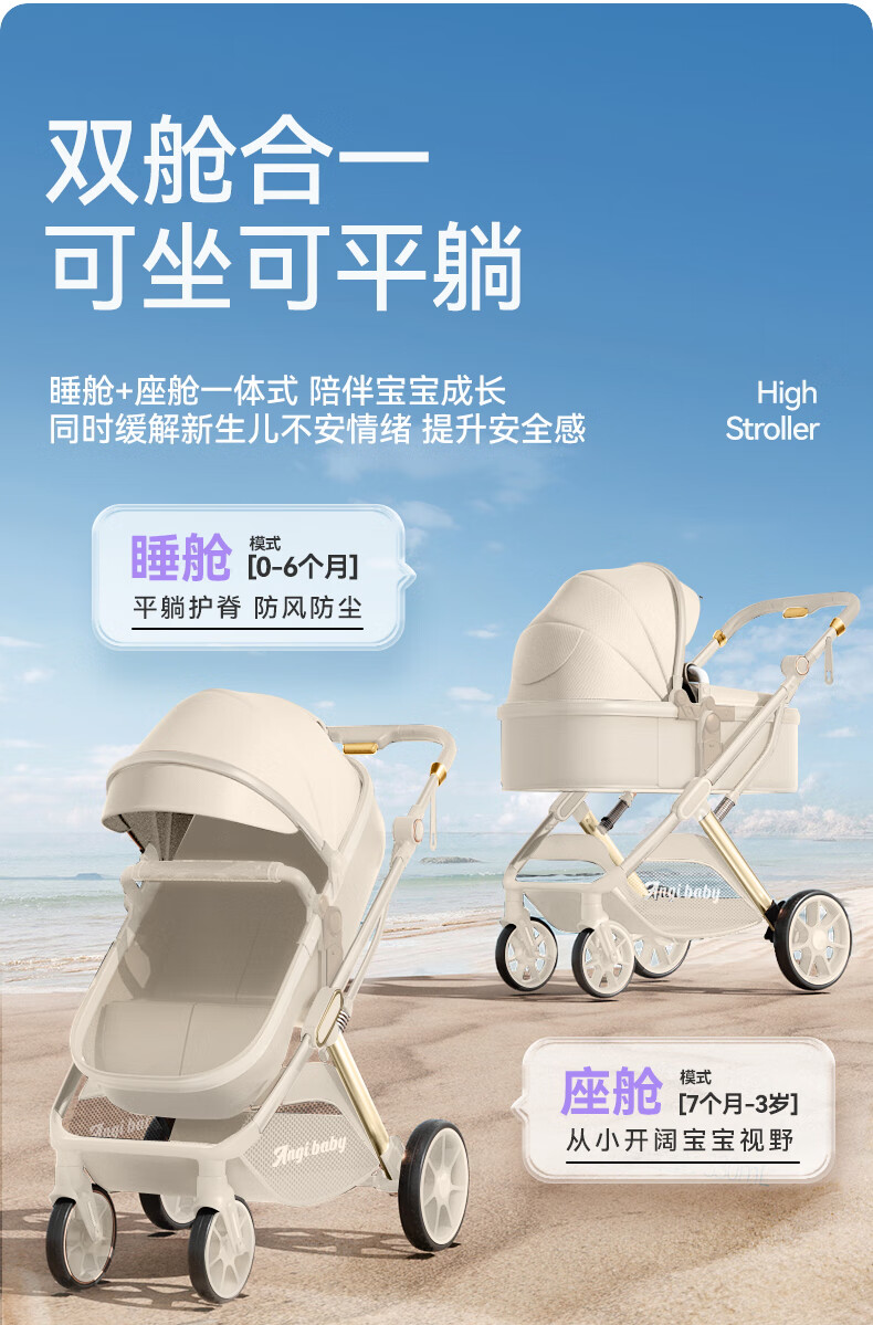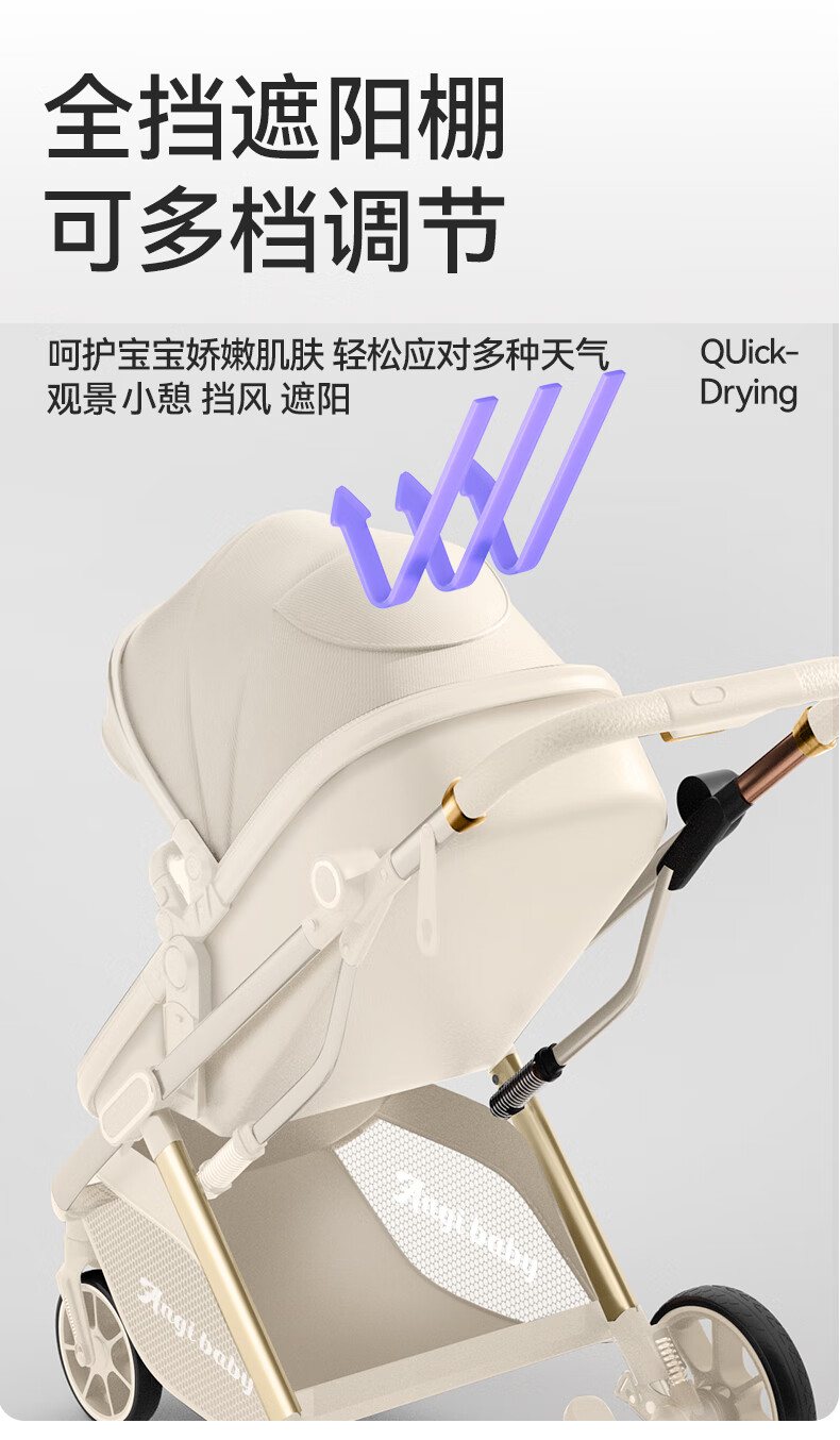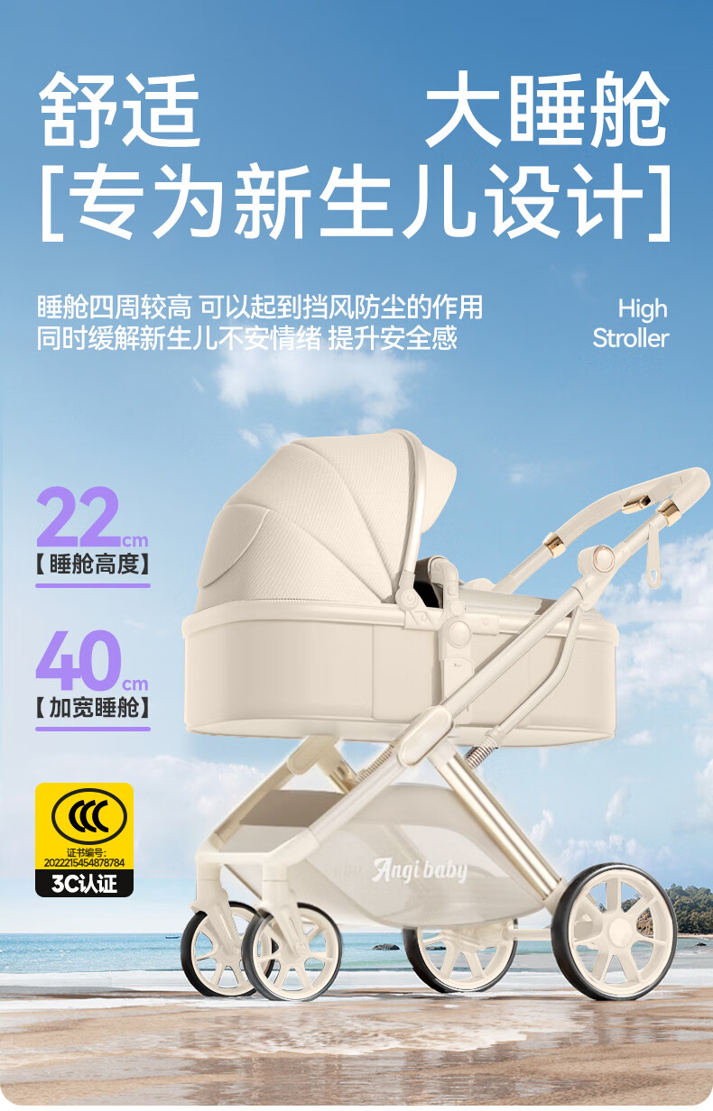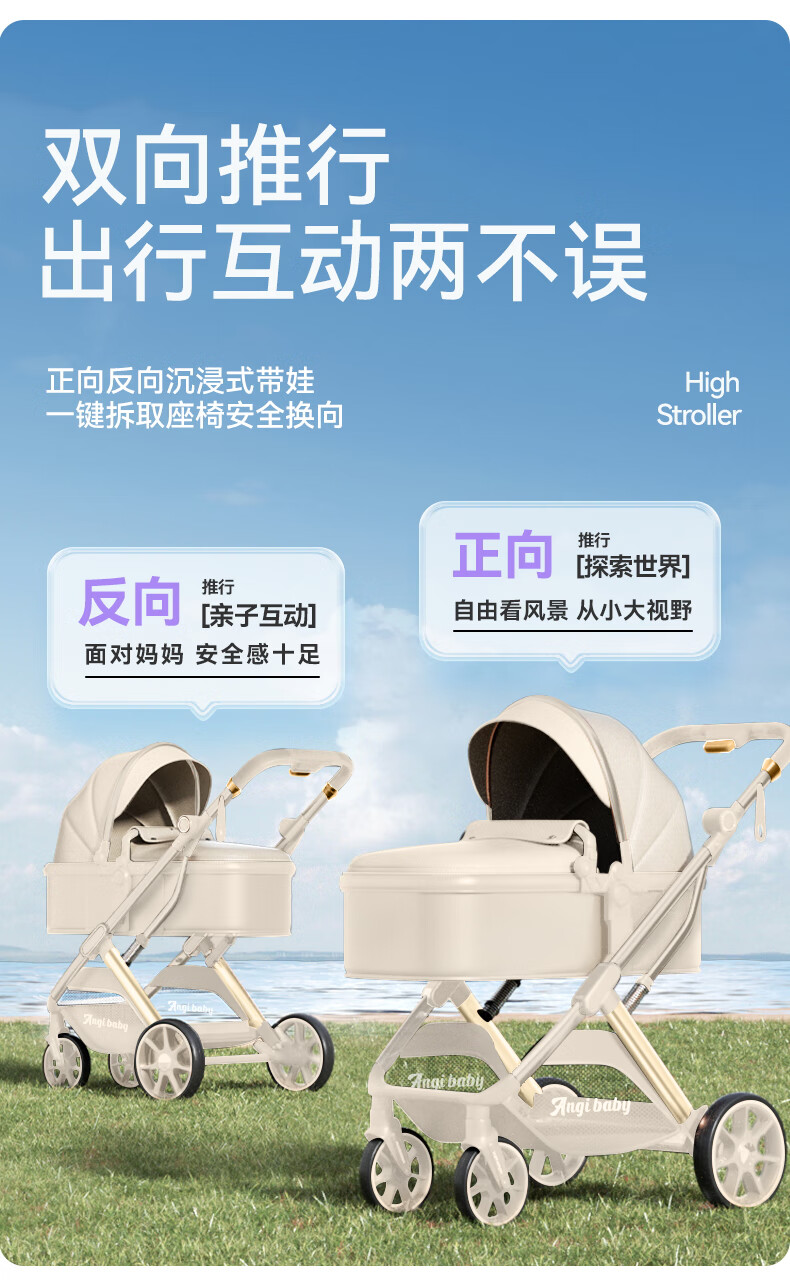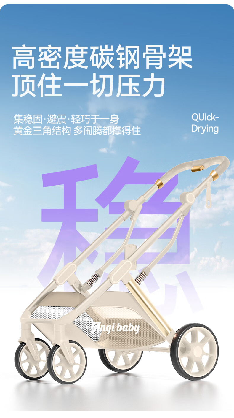ANGI BABY 婴儿推车可坐可躺婴儿车轻便折叠高景观遛娃神器双向避震手推车