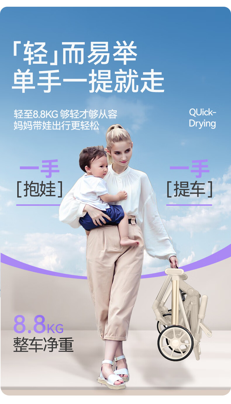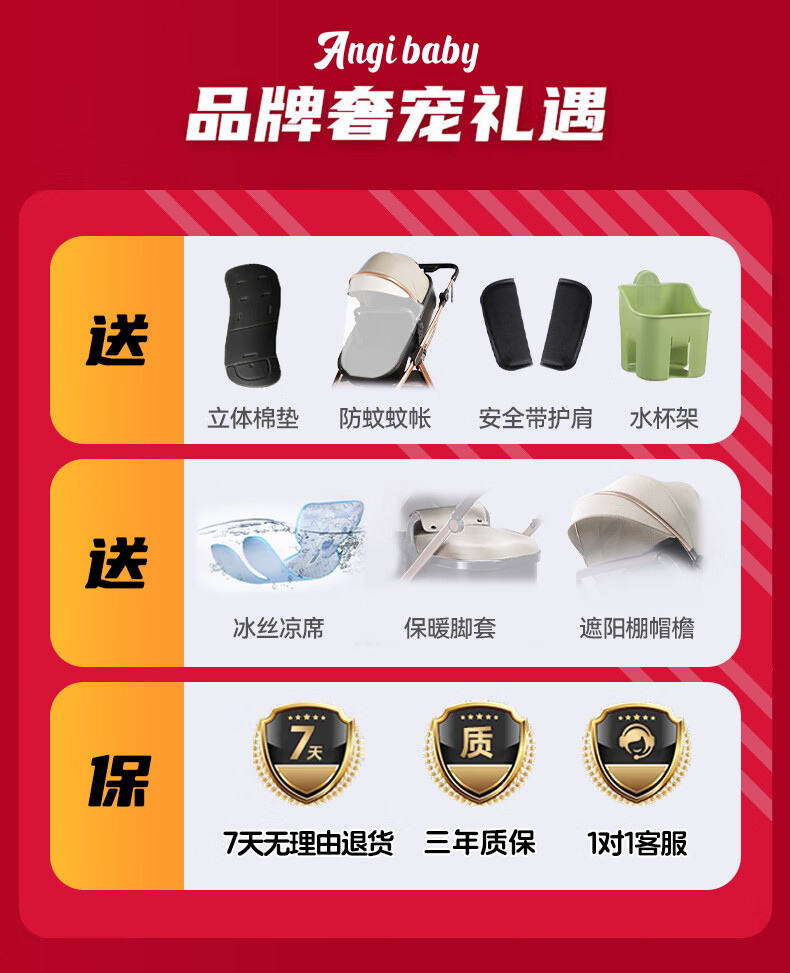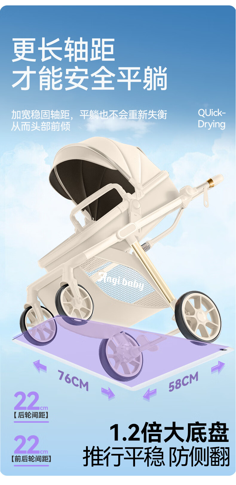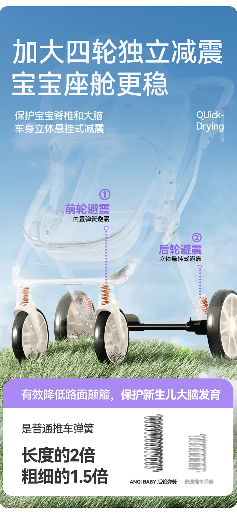 ANGI BABY 婴儿推车可坐可躺婴儿车轻便折叠高景观遛娃神器双向避震手推车
