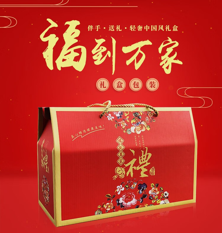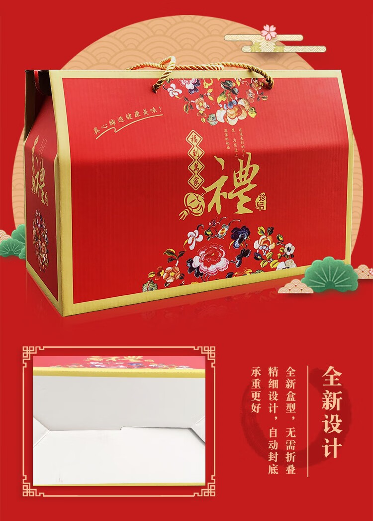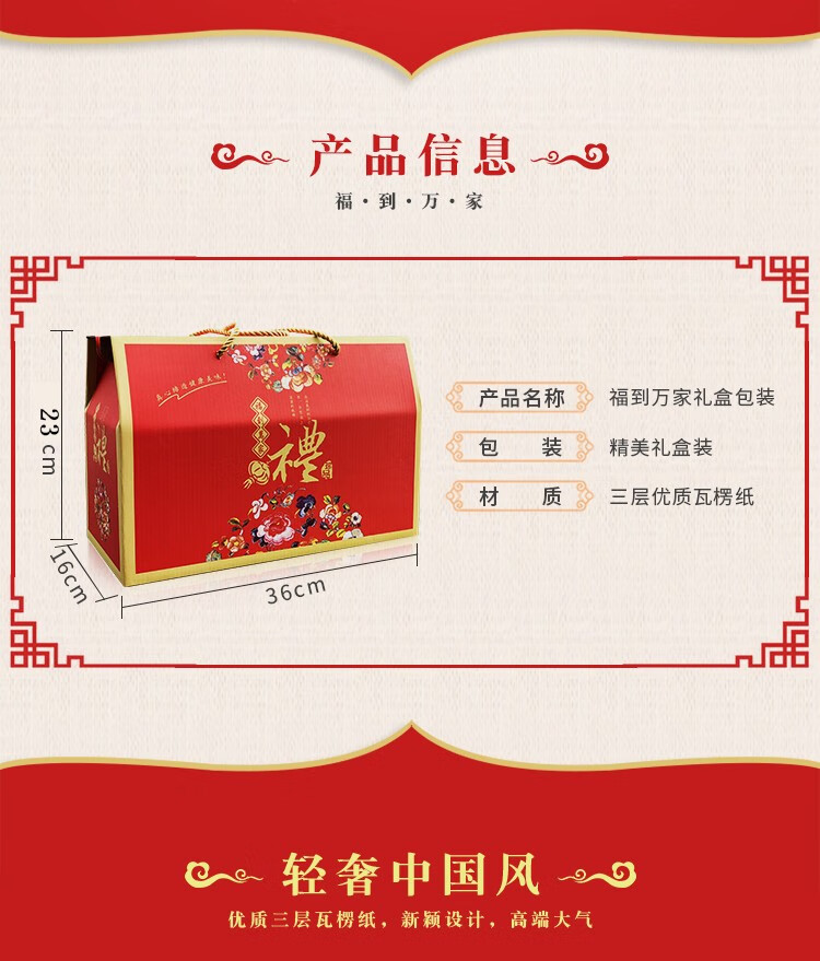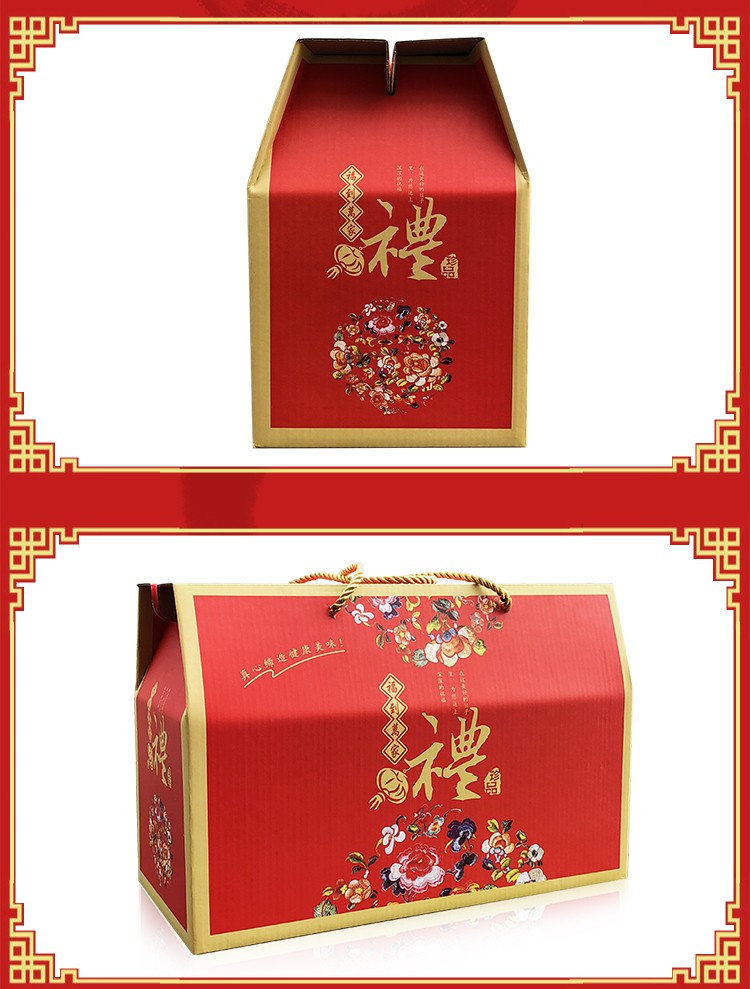 霏语春节年货包装盒子 通用空盒酒店熟食水果干果礼盒手提纸箱 悦享礼盒大号:40*21*25cm