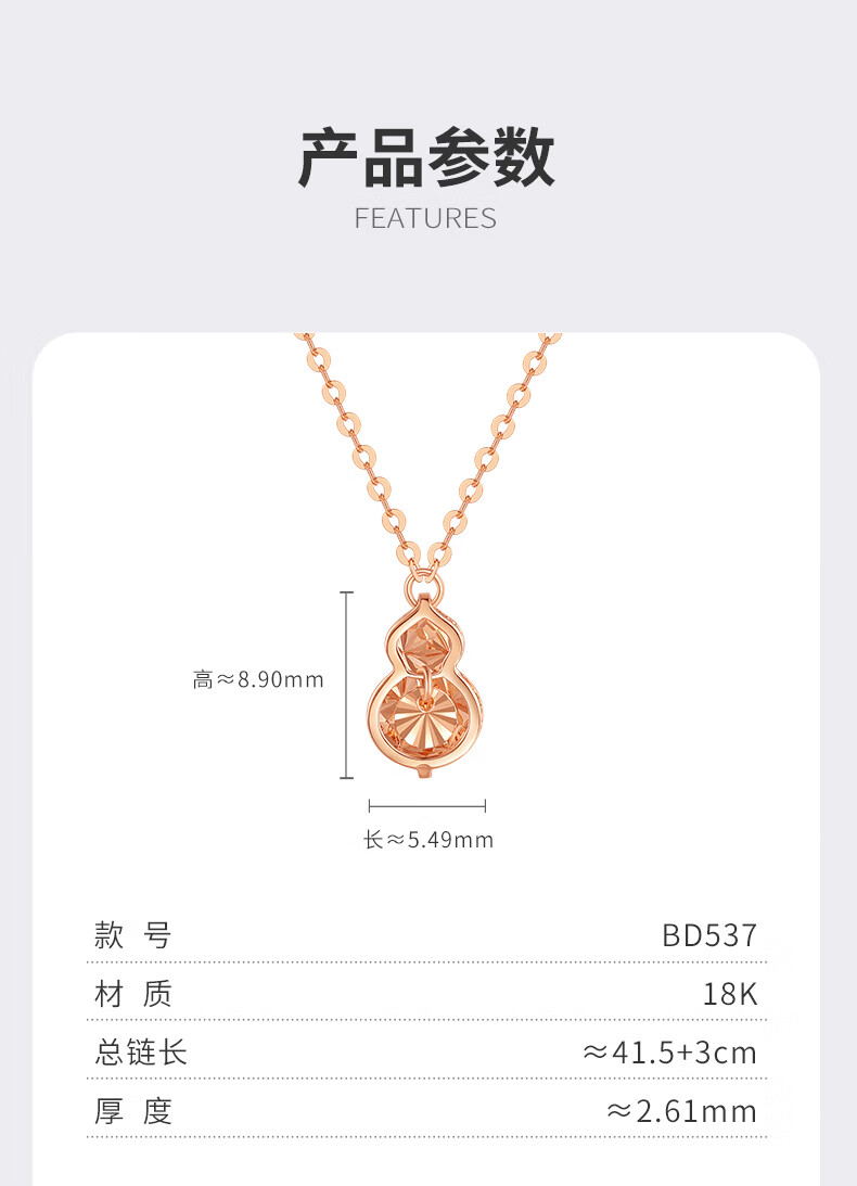 谢瑞麟(TSL)18K金项链幸运守护葫芦彩金锁骨链BD537-BD538 BD537-葫芦