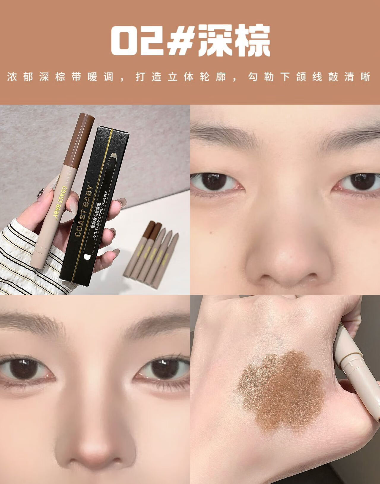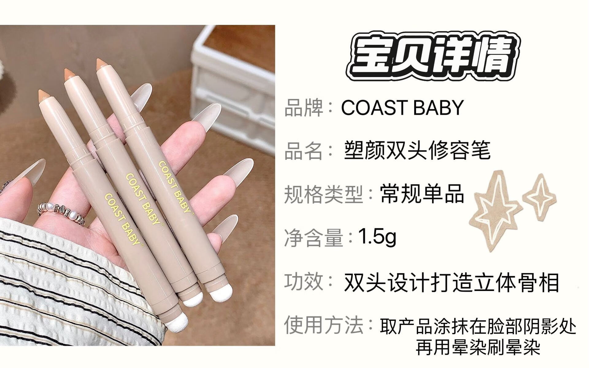 COAST塑颜双头修容笔奶油质地鼻侧影阴影自然立体提亮修容棒严选 01#自然棕【COAST双头修容笔】