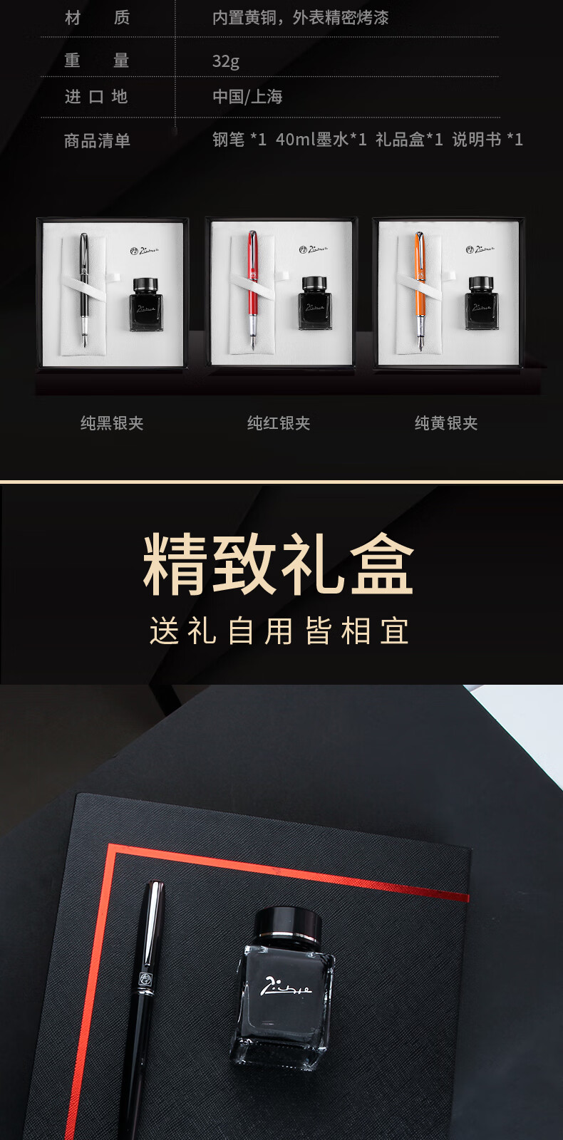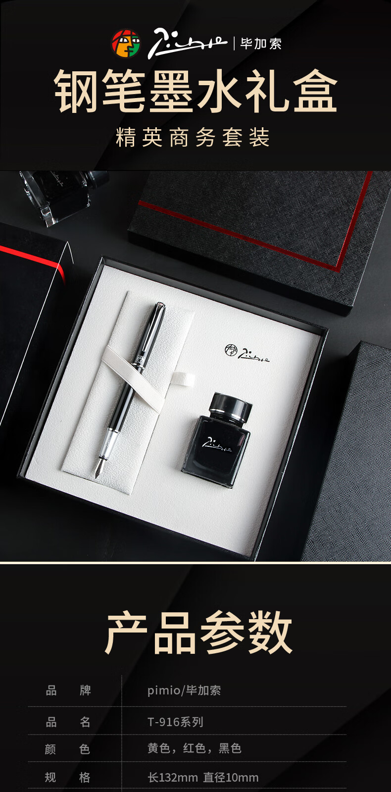 毕加索(pimio)钢笔礼盒 签字笔墨水套装 商务办公送礼 男女节日礼物 成人学生练字礼品笔 T916黑色