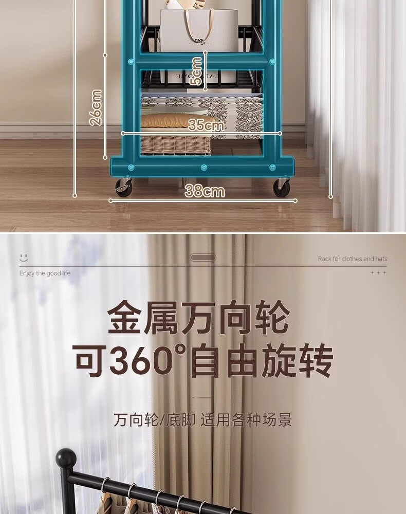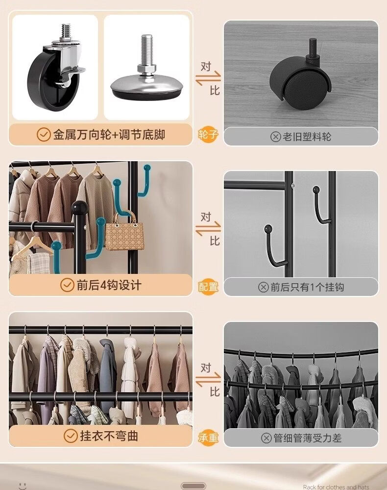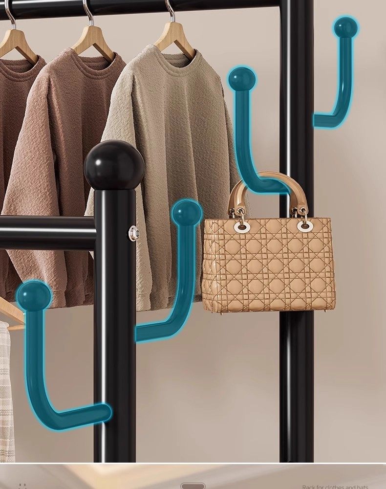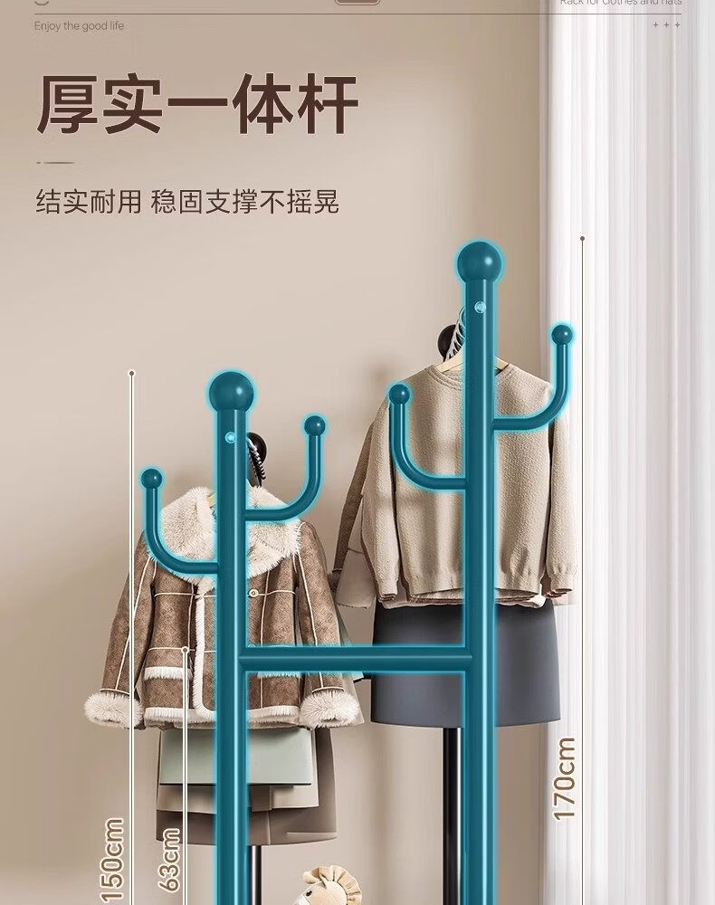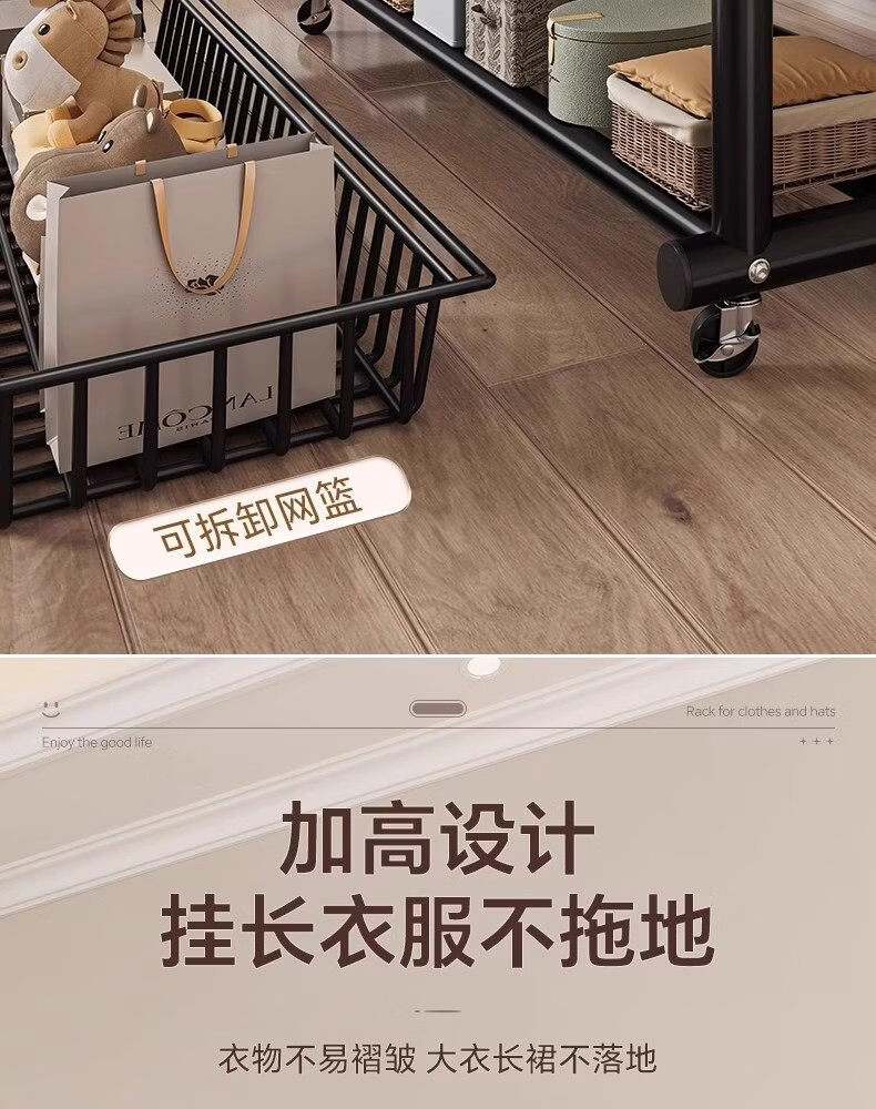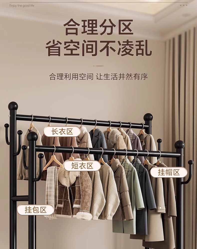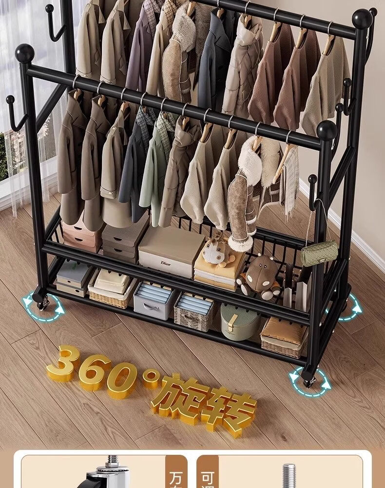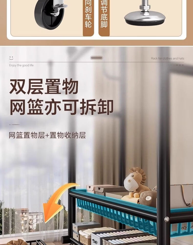 秋冬季特厚晾衣架巨粗32管落地立式衣帽架阳台晒衣架卧室挂衣架 【特粗22管】150cm珠玉白-双杆8钩网篮+鞋架*赠万向轮