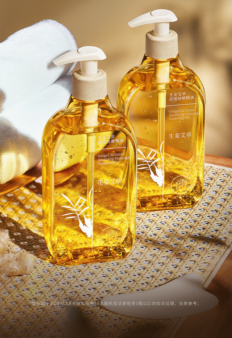 儒意艾草生姜按摩精油通经络刮痧发热开背推背全身体spa专用推拿免洗 生姜艾草按摩精油500ml