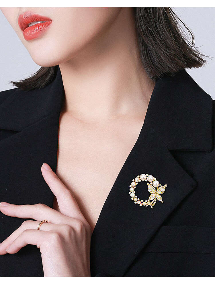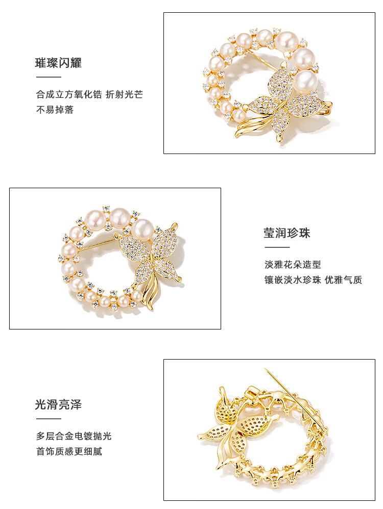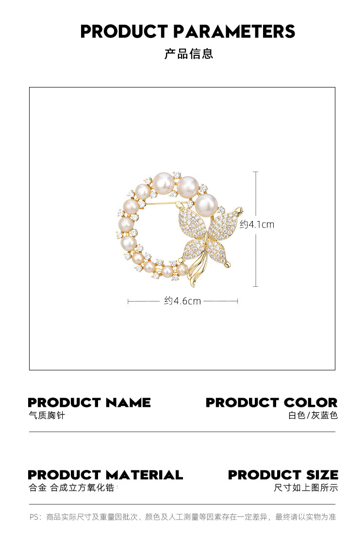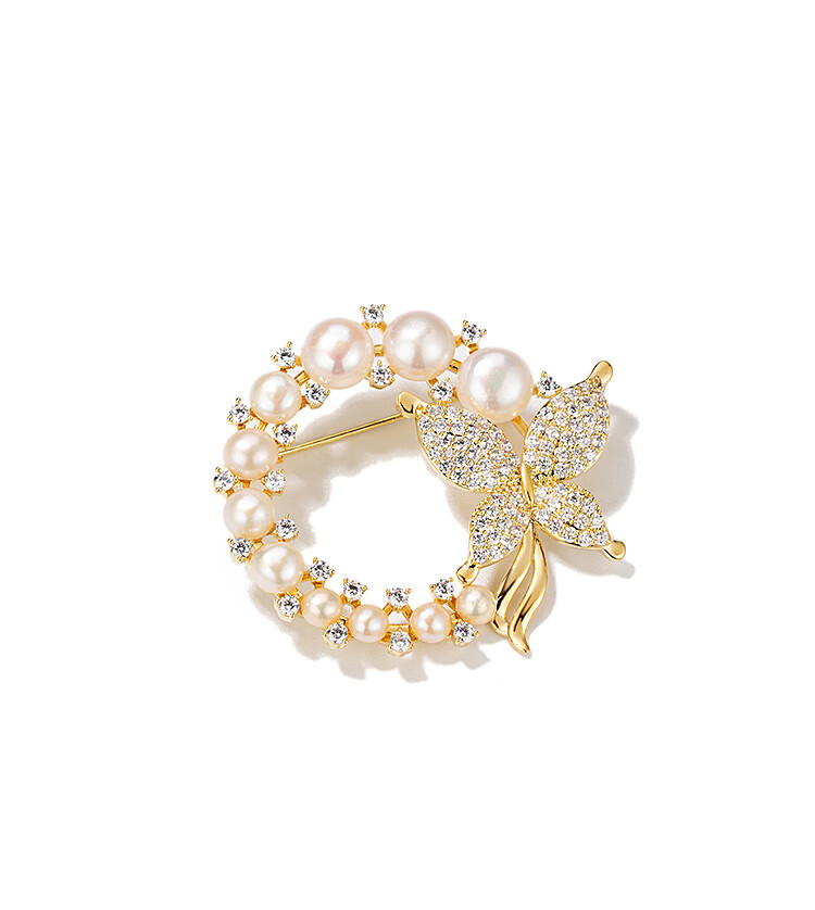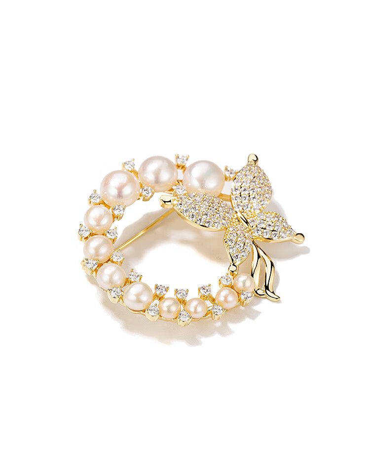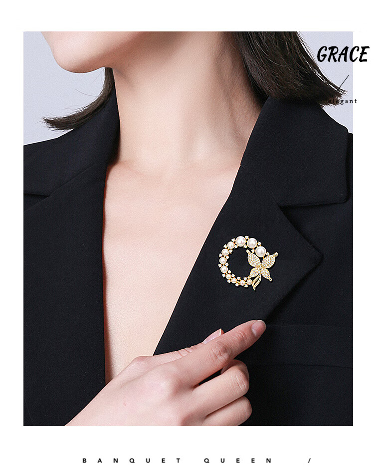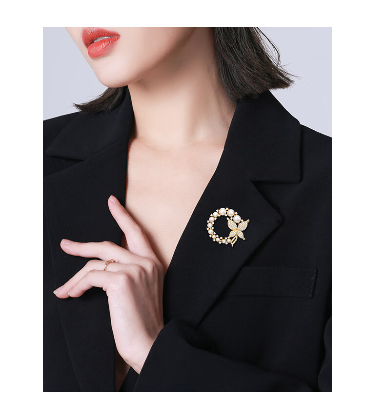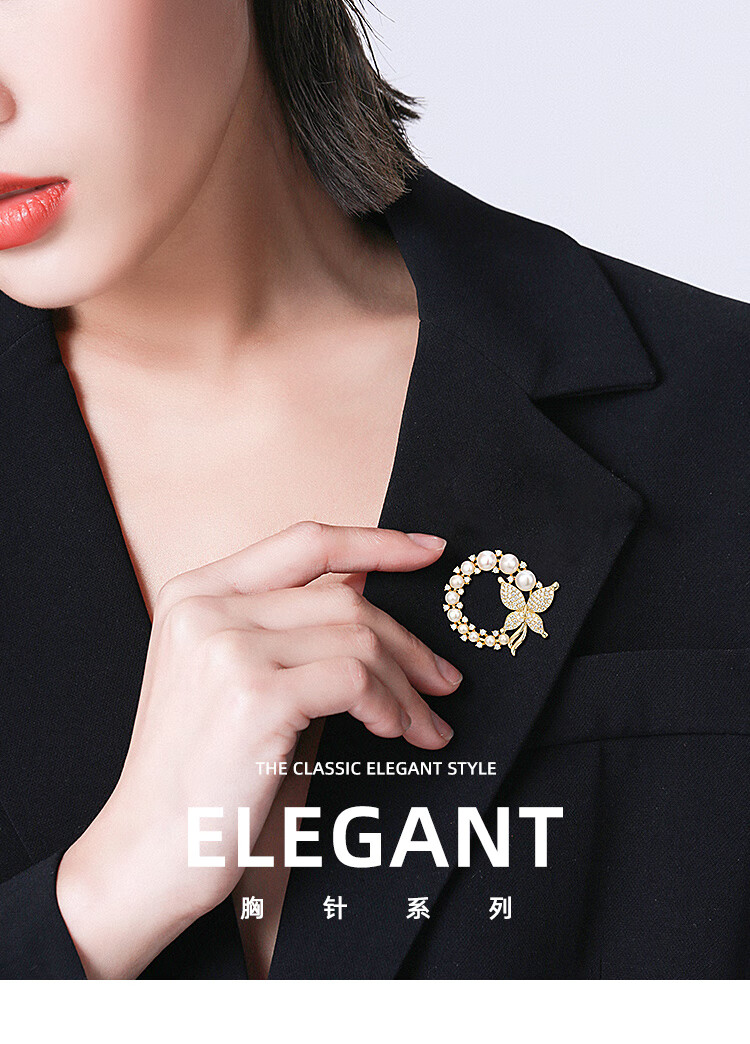 Qlady蝴蝶珍珠胸针高档女轻奢大气胸花别针轻奢丝巾扣配饰生日新年礼物