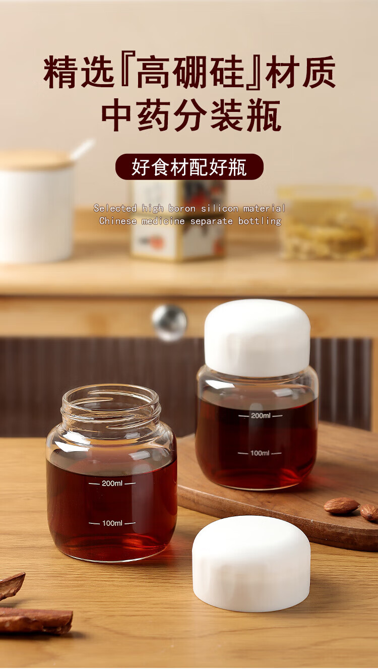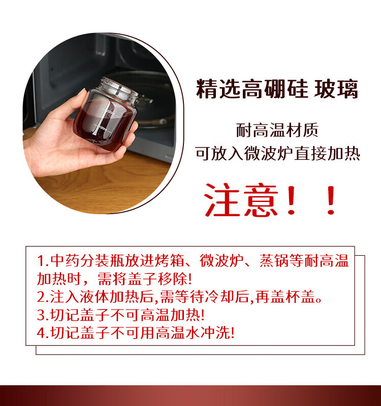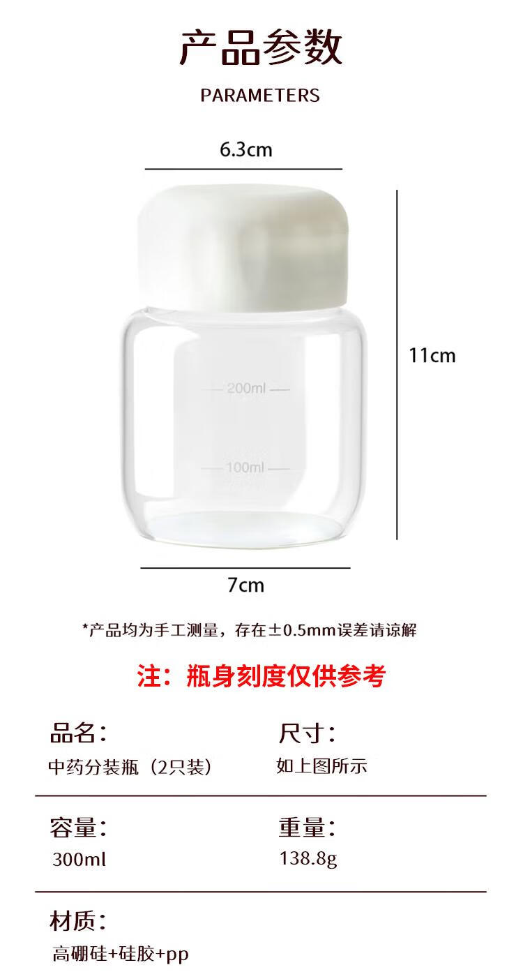 拜杰中药分装瓶可加热装中药杯中药瓶牛奶燕窝分装瓶密封罐300ml*2