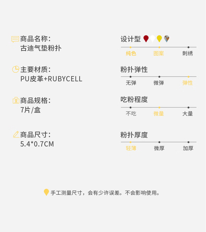 古迪气垫粉扑散粉海绵不吃粉盒子BB霜(7片混色装)干湿两用化妆工具