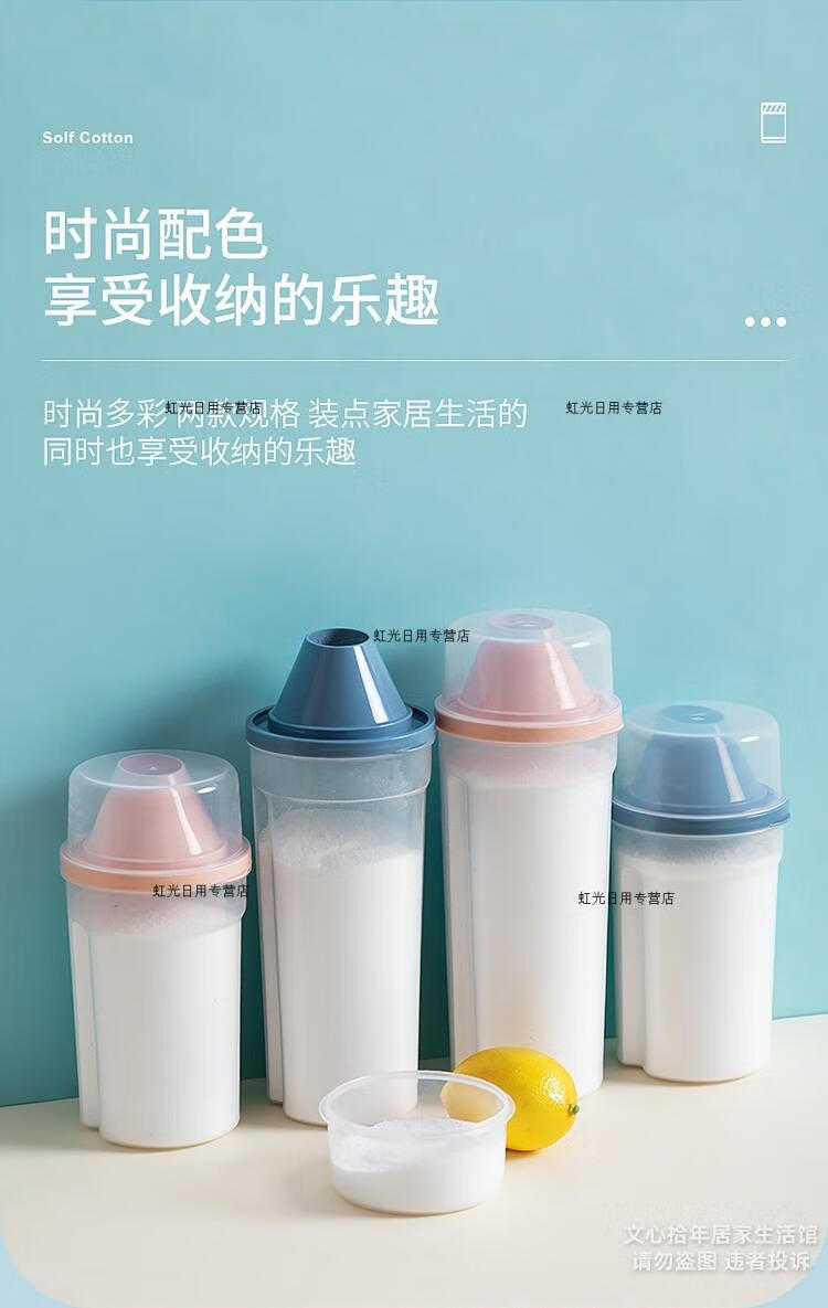 洗衣粉收纳盒 洗衣粉收纳盒专用储存盒小号装洗衣粉的容器瓶子放 粉橙小号1个