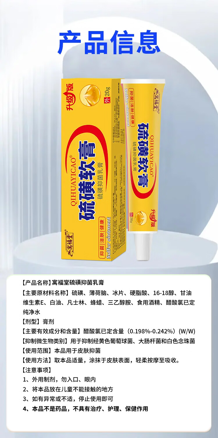 寓福堂硫磺软膏20g*1阴虱男女私处阴囊瘙痒潮湿外阴肛门疥虫螨