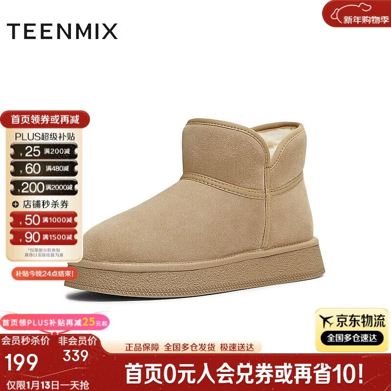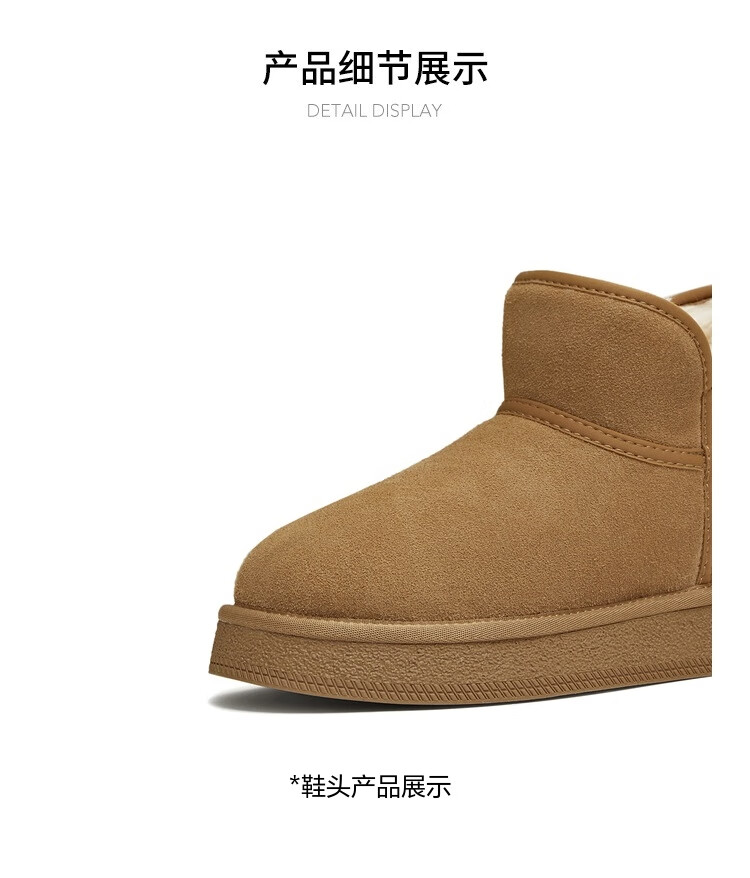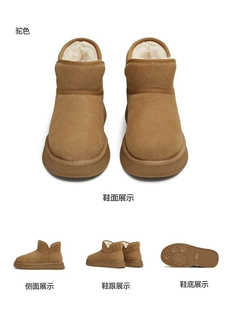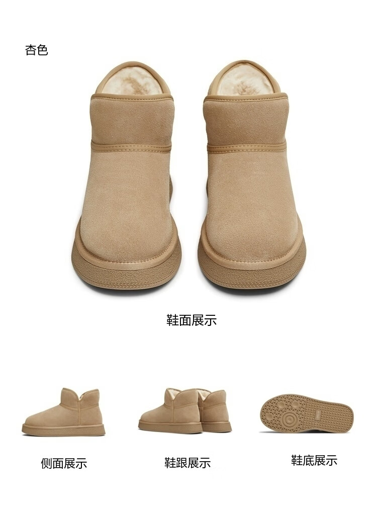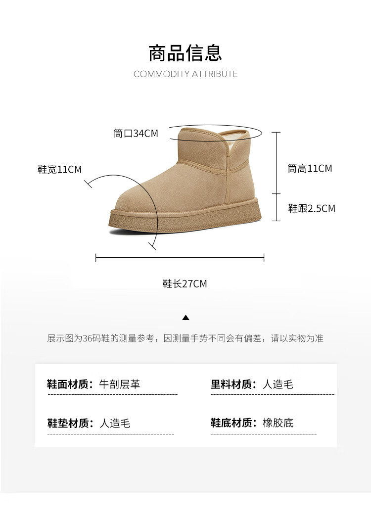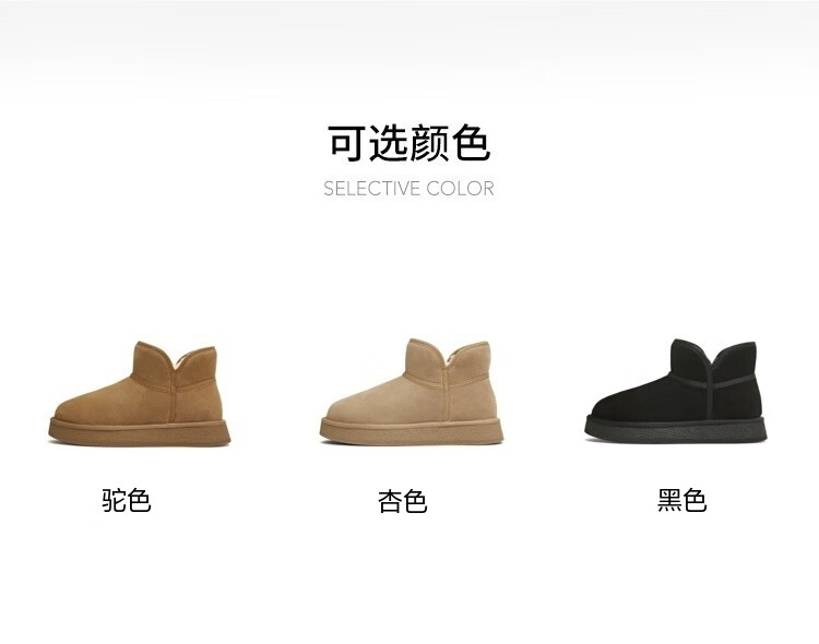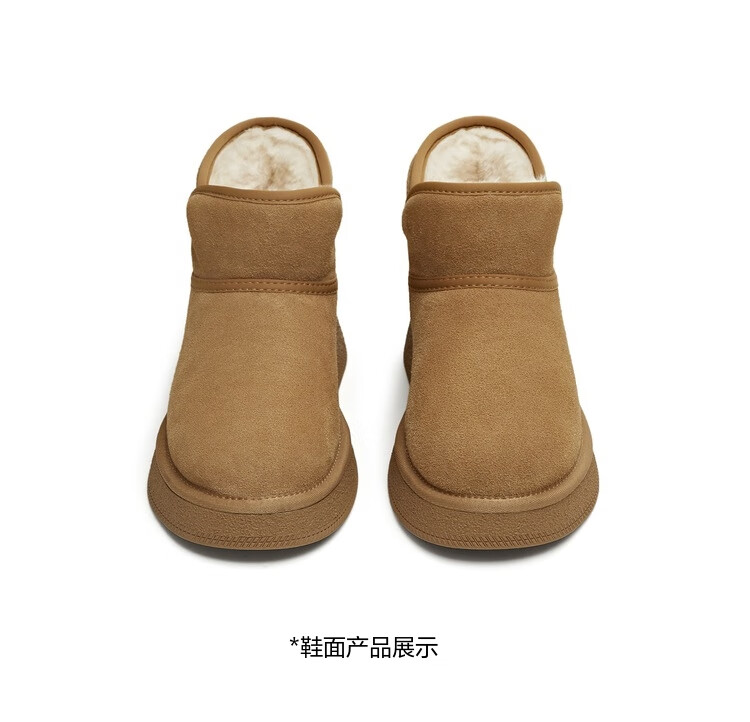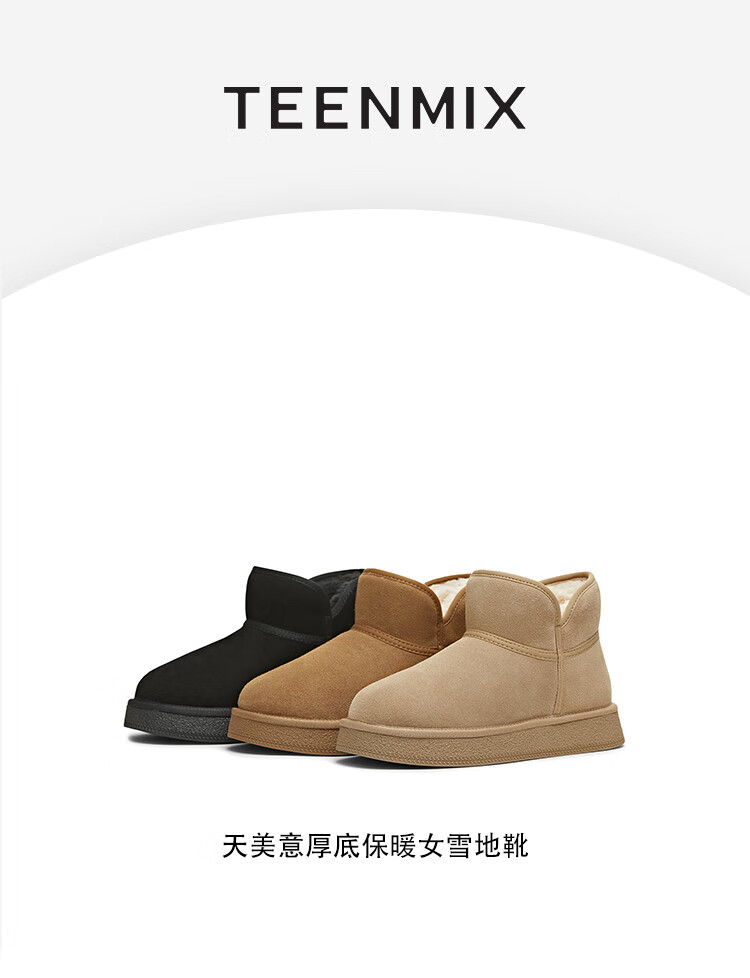 天美意女靴休闲保暖短靴女雪地靴新款 杏色 37