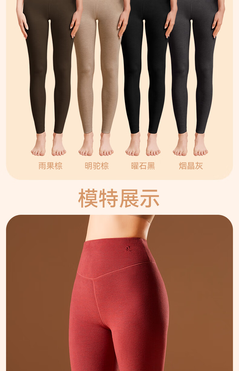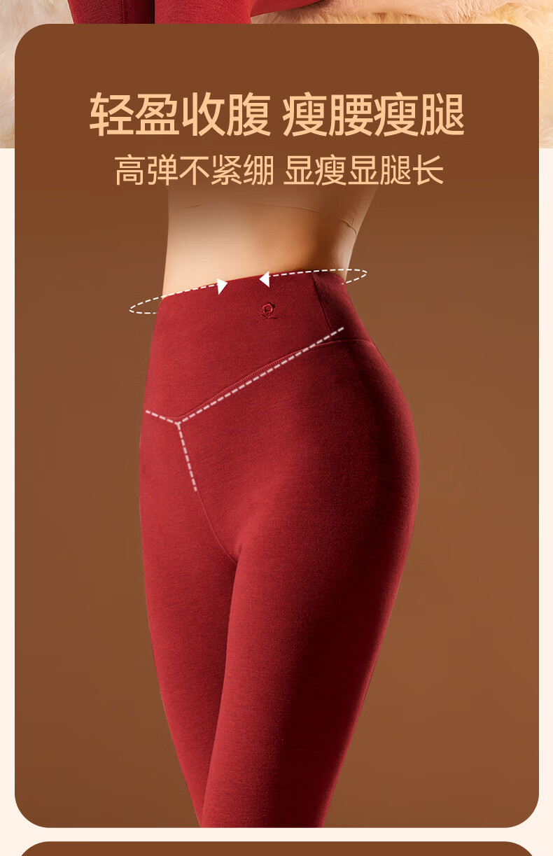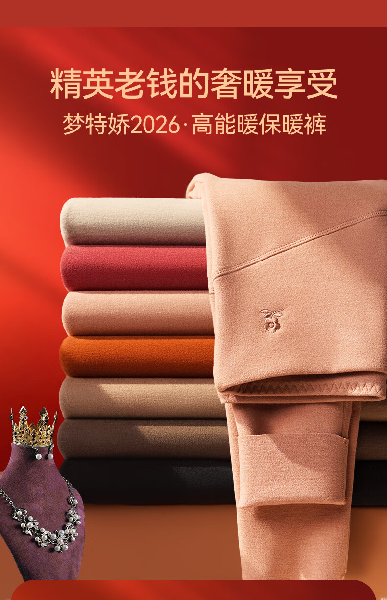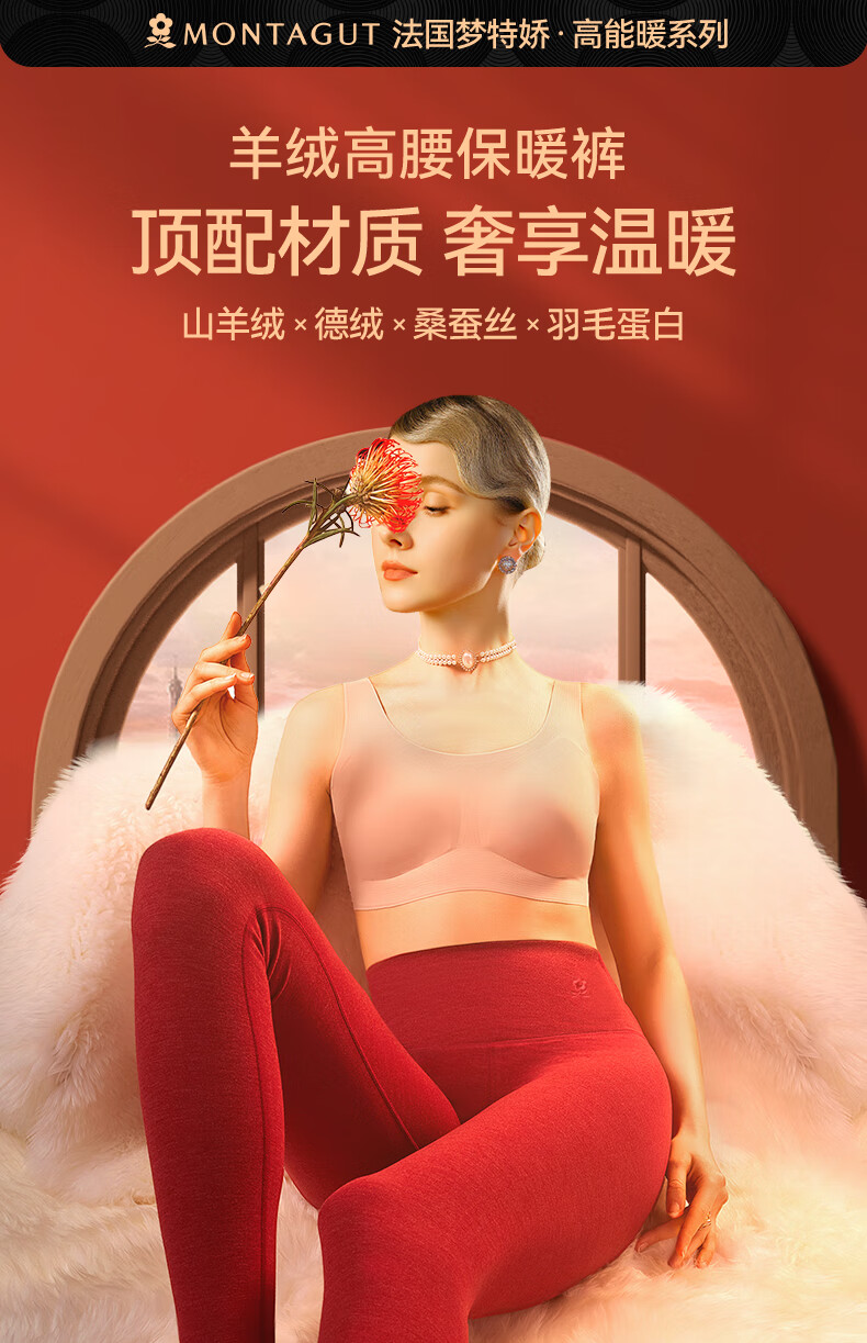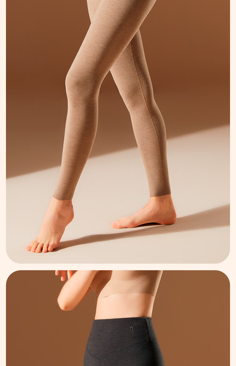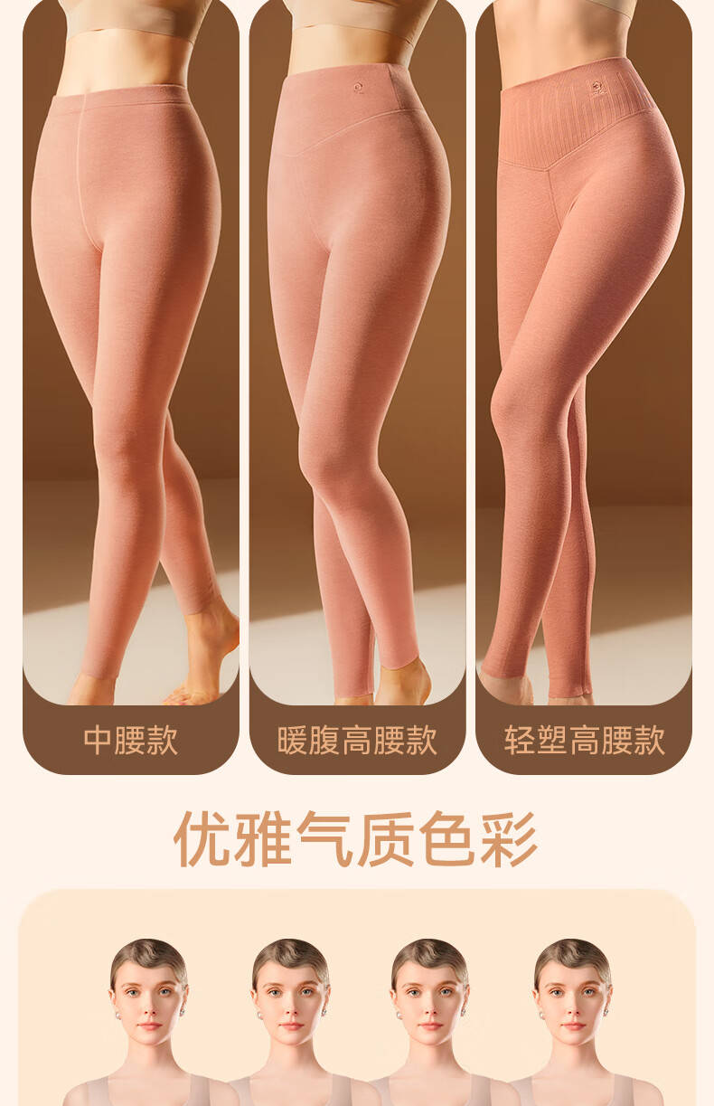 梦特娇【羊绒蚕丝】高腰保暖裤女加绒秋裤衬裤德绒发热打底裤毛线裤冬季