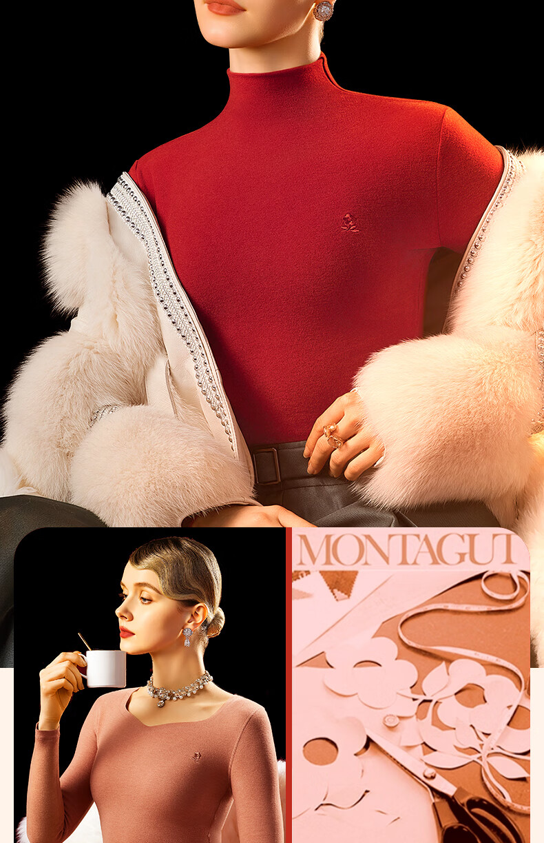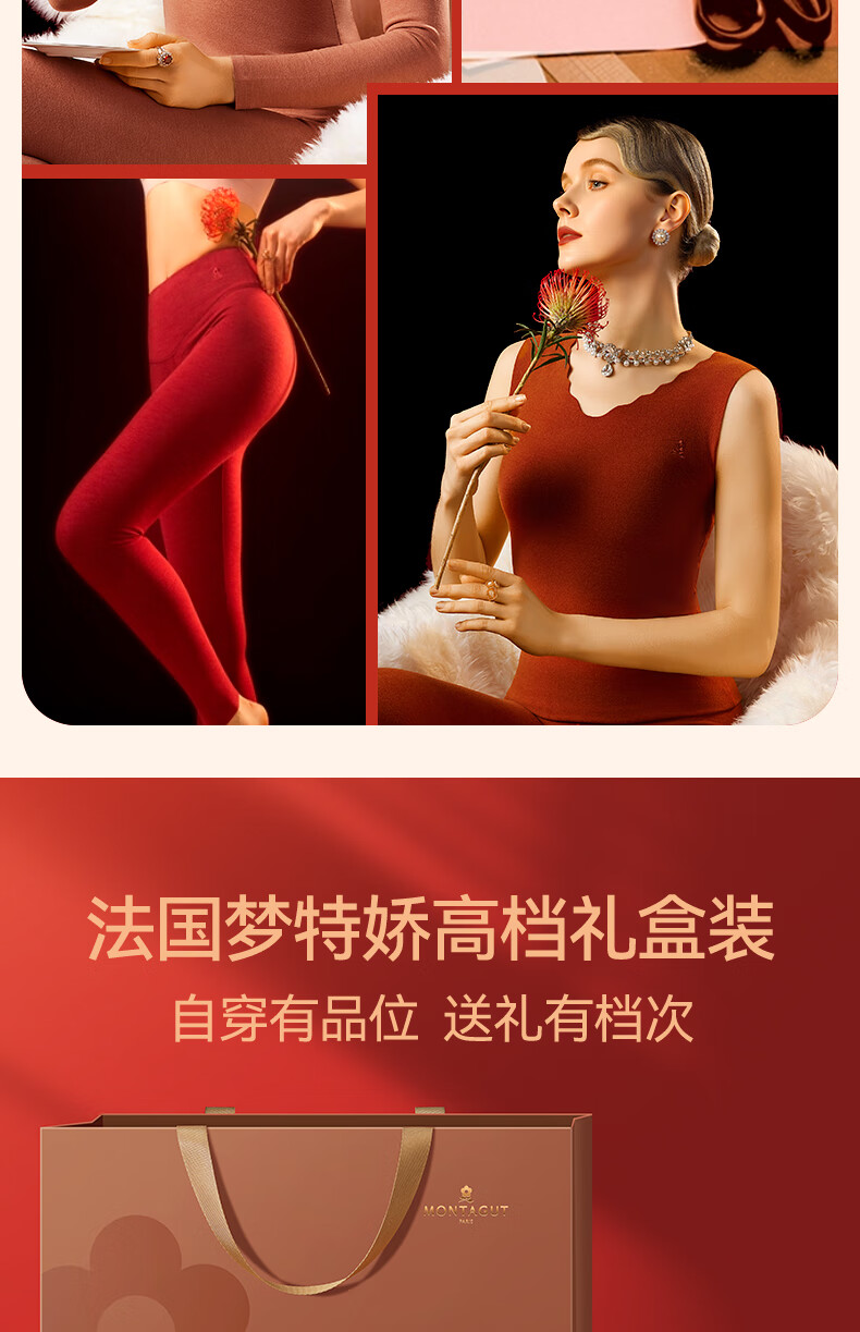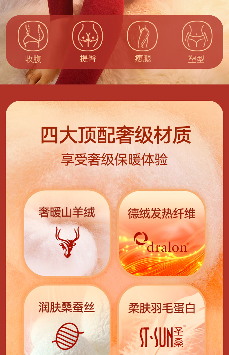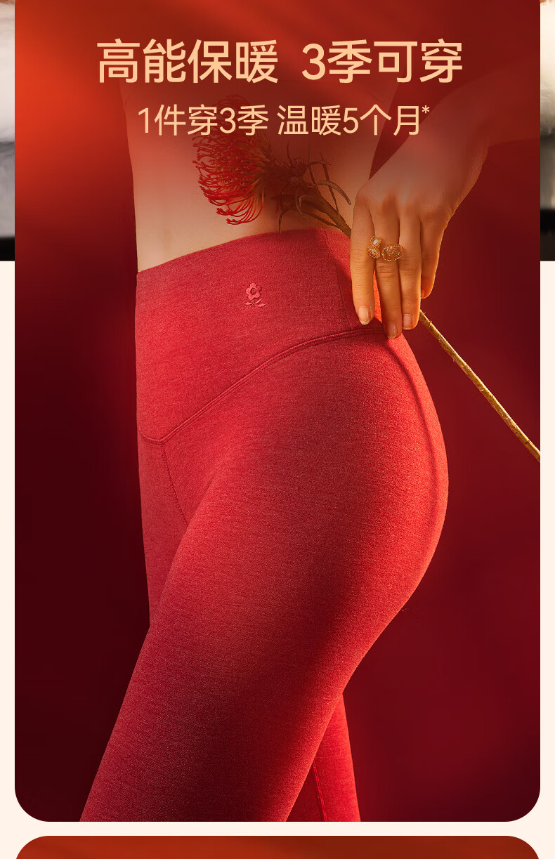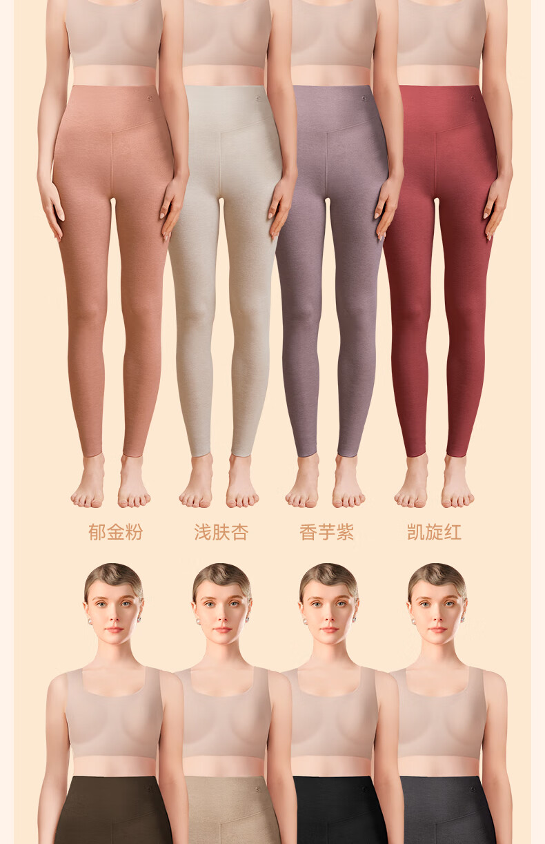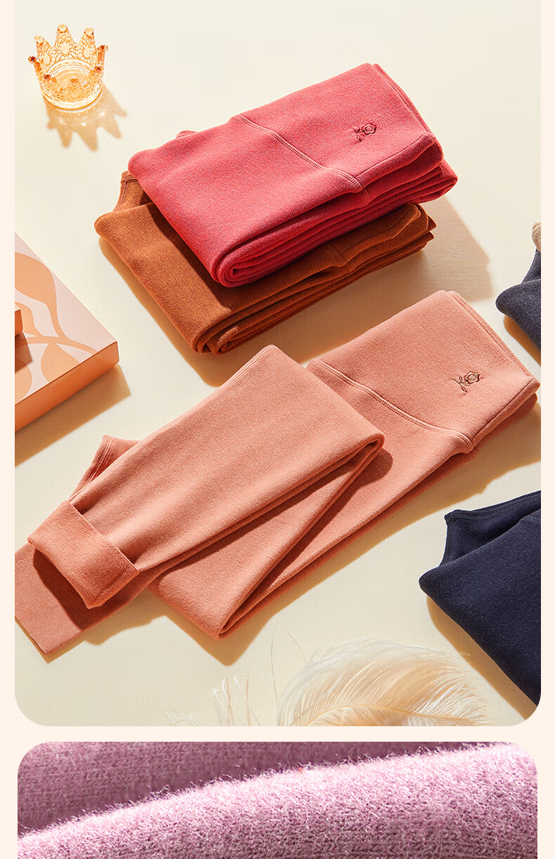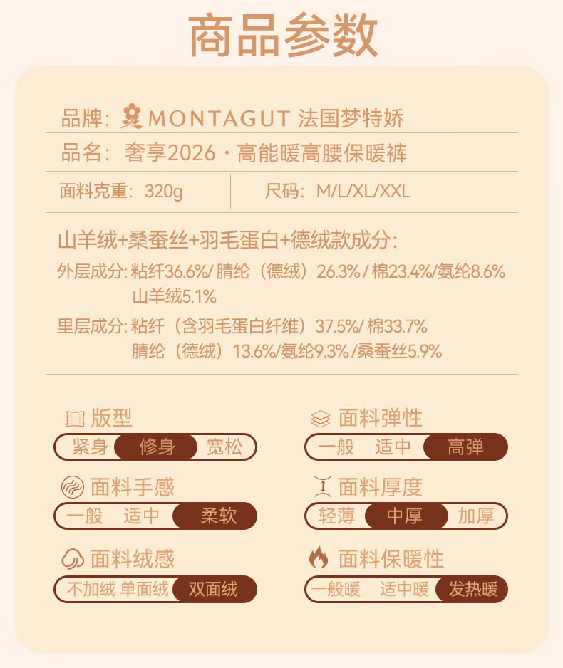 梦特娇【羊绒蚕丝】高腰保暖裤女加绒秋裤衬裤德绒发热打底裤毛线裤冬季