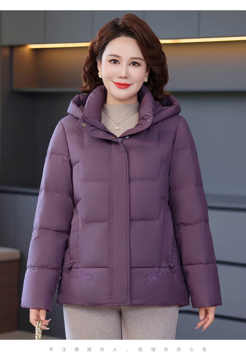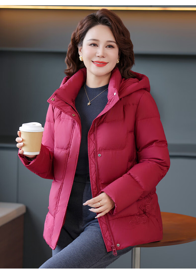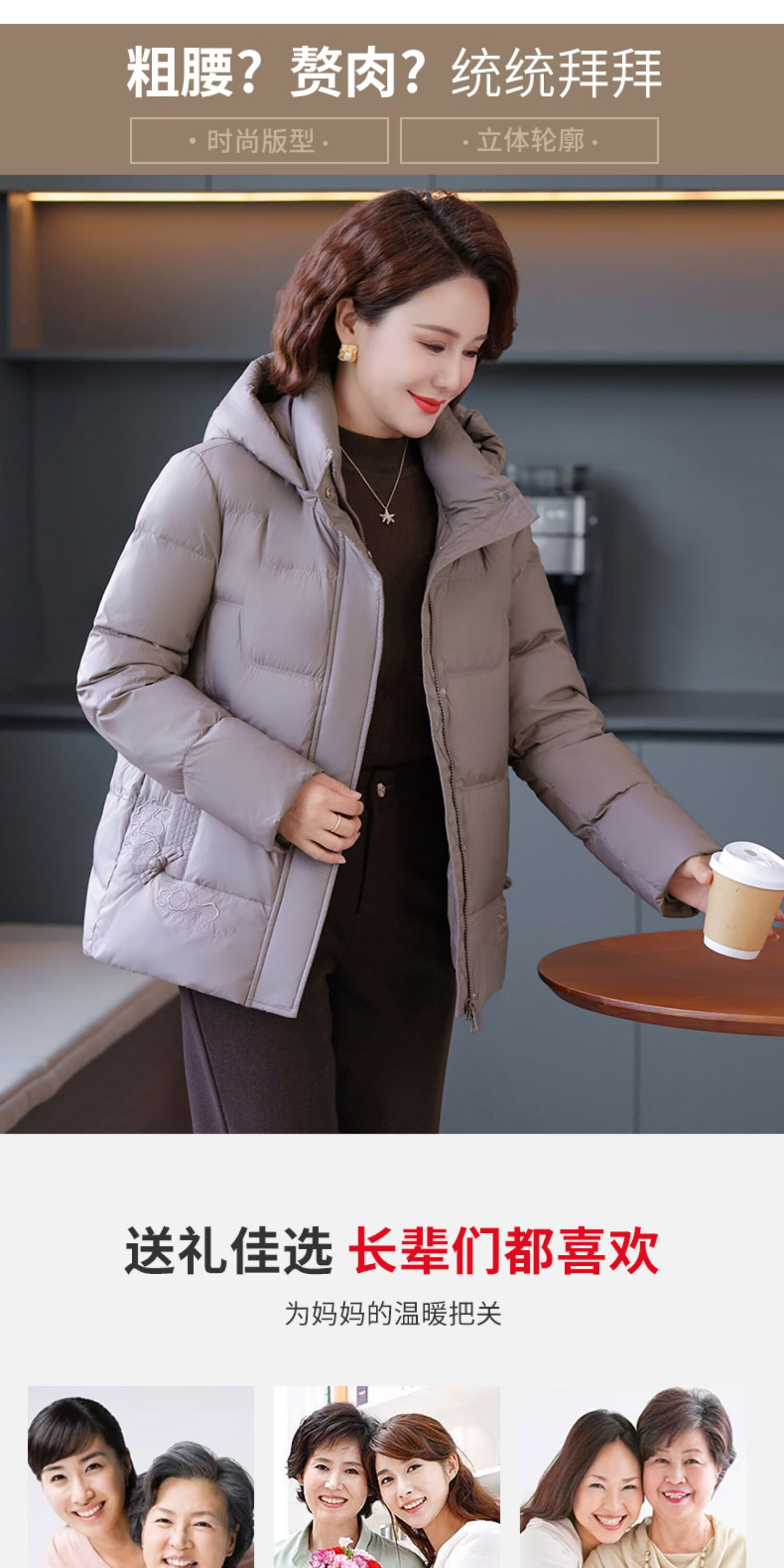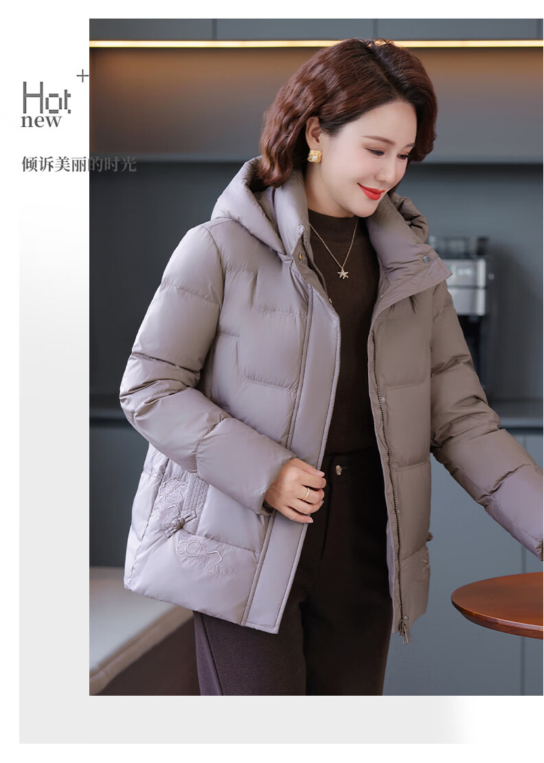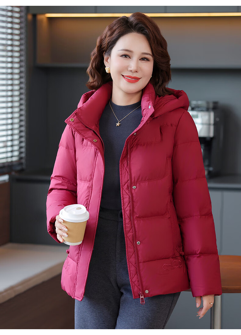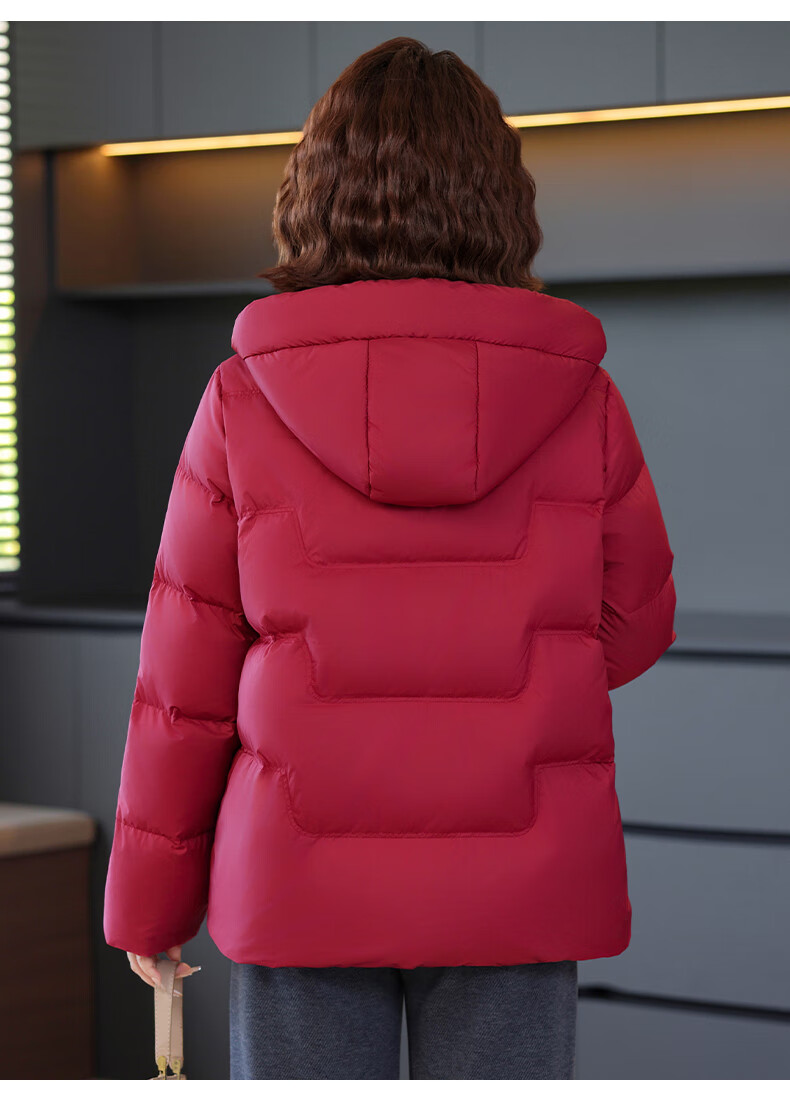 雪中飞羽绒服女2025冬季短款款翻领宽松连帽保暖外套妈妈装豆沙色2XL