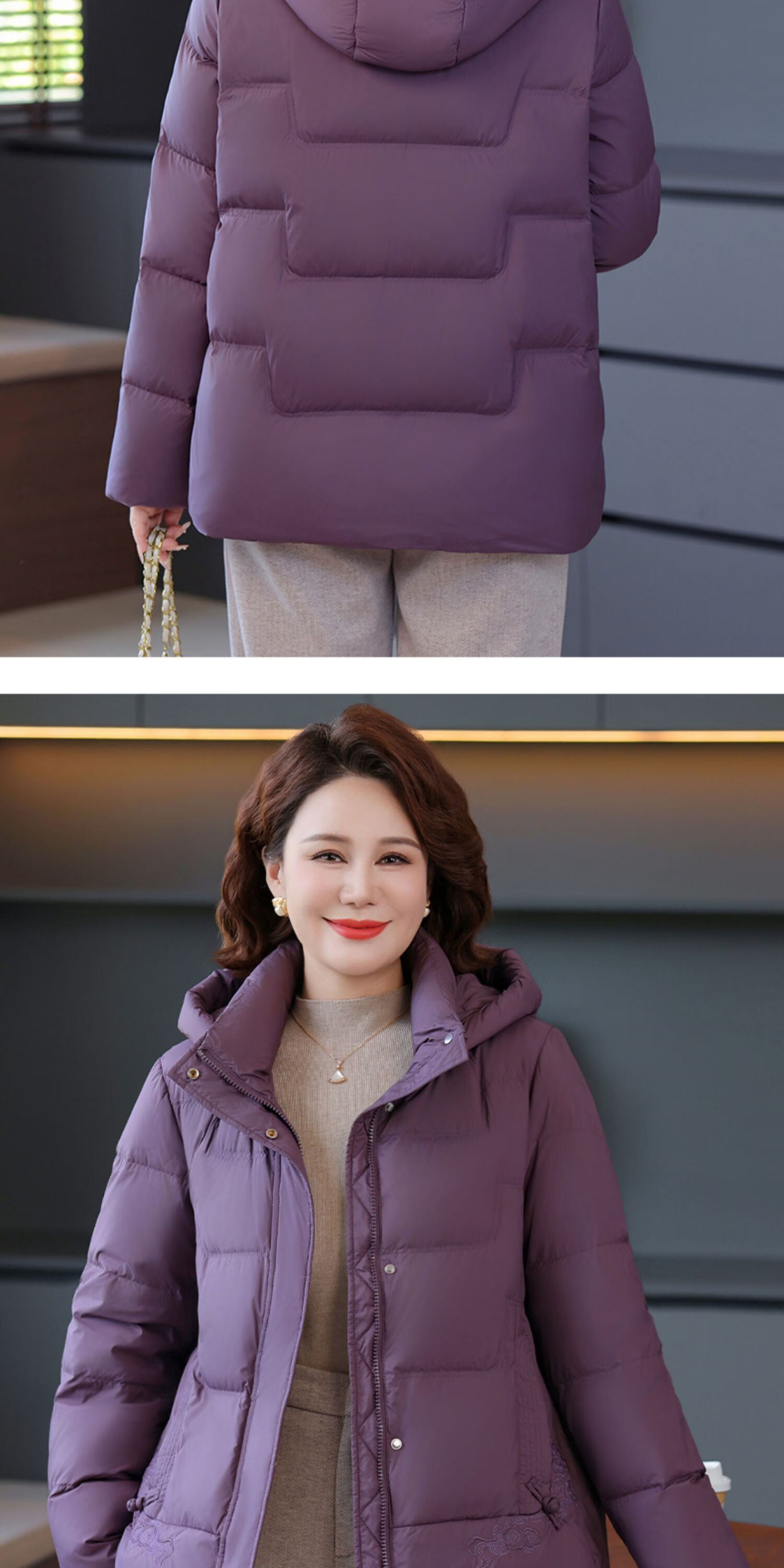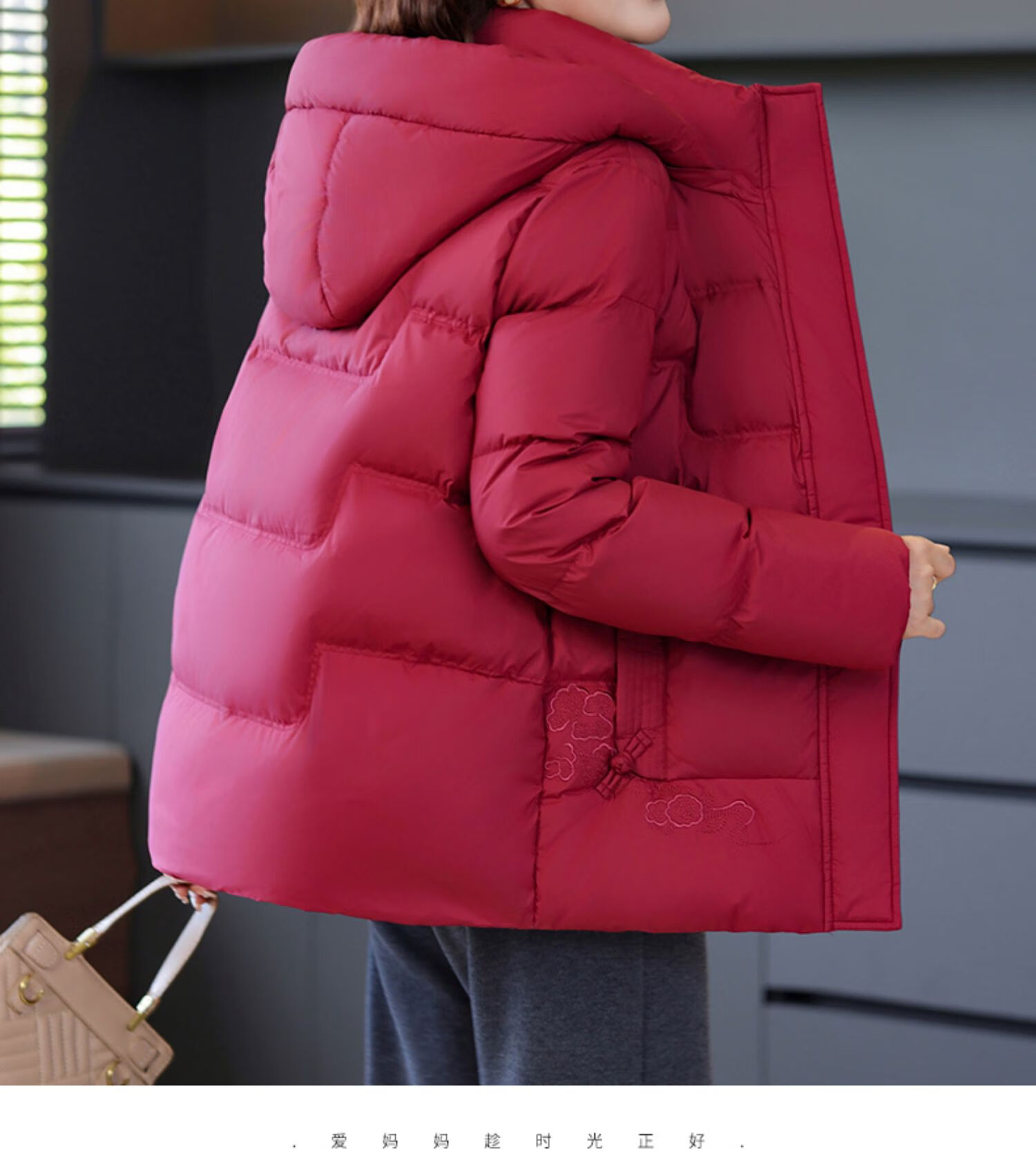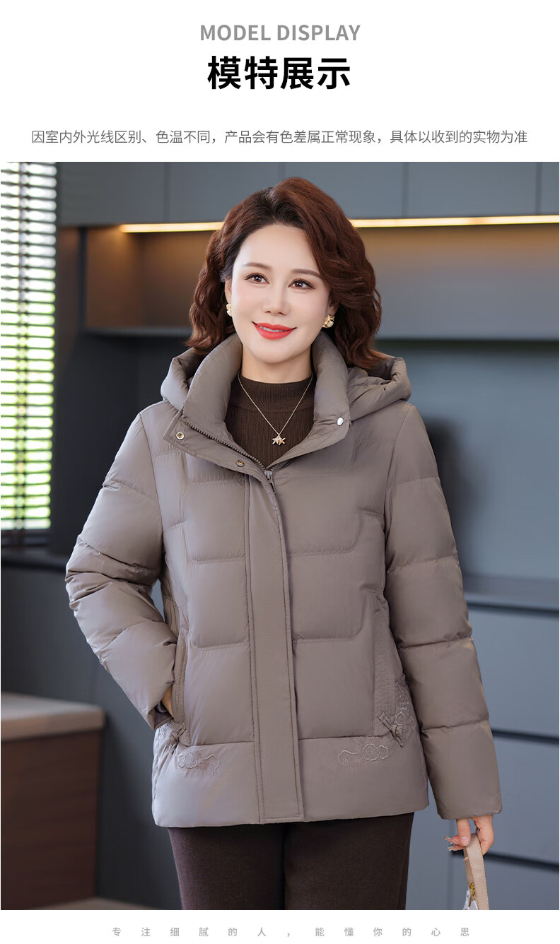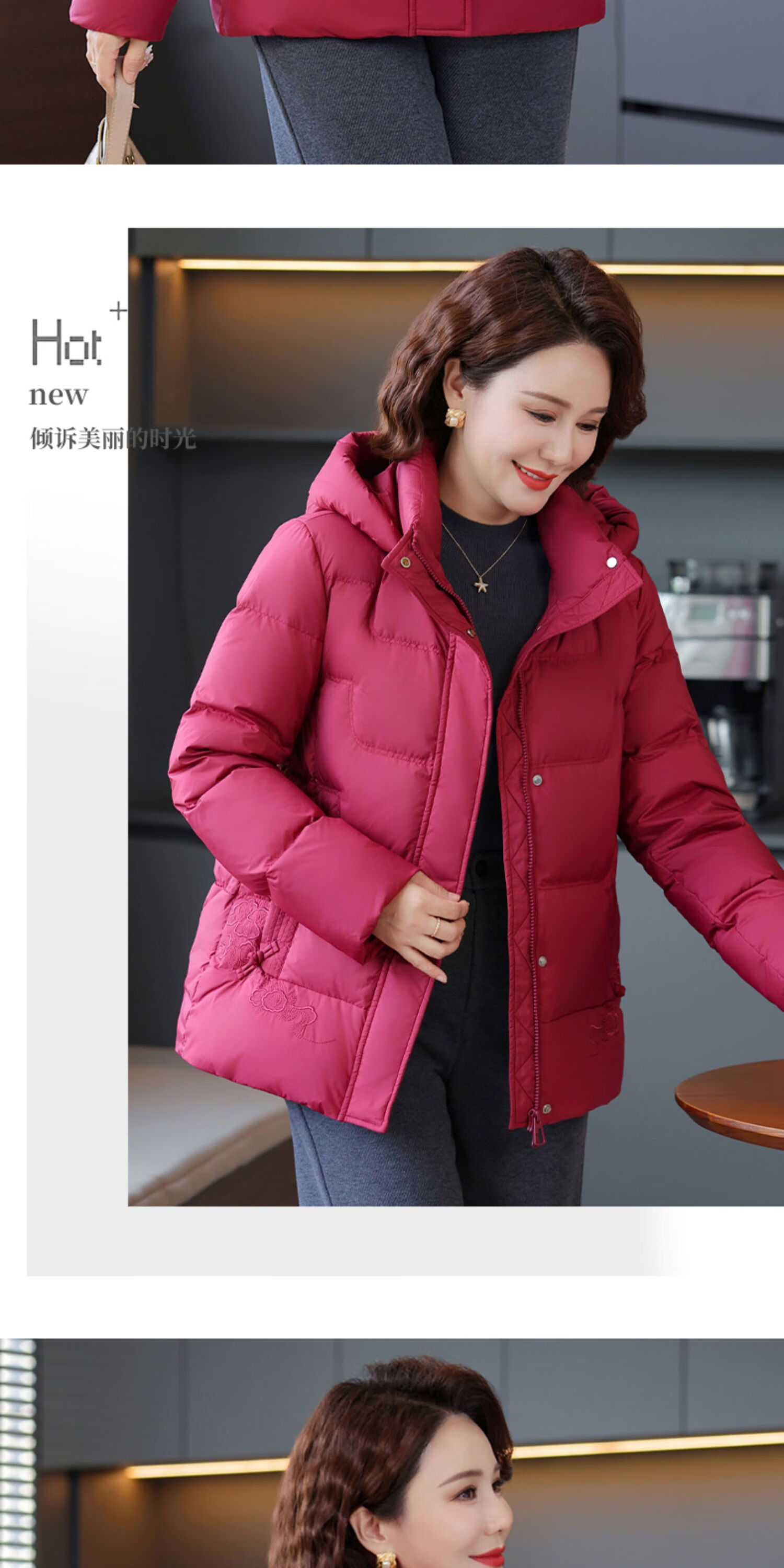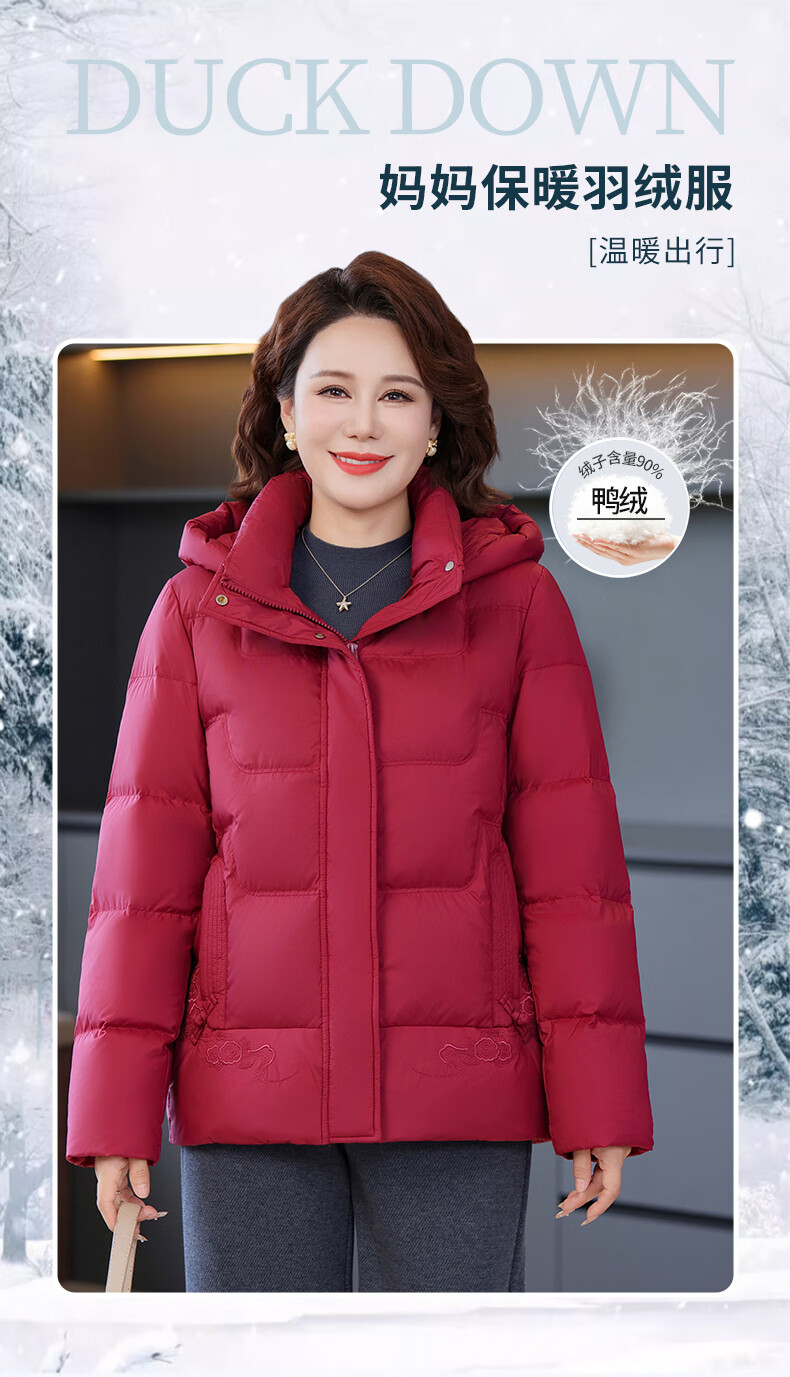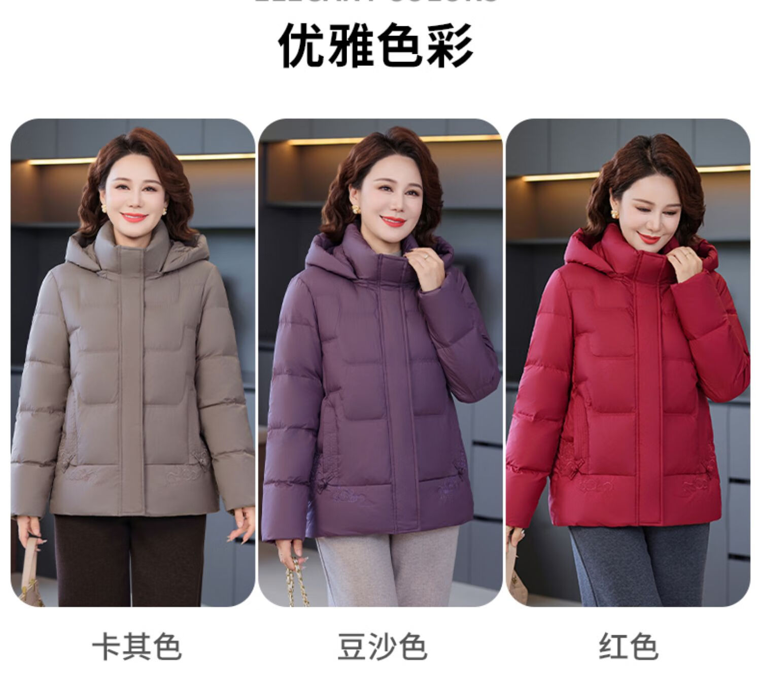 雪中飞羽绒服女2025冬季短款款翻领宽松连帽保暖外套妈妈装豆沙色2XL