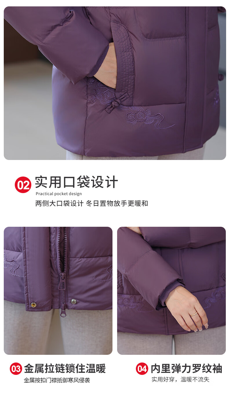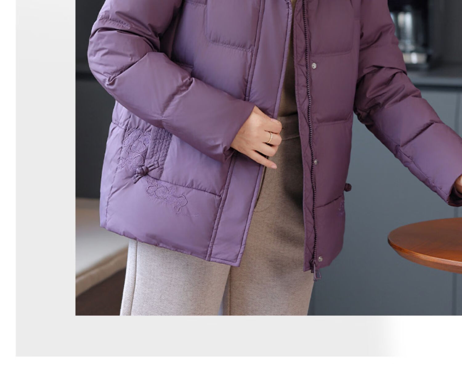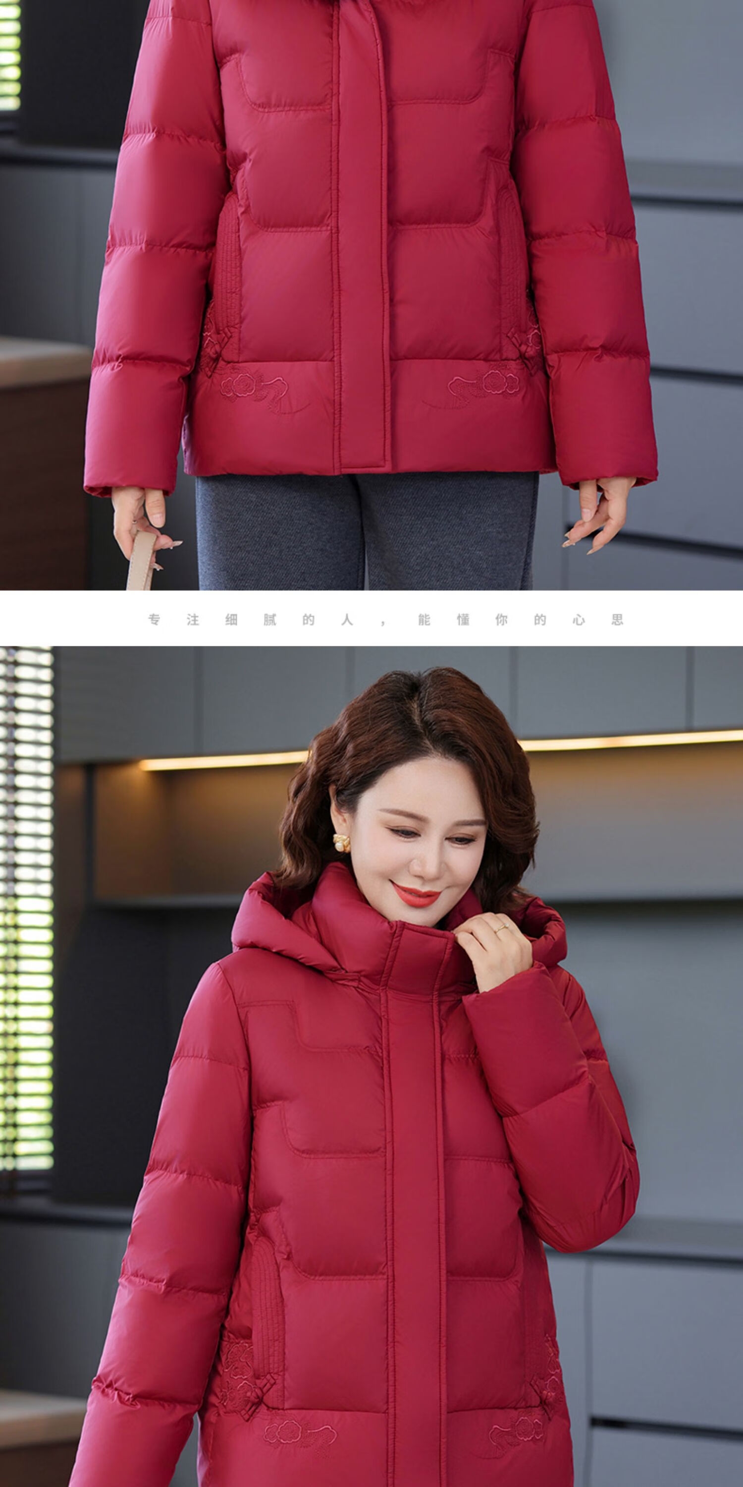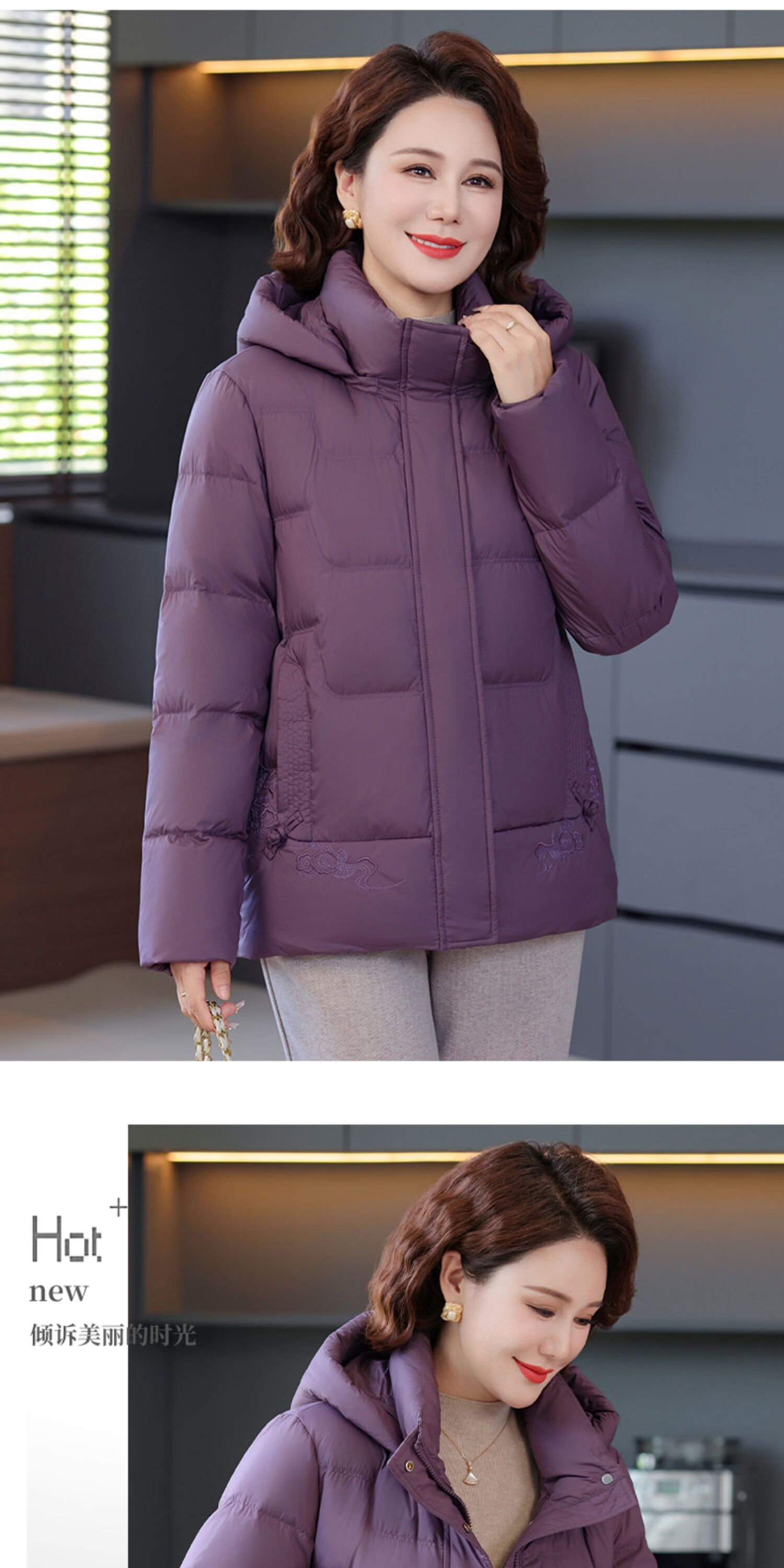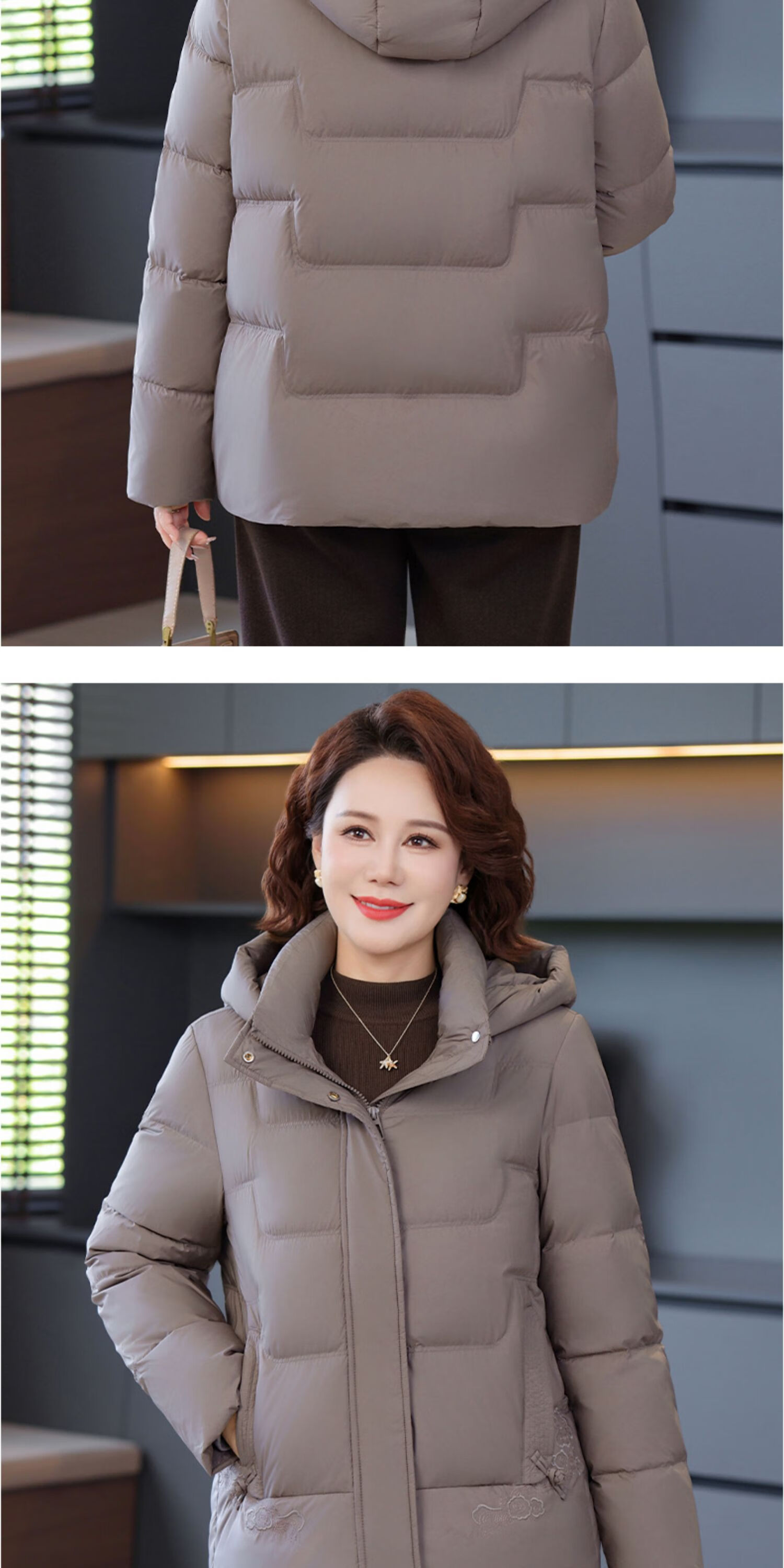 雪中飞羽绒服女2025冬季短款款翻领宽松连帽保暖外套妈妈装豆沙色2XL